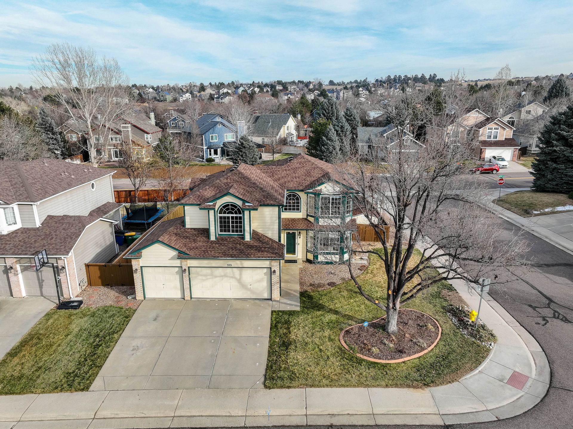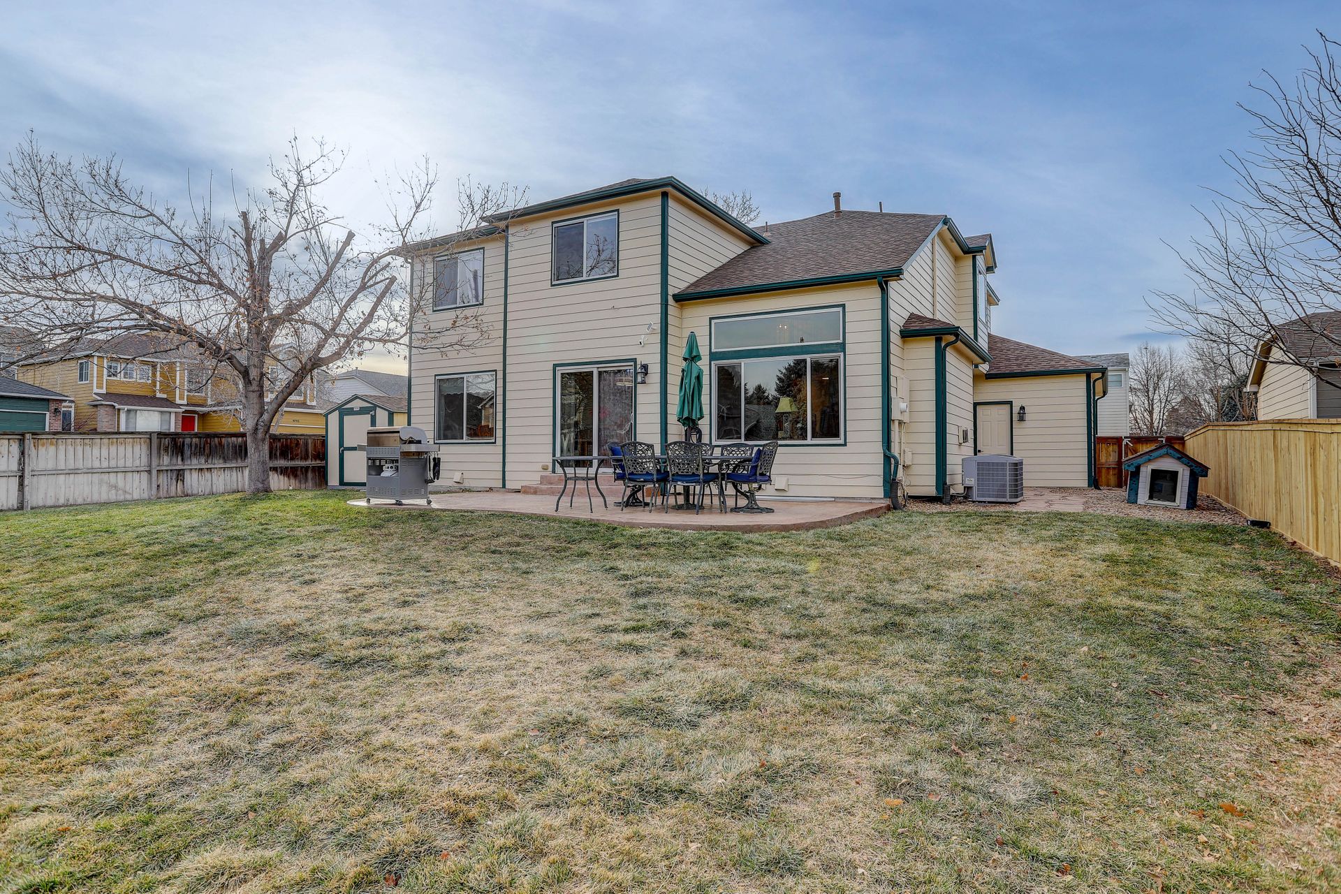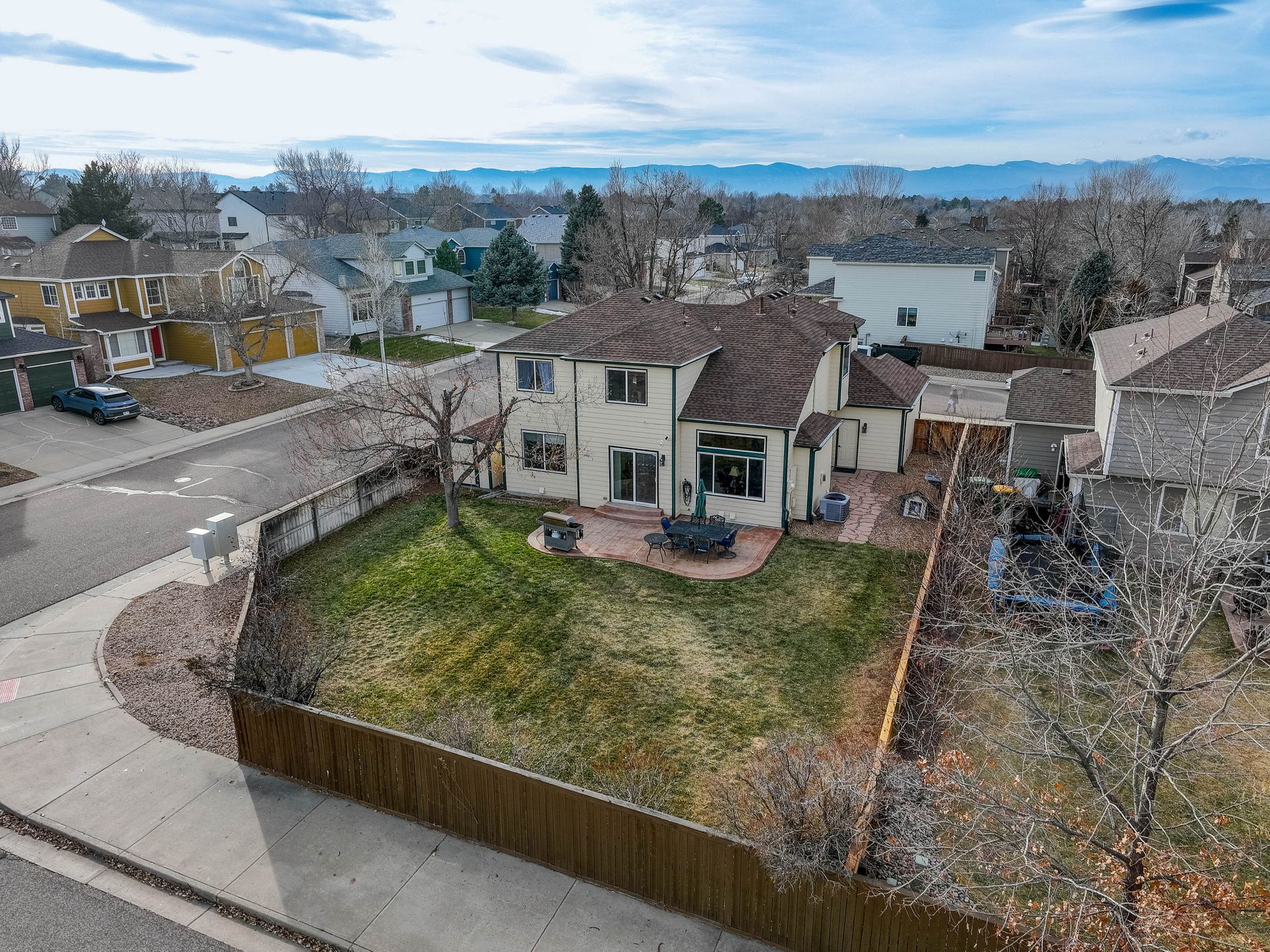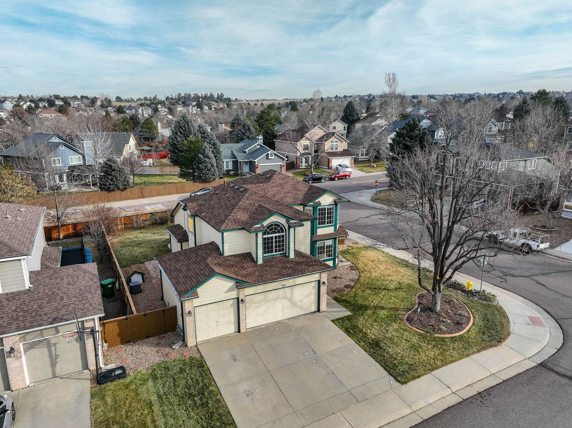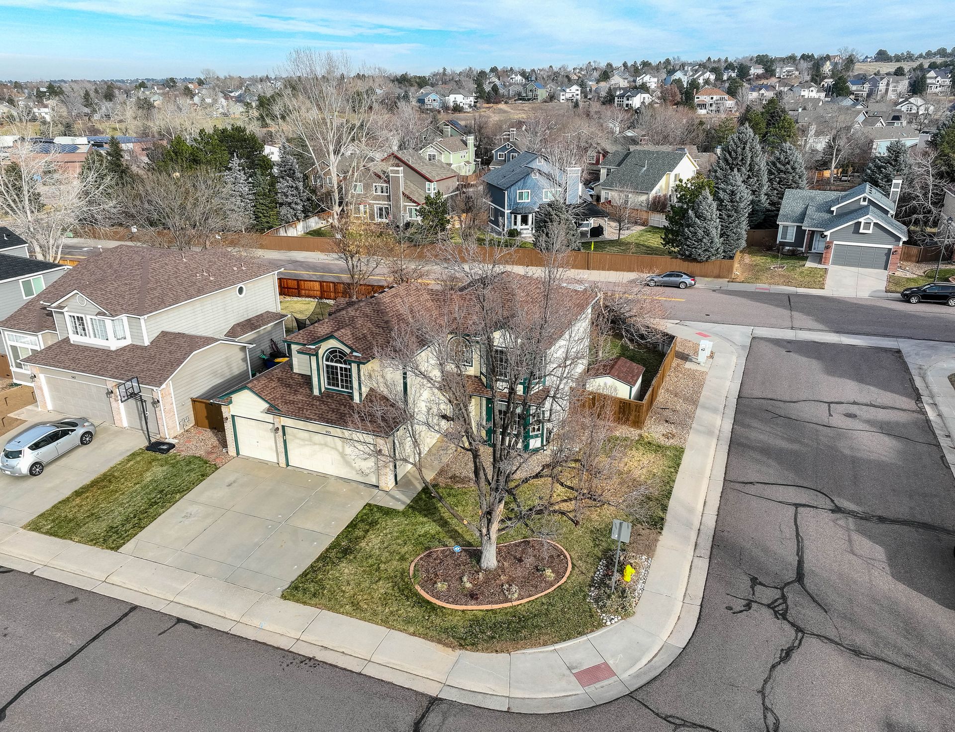 Pampered updated beauty conveniently located on a large corner lot just a block from Kistler Park, trails, and elementary school. Sunny and bright interior boasting of pride of ownership, gleaming wood floors, fresh paint, and new carpeting await you. Four spacious bedrooms upstairs and one in the full finished basement provide plenty of room for a home office, exercise equipment, and hobby areas. The vaulted primary suite has a five-piece bathroom with a custom tiled shower and a walk-in closet for all your storage needs. Snuggle up in the cozy main-floor family room with a lovely two-story gas fireplace to ward off the chilly weather. Enjoy movie nights in the basement media room with custom ceiling and mood lighting. Don't forget the popcorn. Entertain and play games in the large, finished recreation room. There is plenty of room in the attached three-car garage for your vehicles and storage. Rover will appreciate the doggy door and custom doghouse. Easy maintenance second-level leaf guards. Highlands Ranch is a desirable community with something for everyone. There are four recreation centers, a new senior center, pools, parks, trails, tennis and pickle ball courts, skate park, climbing wall, batting cages, golfing, community gardens, wilderness areas, a multitude of shopping, entertainment and events, easy commuting, and so much more. Bring your moving van. You will want to live here in comfort forever.