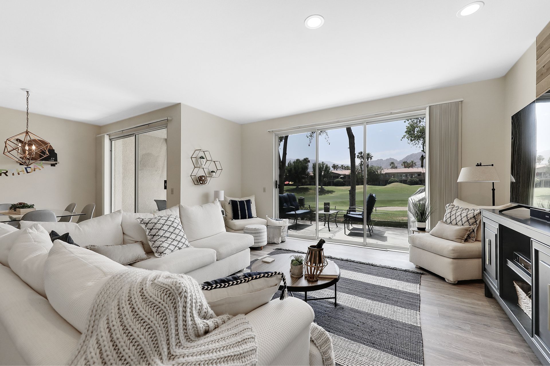 Welcome to a little slice of paradise in this highly esteemed premier Golf Community, PGA West! Three Public Courses and three Private Courses make this community a golfers paradise! Enjoy fabulous West-facing views of the Santa Rosa Mountains from the 5th hole of the Nicklaus Tournament Course- sit on your private patio and watch the golfers go by. The open and airy upgraded floor plan makes the kitchen/dining/living a great place to entertain while maximizing the flow of the space. You can relax and unwind in this semi-furnished home - just show up and you're on your way to peace and relaxation. Stainless steel appliances make this kitchen a chef's delight – and beautifully remodeled granite counters add the touch of class you deserve. Come see now before this one gets away! This is a must-see!