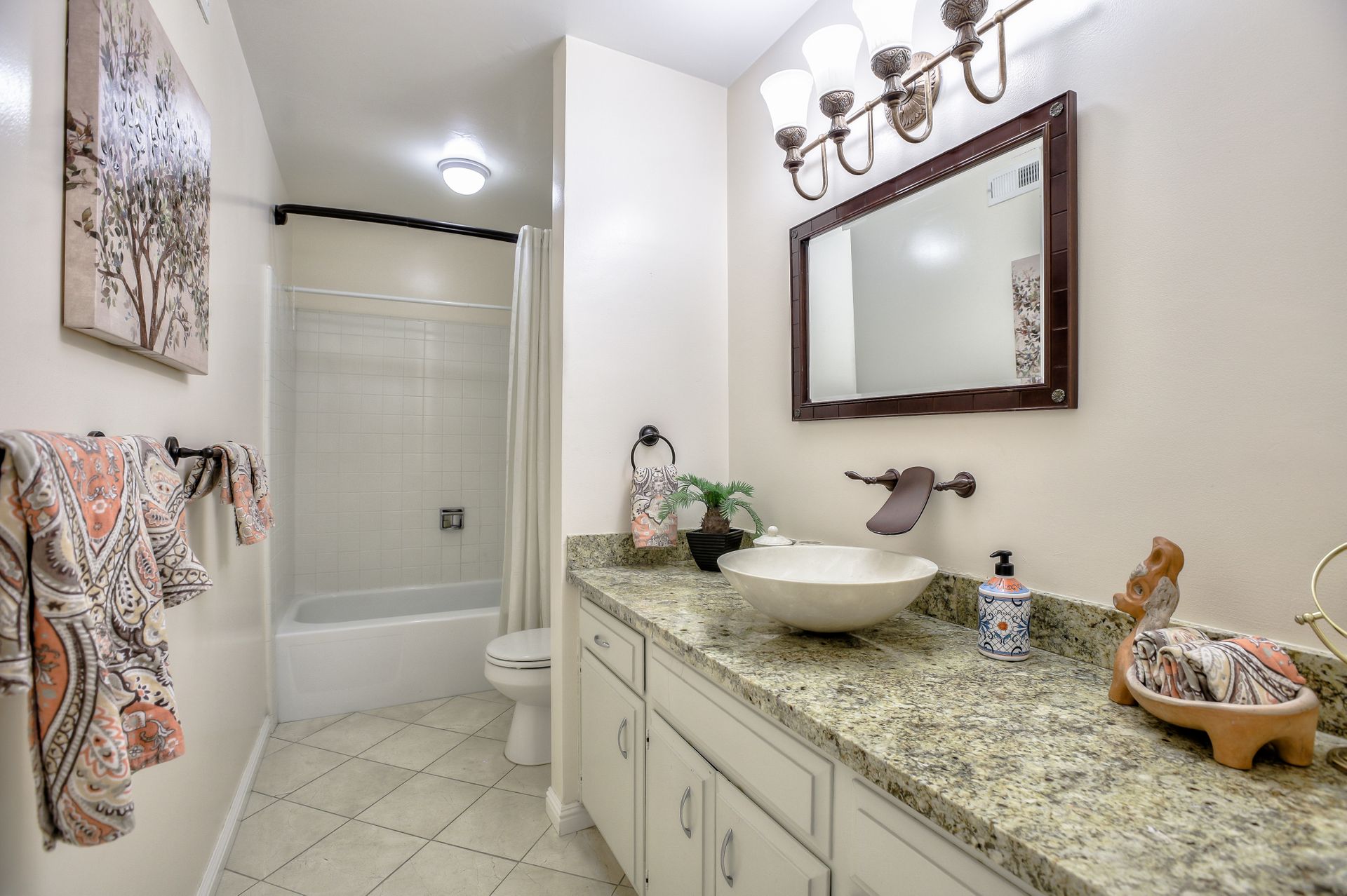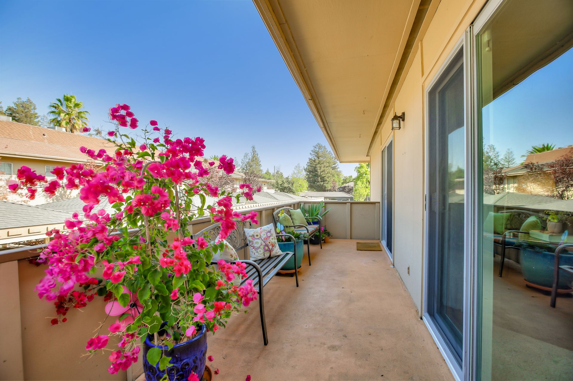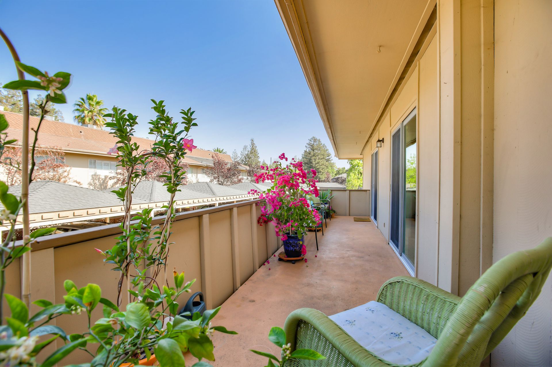 This very special corner end unit has views of golf greens and foothills from a beautifully appointed three-bedroom, two-bathroom condo with a spacious open floorplan. Lovingly remodeled with attention to detail throughout and special custom upgrades include travertine tile, canister lighting, granite counters, marble bowl sinks, custom Amish cabinet doors, four sets of newly installed vinyl sliding glass doors and more. Elegant Carrera marble floors grace the entryway, kitchen & both baths. A private single car garage and two additional parking spaces make this unit a spectacular choice for buyers. Located near historic Alum Rock Park, shopping, transportation, (680, BART, Light rail). Enjoy outdoor living from your two spacious balconies with views of the manicured San Jose Country Club golf greens and mature trees or sunny community swimming pool. ML81816581