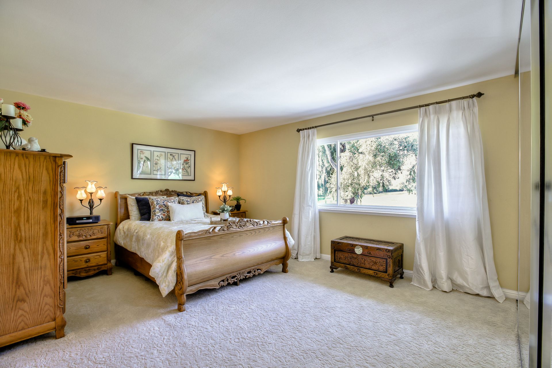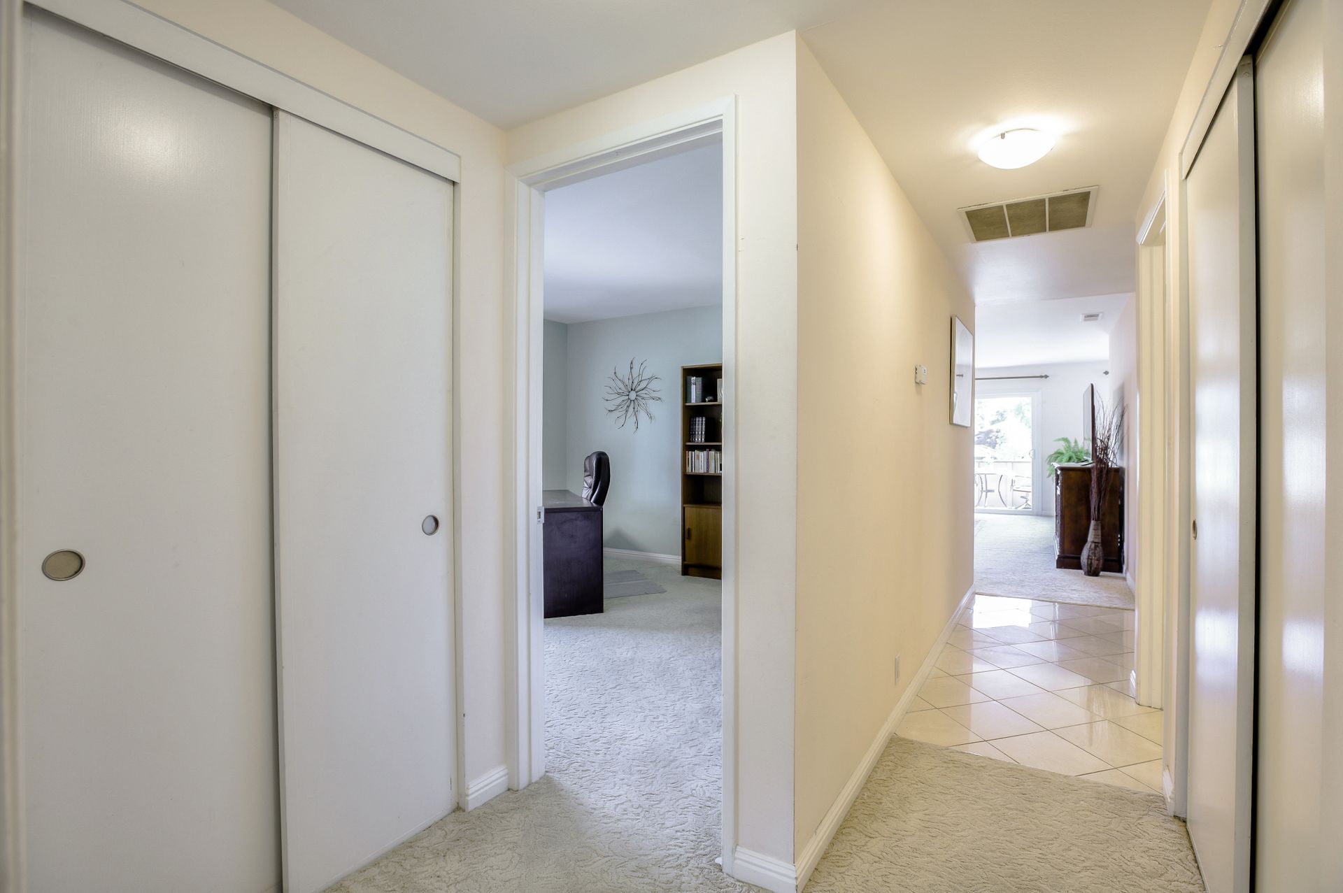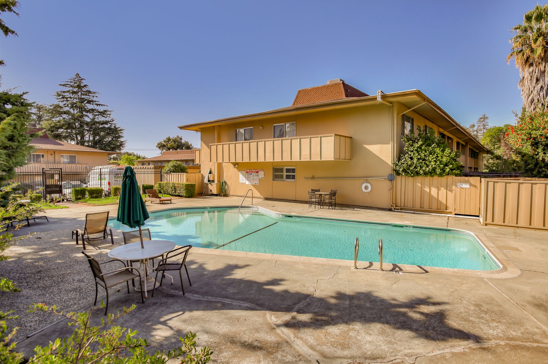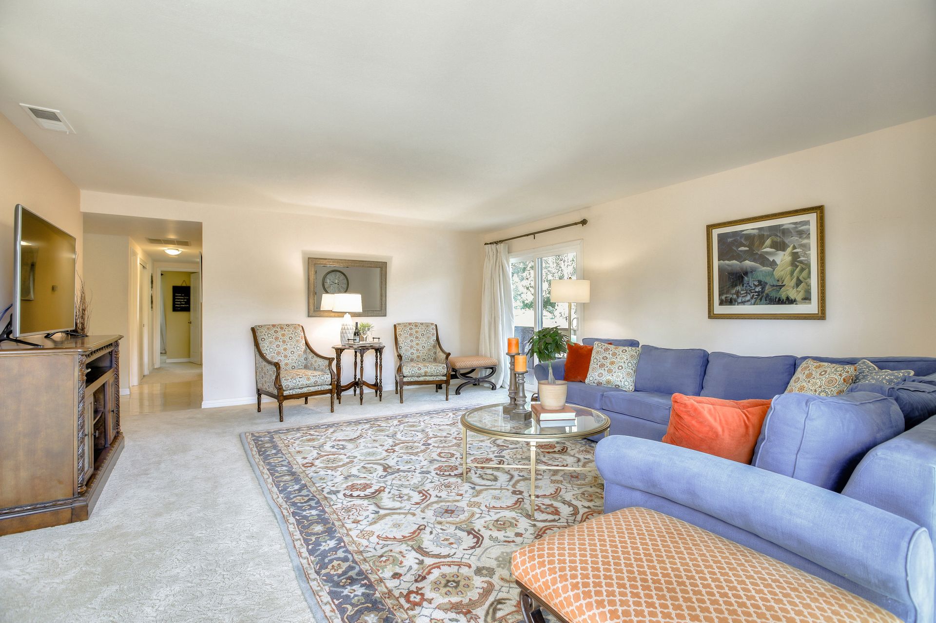 This very special corner end unit has views of golf greens and foothills from a beautifully appointed three-bedroom, two-bathroom condo with a spacious open floorplan. Lovingly remodeled with attention to detail throughout and special custom upgrades include travertine tile, canister lighting, granite counters, marble bowl sinks, custom Amish cabinet doors, four sets of newly installed vinyl sliding glass doors and more. Elegant Carrera marble floors grace the entryway, kitchen & both baths. A private single car garage and two additional parking spaces make this unit a spectacular choice for buyers. Located near historic Alum Rock Park, shopping, transportation, (680, BART, Light rail). Enjoy outdoor living from your two spacious balconies with views of the manicured San Jose Country Club golf greens and mature trees or sunny community swimming pool. ML81816581