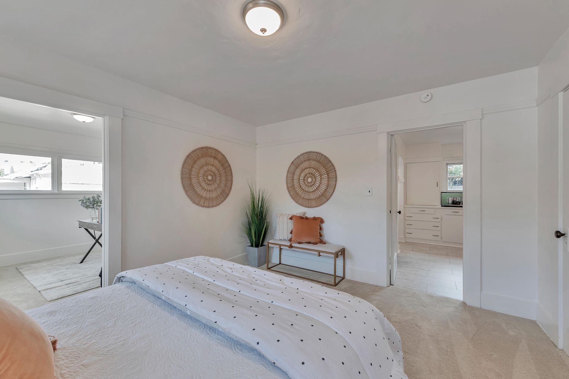 Nestled in the wonderful Willow Glen community, this charming cottage sits on a beautiful tree-lined street amongst many charming homes and just a stroll away from downtown WG and close to the freeway and downtown San Jose. Relax on your inviting covered front porch or bask in the spacious backyard with yummy peach and citrus trees. Inside, you'll find newly refinished wood floors, newly installed plush carpet and fresh paint. Custom-built cabinets, coved ceilings, a cozy fireplace, a breakfast nook, indoor laundry and a welcoming, bright and sunny atmosphere complete this ideal picture. The oversized two-car garage offers ample storage and an attached covered patio for outdoor enjoyment. Lots of parking with a long driveway, a newer fence and very possibly a great opportunity to build an ADU. Your dream Willow Glen home awaits!