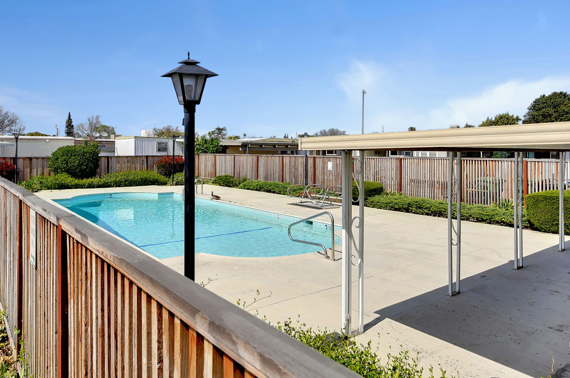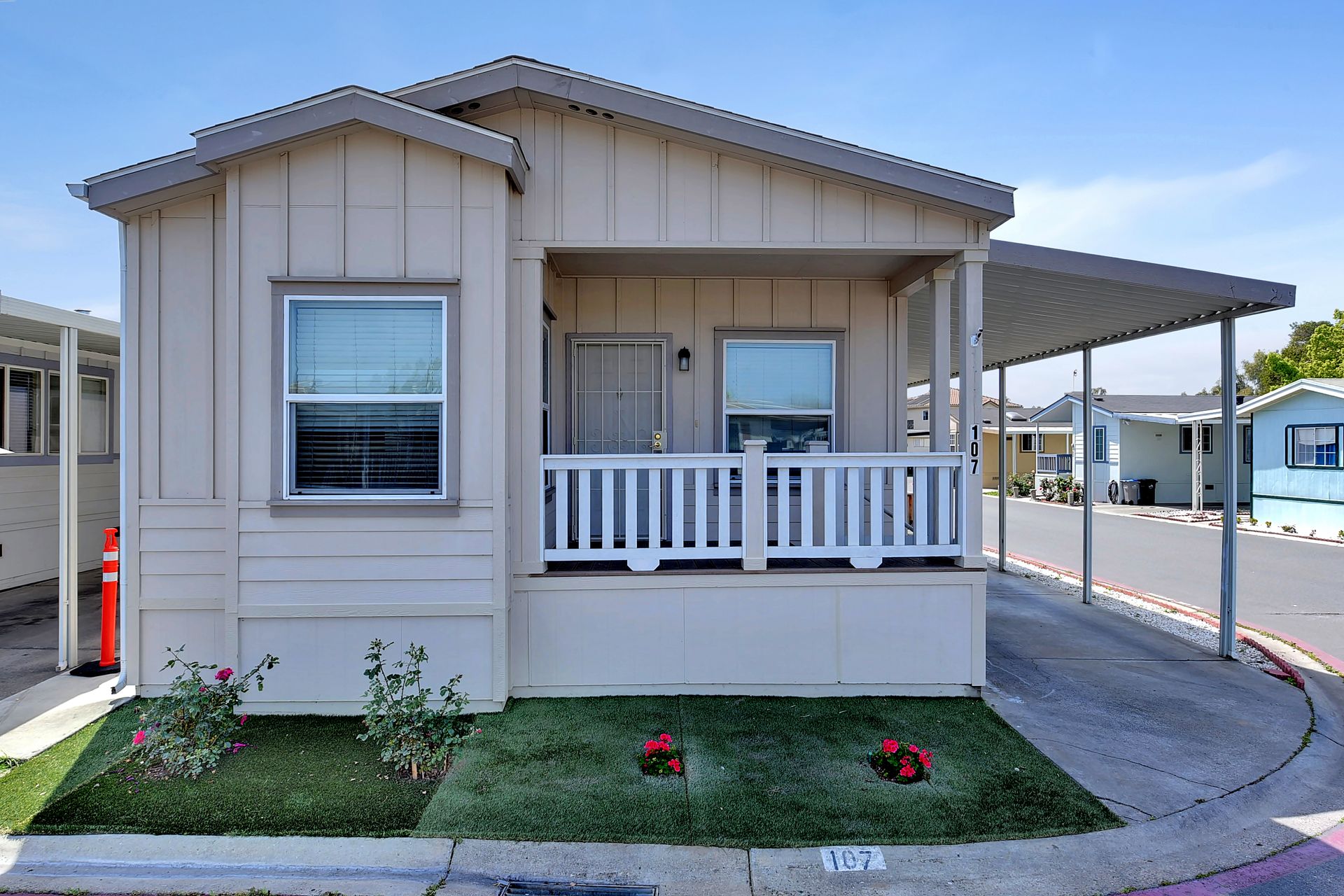 This beautiful Manufactured Home was built in 2008 with two beds, two baths in the San Jose Verde community with approximately 1270 square feet. The home offers a spacious living room with laminate flooring and a ceiling fan. The kitchen features countertops, a stove, oven, and garbage disposal. The double-pane windows throughout the entire home and central Air Conditioning cool the home during those summer days. The home has a large master bedroom with a spacious walk-in closet and a good size guest bedroom. The home is well-kept and well-maintained. The refrigerator, oven, washer, and dryer stay with the home. The home is on a perimeter lot with a low maintenance landscape. The park's amenities include a pool and clubhouse, extra storage shed, and two-car carport parking. It is located close to freeways 101, 280, 87 and schools, shopping centers, and grocery stores. This one has it all! A must-see!