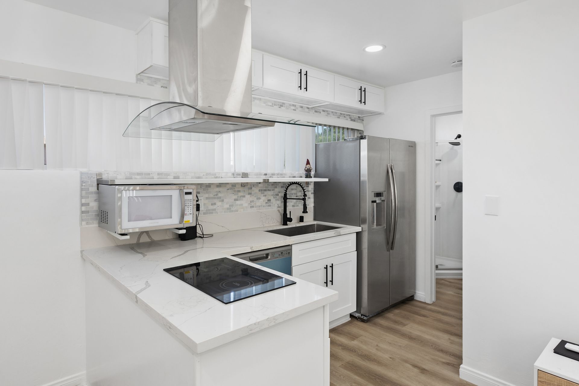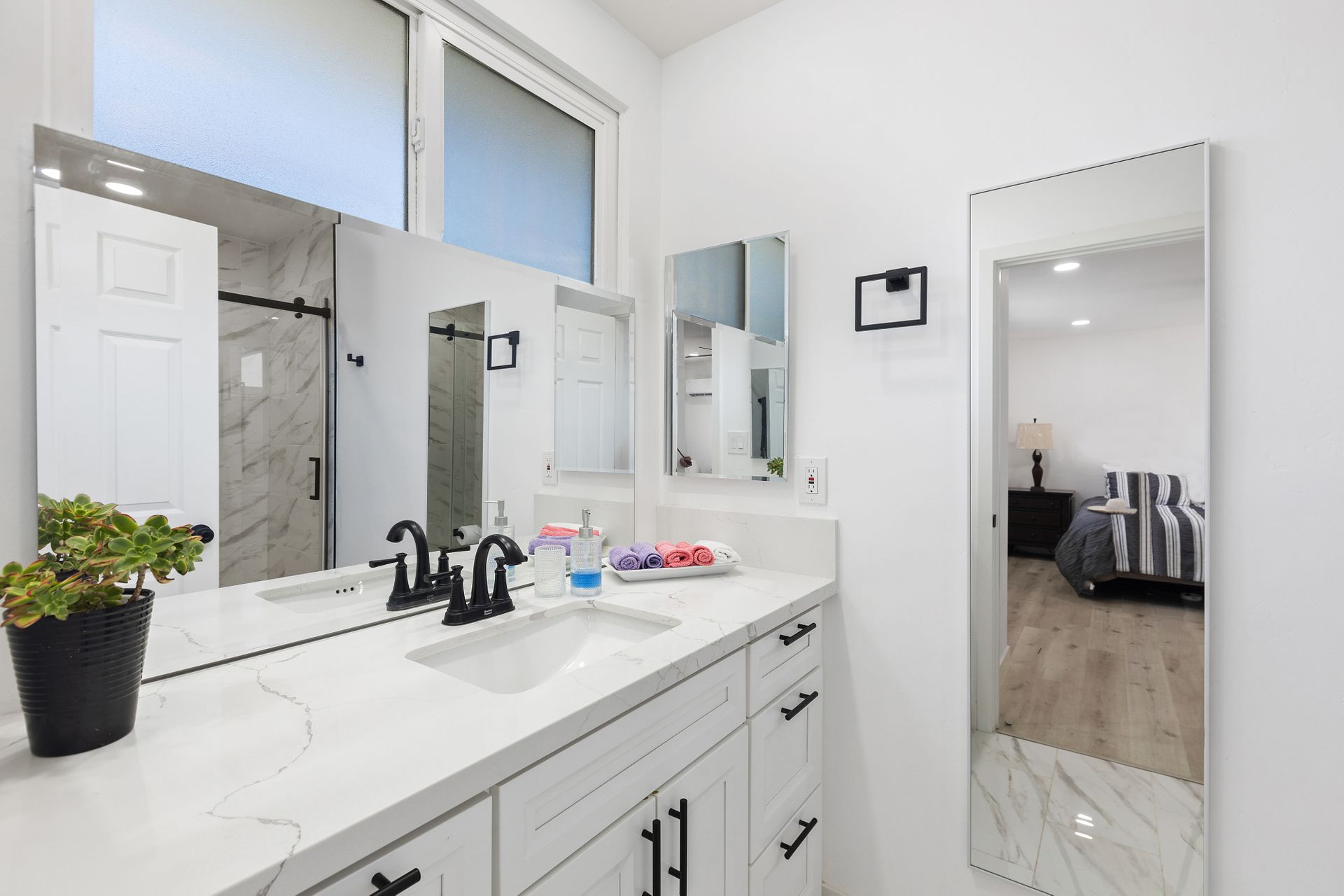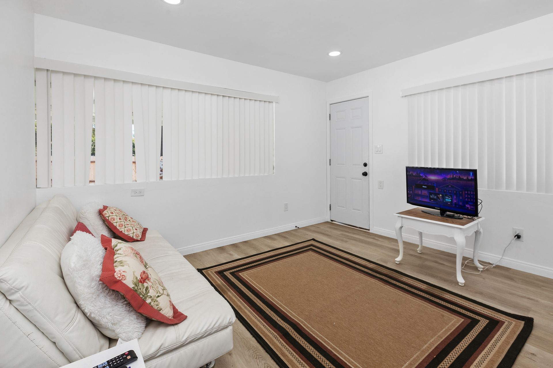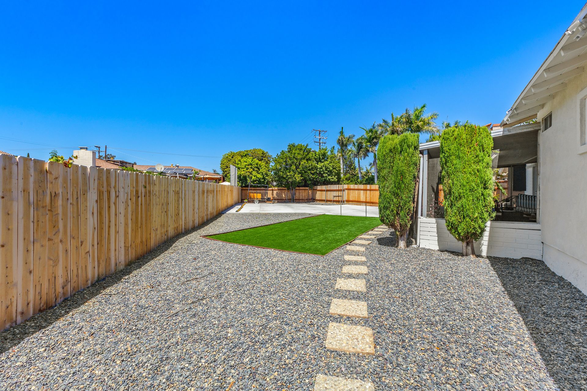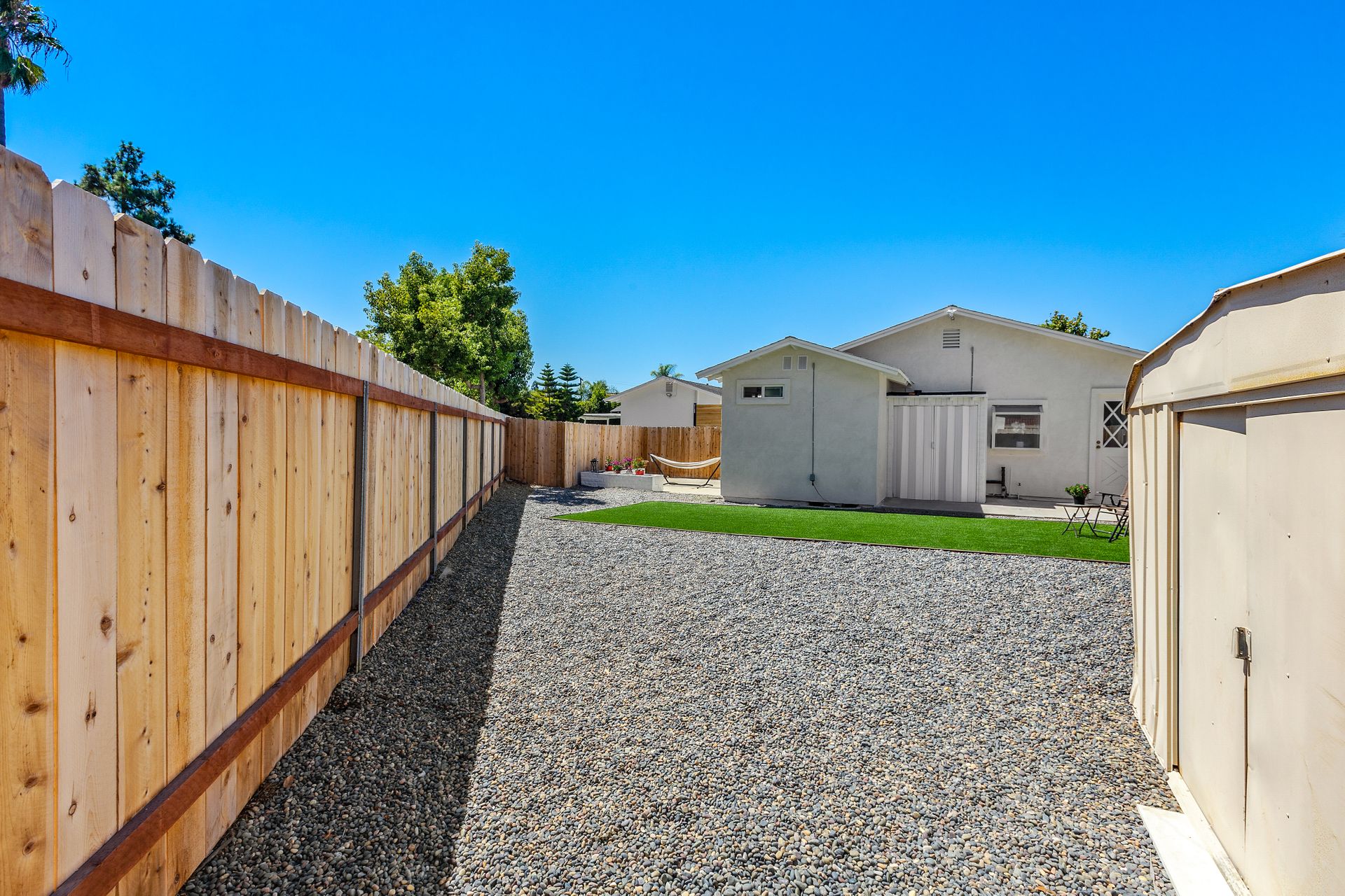 The income property exudes modern elegance, with a spacious courtyard and access to a two-car garage. The backyard can accommodate up to seven cars within the automated gated carports, offering ample parking. The property boasts a new fence all over the property, Hardscape beach pebbles, and synthetic turf. Currently, the property generates $12,000 per month from long-term, month-to-month tenants, with the potential to increase to $14,000 per month through mid-term and short-term rentals. The primary suite is utilized as an Airbnb, further enhancing income potential. High-demand rental area.