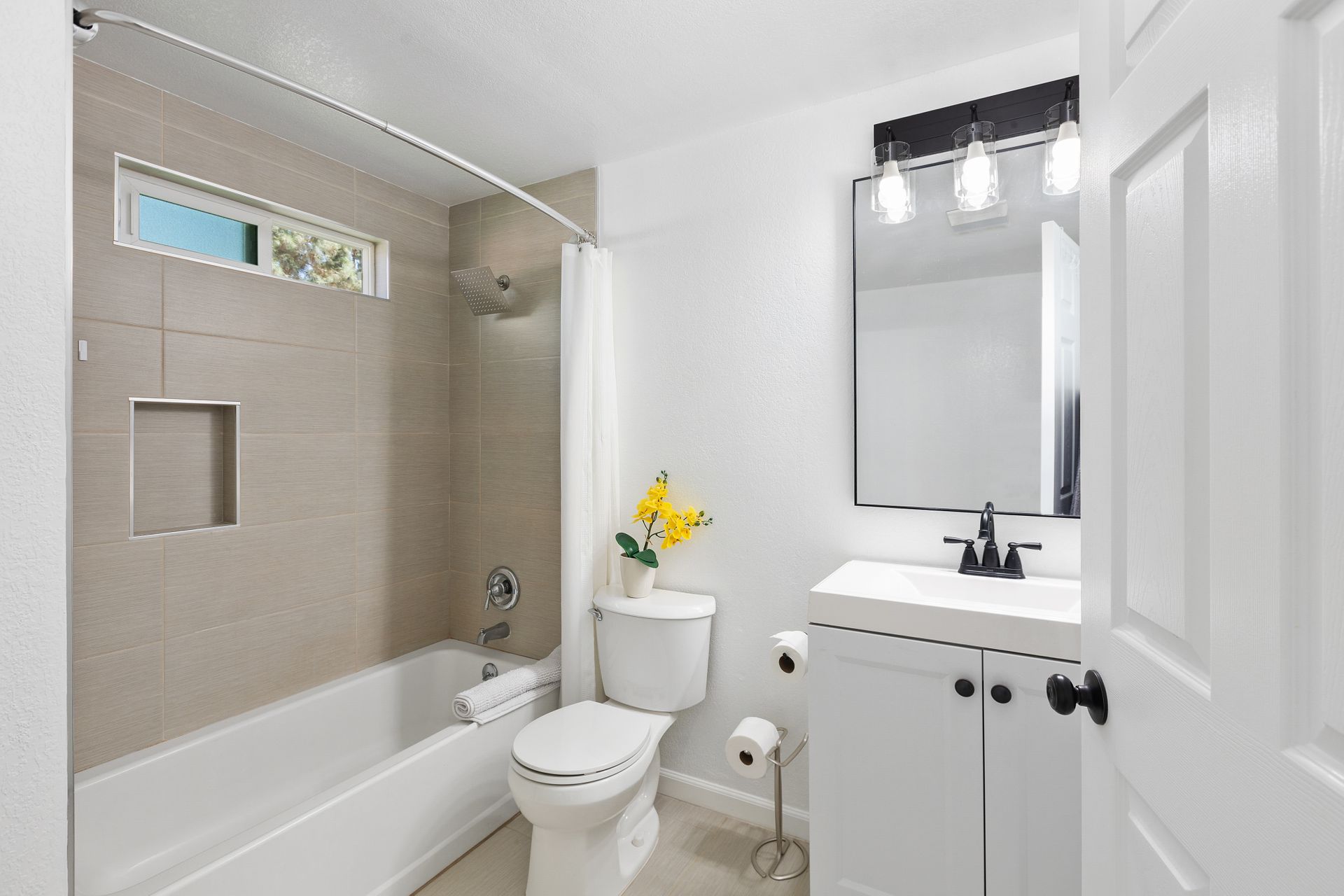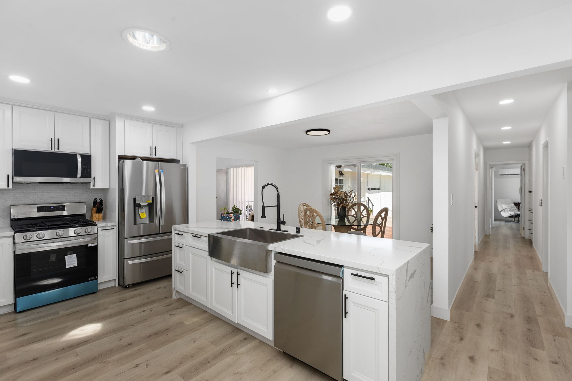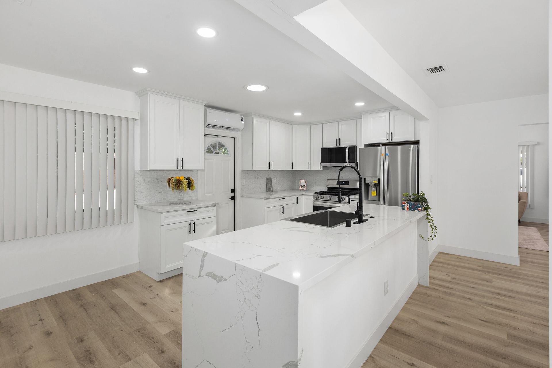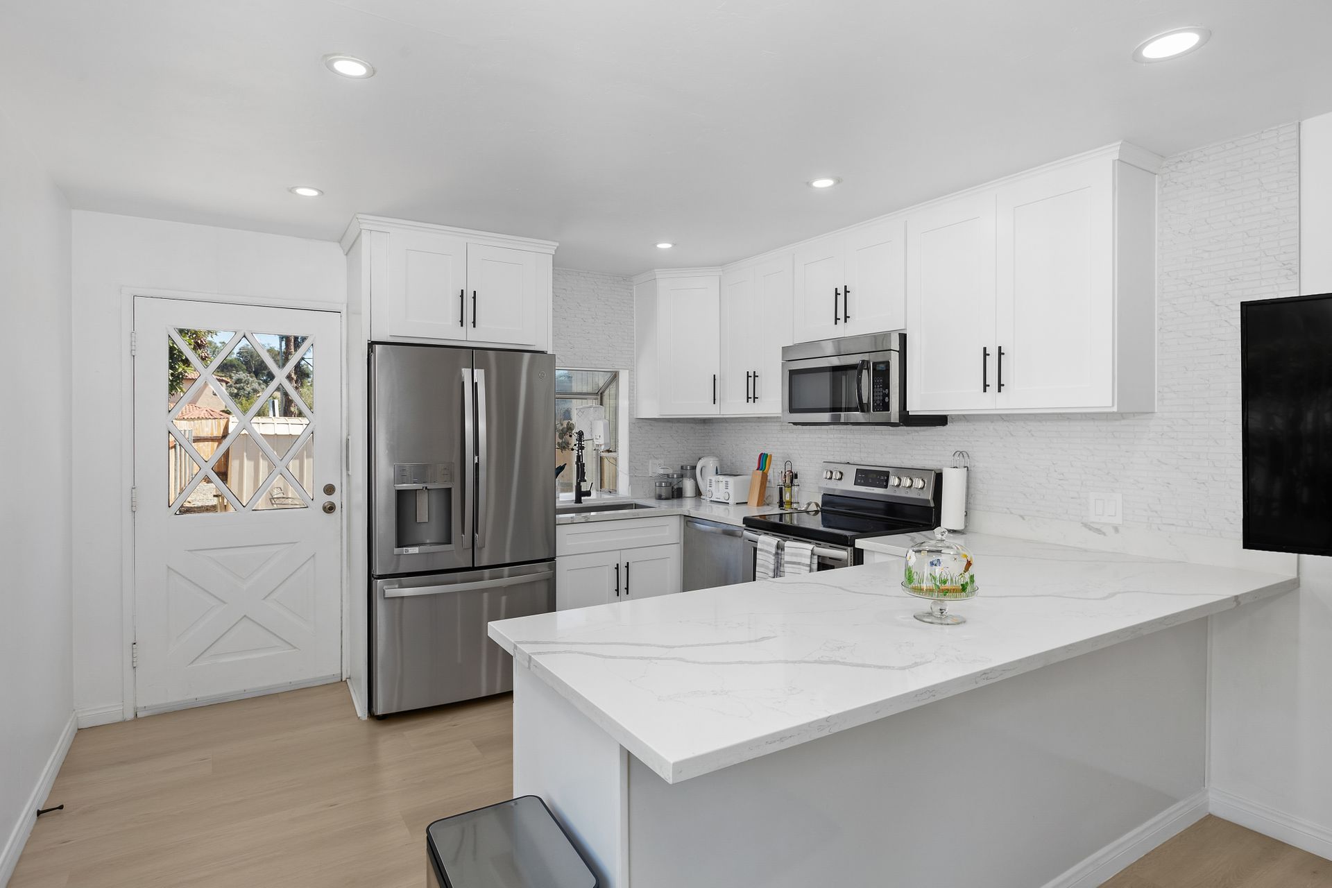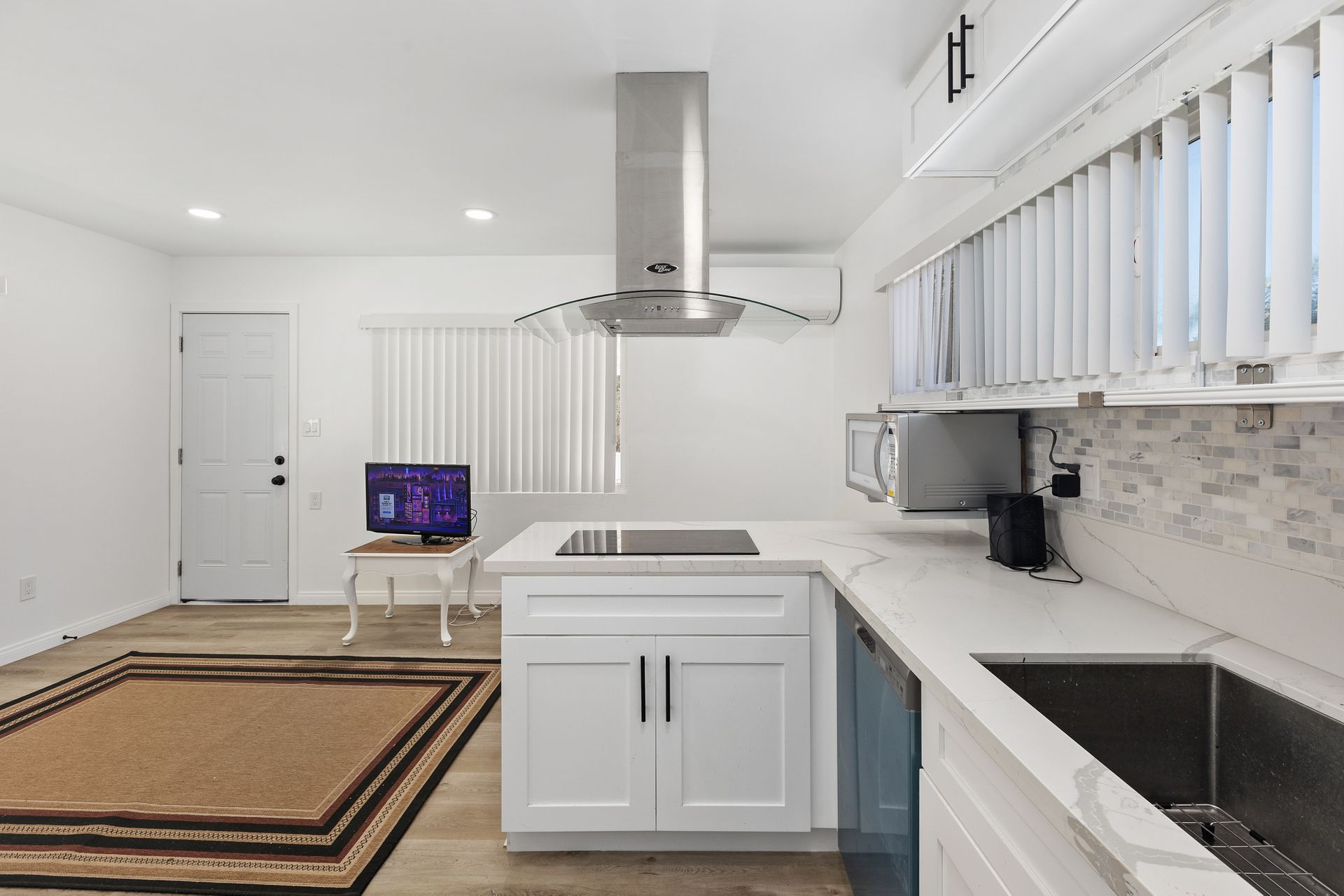The income property exudes modern elegance, with a spacious courtyard and access to a two-car garage. The backyard can accommodate up to seven cars within the automated gated carports, offering ample parking. The property boasts a new fence all over the property, Hardscape beach pebbles, and synthetic turf. Currently, the property generates $12,000 per month from long-term, month-to-month tenants, with the potential to increase to $14,000 per month through mid-term and short-term rentals. The primary suite is utilized as an Airbnb, further enhancing income potential. High-demand rental area.