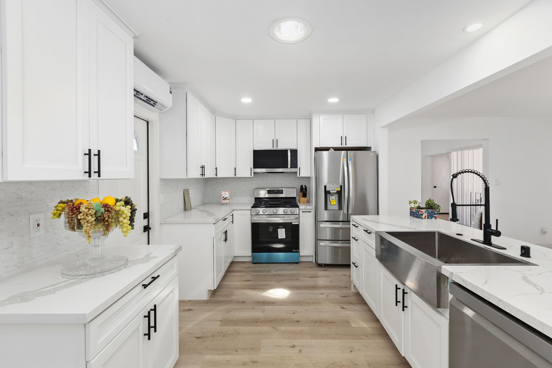 The Triplex has been fully renovated, including all new Quarts countertops with beautiful new soft closing cabinets, a vaulted ceiling, and under-mound sinks. LTV and Marble throw out. All Brand-new, high-efficiency appliances and air conditioning in every unit. Walls are soundproof, and the walk-in showers are galvanized.