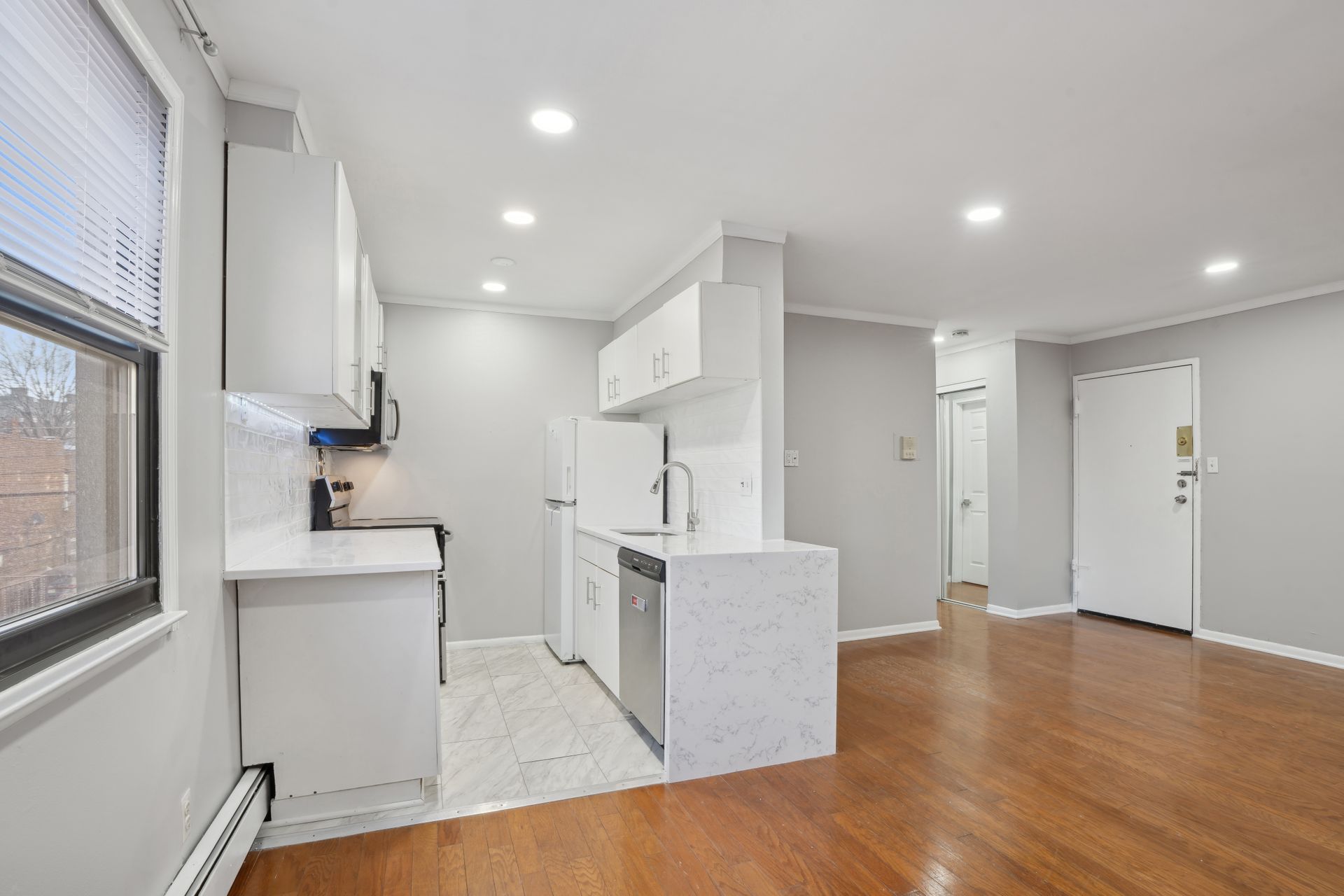 Welcome to 56 68th Street #7, a bright, beautifully renovated one-bedroom, one-bath apartment nestled in the charming, vibrant community of Guttenberg. This home is brimming with natural light, boasting an open layout that enhances the sense of space and versatility throughout. Recently updated, this home features hardwood flooring, LED recessed lighting and windows in every room, including a glimpse of NYC views. A modern kitchen features Brazilian quartz waterfall counters, stainless steel appliances, a subway-tiled backsplash and under-cabinet lighting for added ambiance. The kitchen, living and dining areas flow seamlessly, creating an ideal space for relaxation or entertaining. One of the most valuable perks is the included one-car garage parking, offering added convenience for commuters or neighborhood explorers. Living here means enjoying a reasonable monthly HOA that covers property taxes, heat, hot and cold water, sewer, professional management and garage parking, making budgeting a breeze. The 56 68th Street Cooperative is a well-managed, financially stable community. The Guttenberg area offers a warm neighborhood feel with easy access to NYC via nearby transit options and the waterfront with its scenic views is just moments away. Residents love local favorites such as the Riverwalk for weekend strolls, parks, charming cafes and a variety of diverse dining spots, including the beloved Son Cubano for upscale Cuban cuisine, the inviting GP’s Restaurant for classic Italian-American fare and the lively Rumba Cubana just around the corner for authentic Latin flavors. With its perfect balance of modern comfort, affordability and convenience, including NYC buses right on the corner, this home is an excellent choice for those seeking a welcoming, well-connected community.