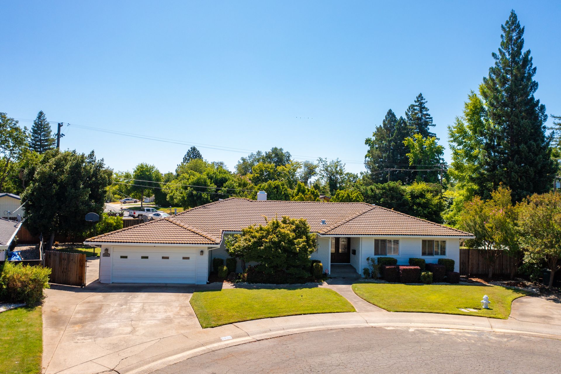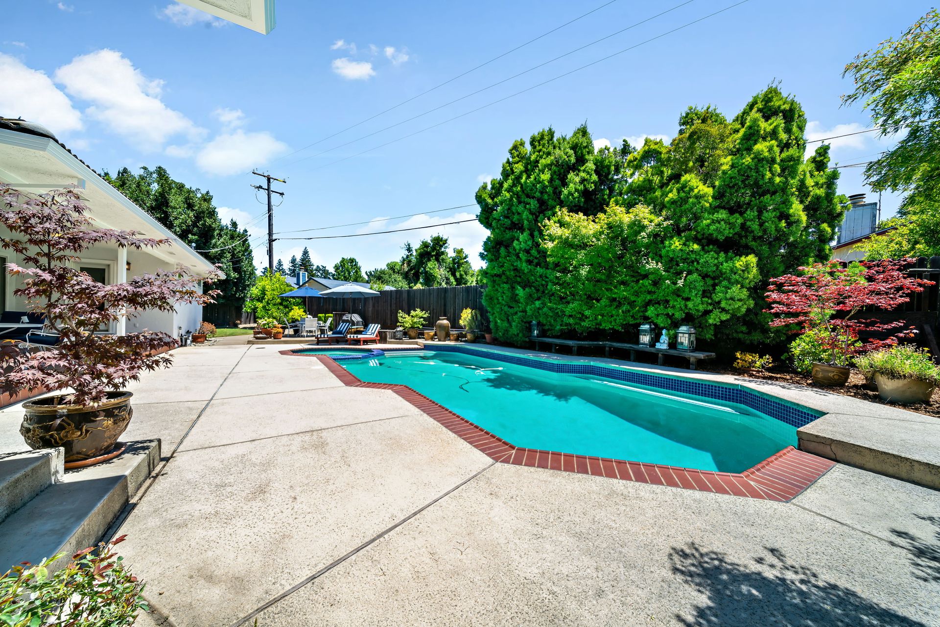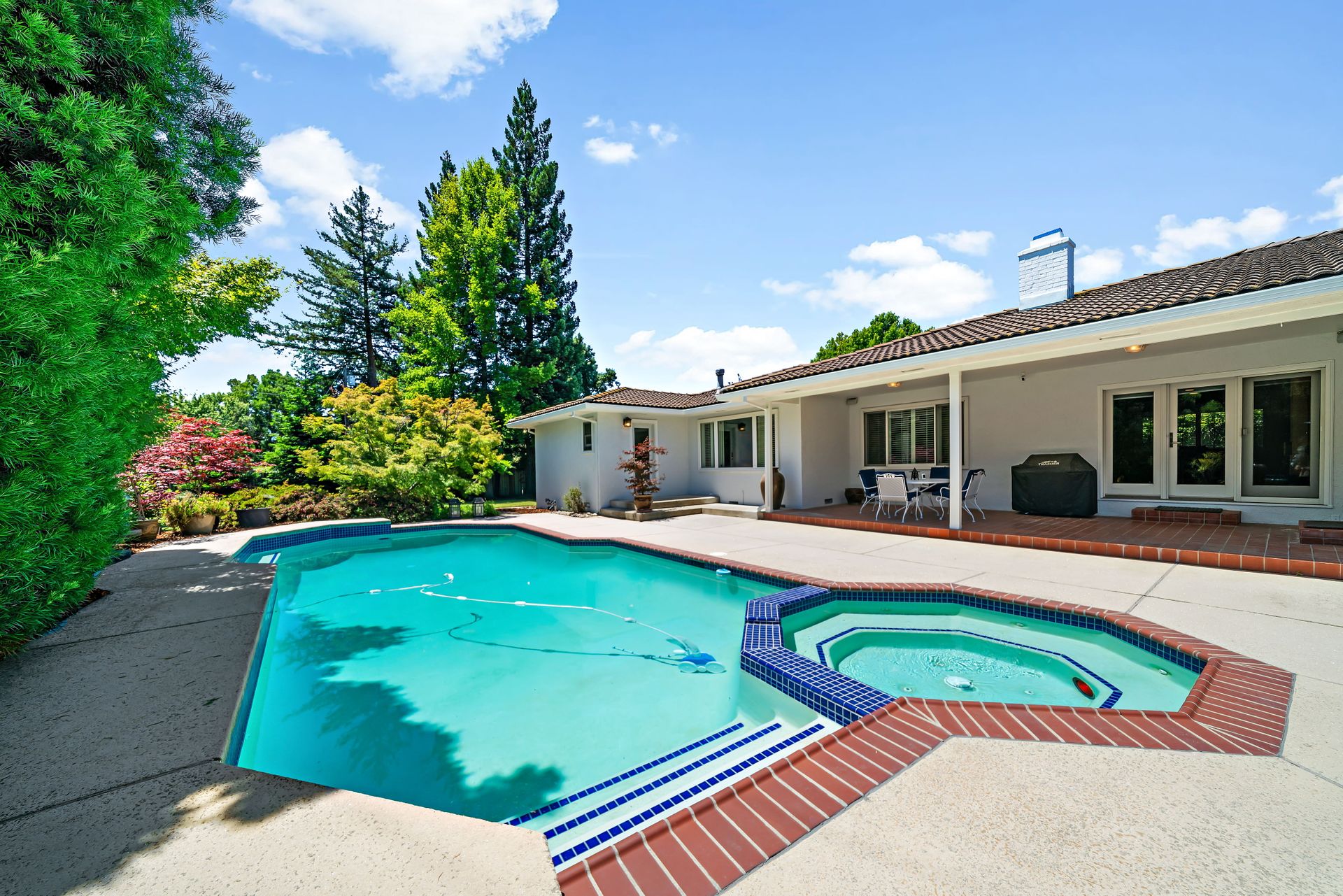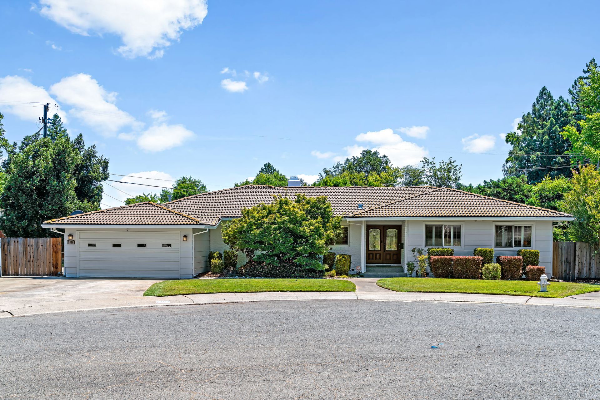 Beautiful one-story home with a sparkling pool in a quiet cul-de-sac in Walnut Grove Estates. With 4 beds, 3 baths and approximately 2,300 square feet on almost 1/3 acre, this home is tastefully updated and well-cared for by owners of 49 years. Welcoming home has a thick green lawn, elegant leaded glass doors and a freshly painted exterior. Lots of natural daylight and gorgeous red oak wood floors with a subtle inlay define living space. Lots of windows offer views to trees and a backyard. Updated kitchen shines; granite counters, maple cabinets, recessed ceiling, can lights, gas range. Connects to nook and family room, with graceful built-ins to enhance space. Backyard has a large, covered patio and a refreshing pool and spa for year-round enjoyment. Oversized lot has a park-like yard with a grass area bounded by mature trees, ideal for play. Room for RV, dog run, garden and more. Delightful primary bedroom has a fireplace and stylish doors with efficient closet organizers. Bathrooms have spa-like finishes; frameless shower glass, gorgeous shower surrounds, clean fixtures and cabinets with large tile or travertine. Energy-efficient upgrades include Anderson dual pane windows, a whole house fan, concrete tile roof and newer pool Pentair pump and heater and water heater. Near shopping, restaurants, schools and recreation. No HOA or Mello Roos. Come see!