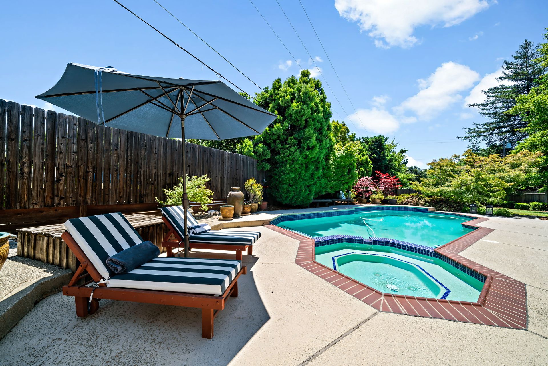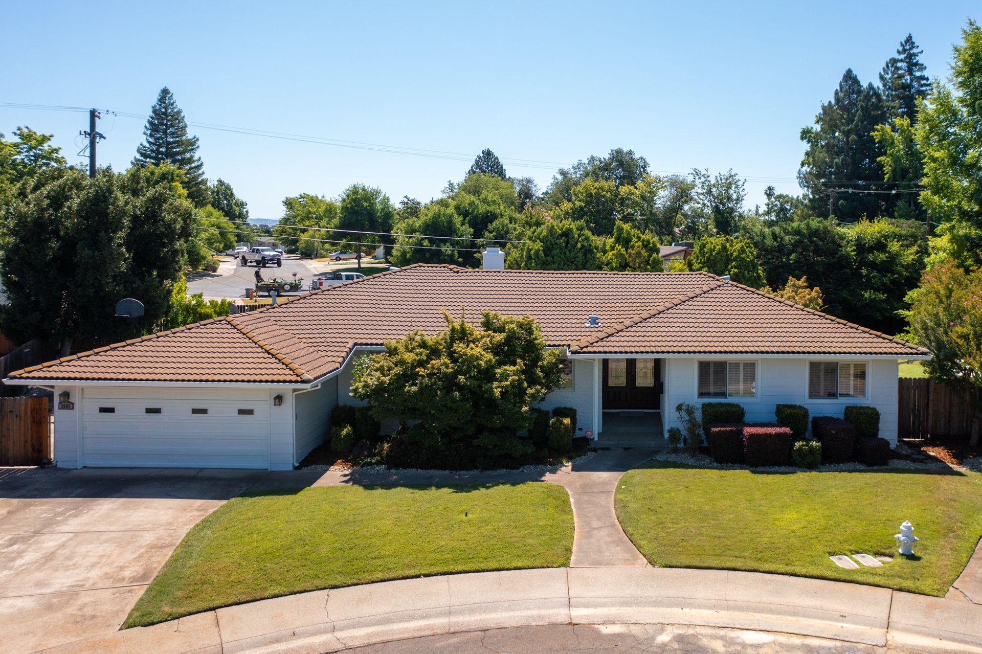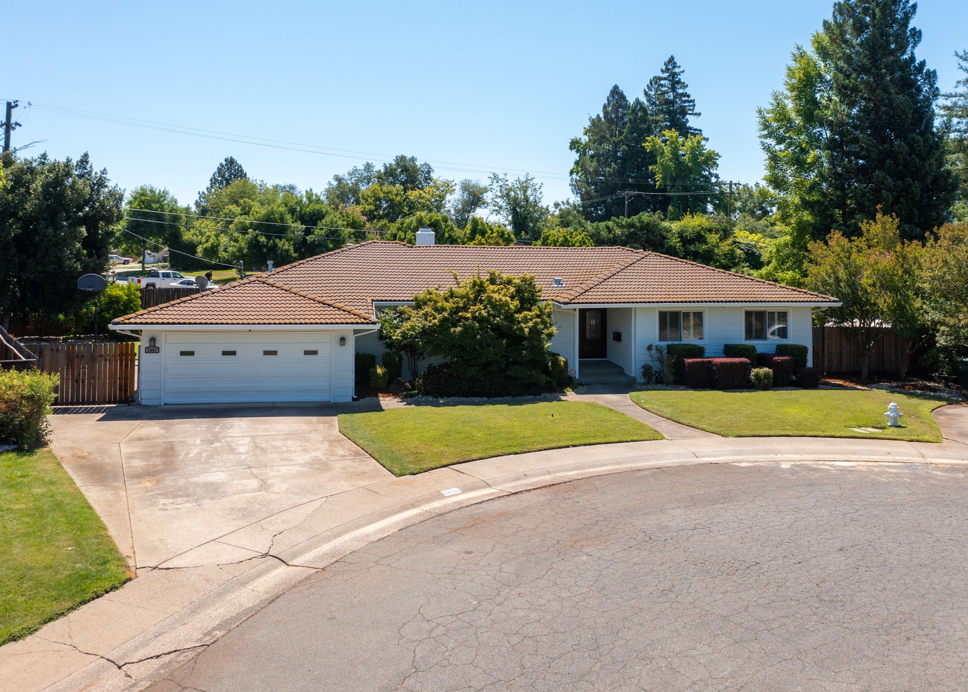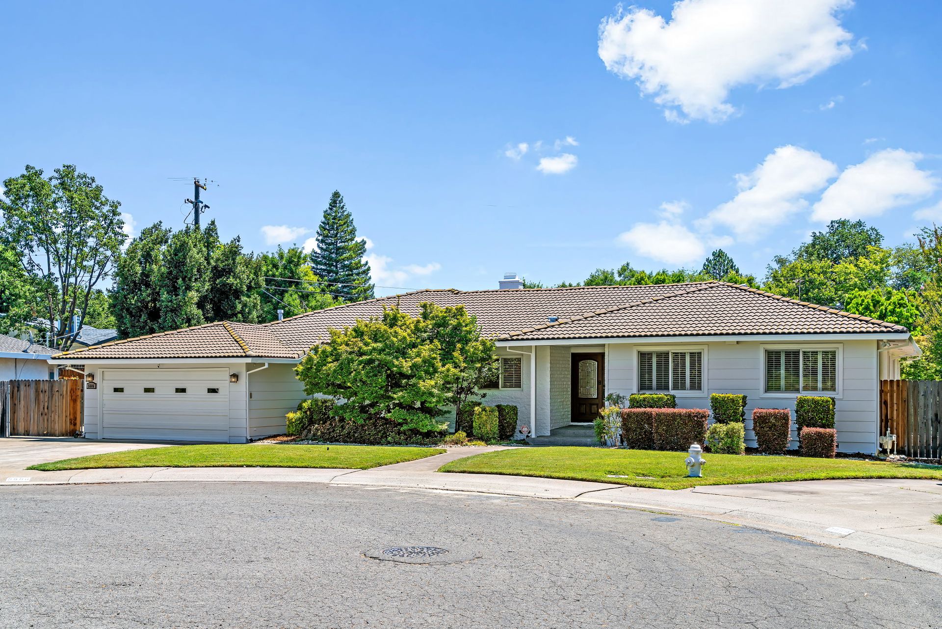 Beautiful one-story home with a sparkling pool in a quiet cul-de-sac in Walnut Grove Estates. With 4 beds, 3 baths and approximately 2,300 square feet on almost 1/3 acre, this home is tastefully updated and well-cared for by owners of 49 years. Welcoming home has a thick green lawn, elegant leaded glass doors and a freshly painted exterior. Lots of natural daylight and gorgeous red oak wood floors with a subtle inlay define living space. Lots of windows offer views to trees and a backyard. Updated kitchen shines; granite counters, maple cabinets, recessed ceiling, can lights, gas range. Connects to nook and family room, with graceful built-ins to enhance space. Backyard has a large, covered patio and a refreshing pool and spa for year-round enjoyment. Oversized lot has a park-like yard with a grass area bounded by mature trees, ideal for play. Room for RV, dog run, garden and more. Delightful primary bedroom has a fireplace and stylish doors with efficient closet organizers. Bathrooms have spa-like finishes; frameless shower glass, gorgeous shower surrounds, clean fixtures and cabinets with large tile or travertine. Energy-efficient upgrades include Anderson dual pane windows, a whole house fan, concrete tile roof and newer pool Pentair pump and heater and water heater. Near shopping, restaurants, schools and recreation. No HOA or Mello Roos. Come see!