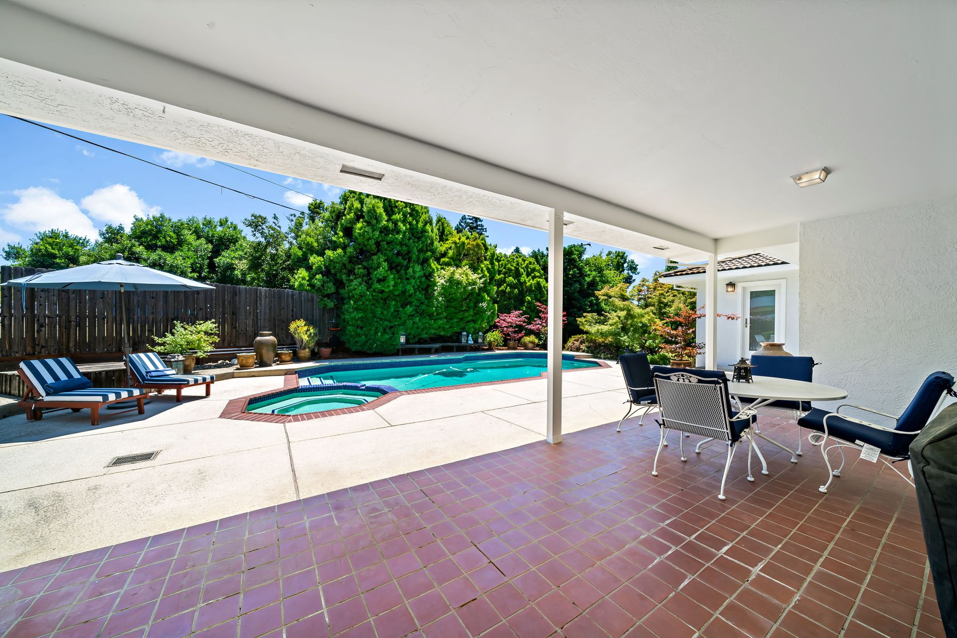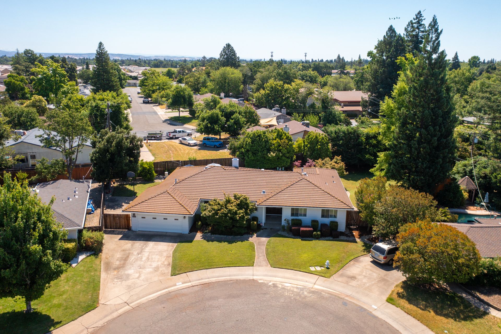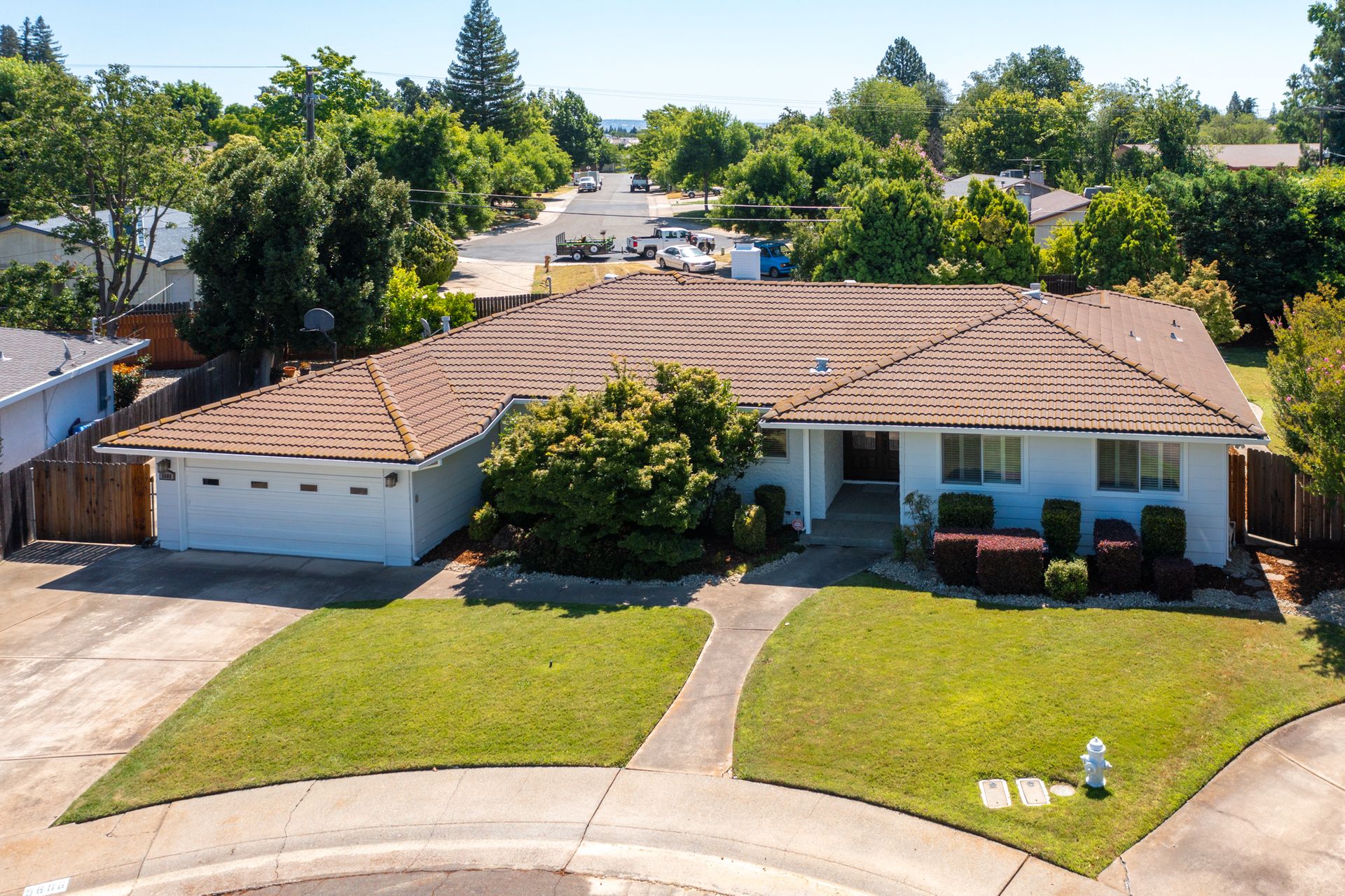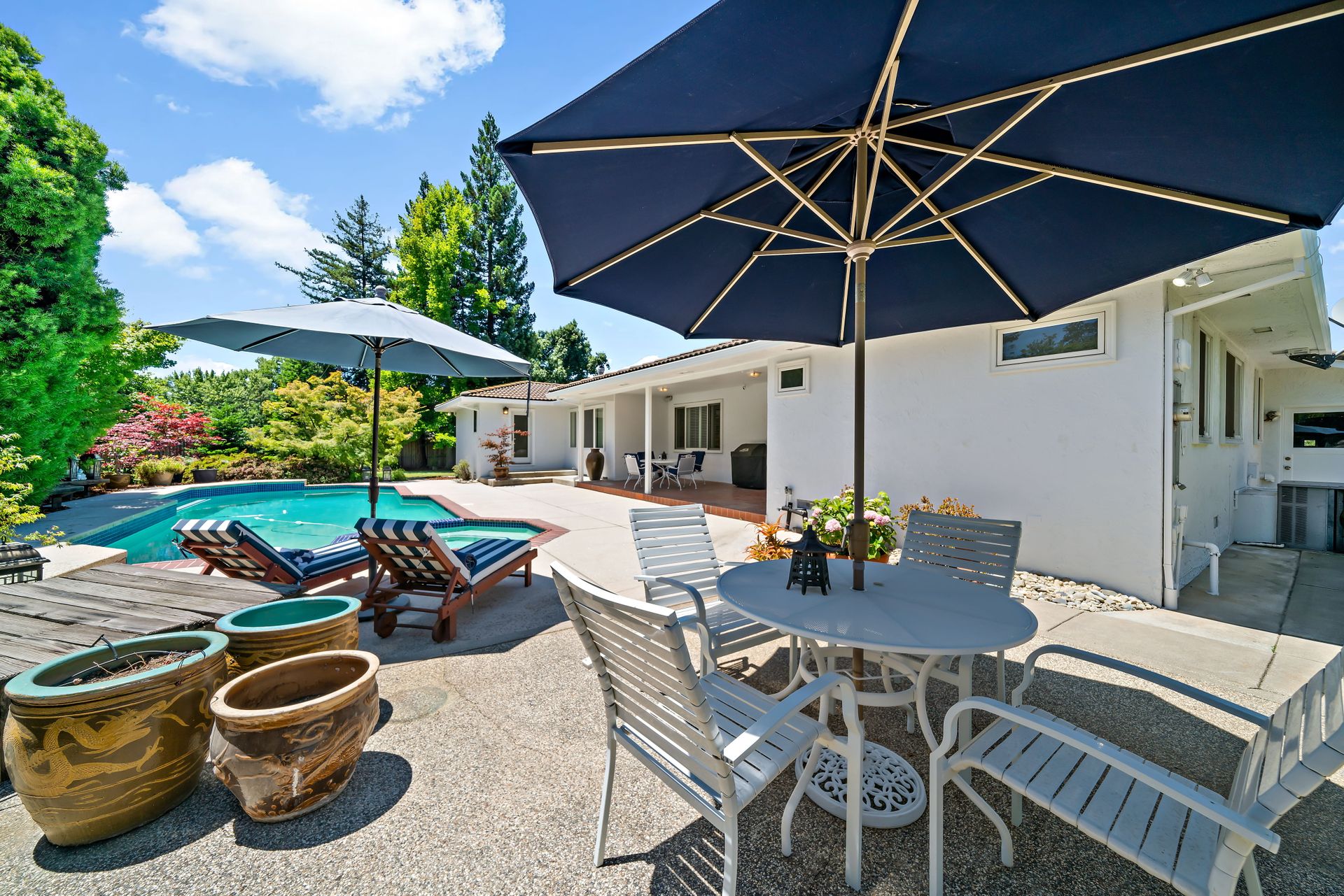 Beautiful one-story home with a sparkling pool in a quiet cul-de-sac in Walnut Grove Estates. With 4 beds, 3 baths and approximately 2,300 square feet on almost 1/3 acre, this home is tastefully updated and well-cared for by owners of 49 years. Welcoming home has a thick green lawn, elegant leaded glass doors and a freshly painted exterior. Lots of natural daylight and gorgeous red oak wood floors with a subtle inlay define living space. Lots of windows offer views to trees and a backyard. Updated kitchen shines; granite counters, maple cabinets, recessed ceiling, can lights, gas range. Connects to nook and family room, with graceful built-ins to enhance space. Backyard has a large, covered patio and a refreshing pool and spa for year-round enjoyment. Oversized lot has a park-like yard with a grass area bounded by mature trees, ideal for play. Room for RV, dog run, garden and more. Delightful primary bedroom has a fireplace and stylish doors with efficient closet organizers. Bathrooms have spa-like finishes; frameless shower glass, gorgeous shower surrounds, clean fixtures and cabinets with large tile or travertine. Energy-efficient upgrades include Anderson dual pane windows, a whole house fan, concrete tile roof and newer pool Pentair pump and heater and water heater. Near shopping, restaurants, schools and recreation. No HOA or Mello Roos. Come see!