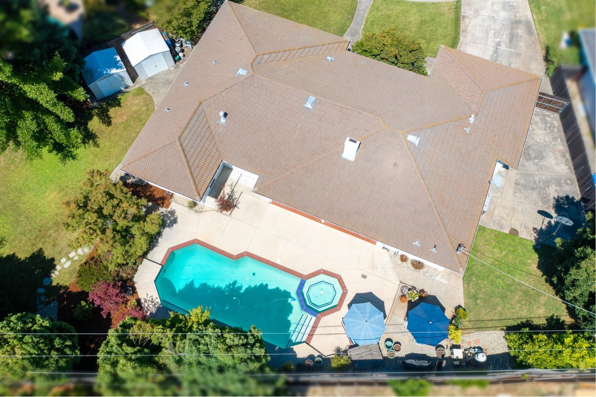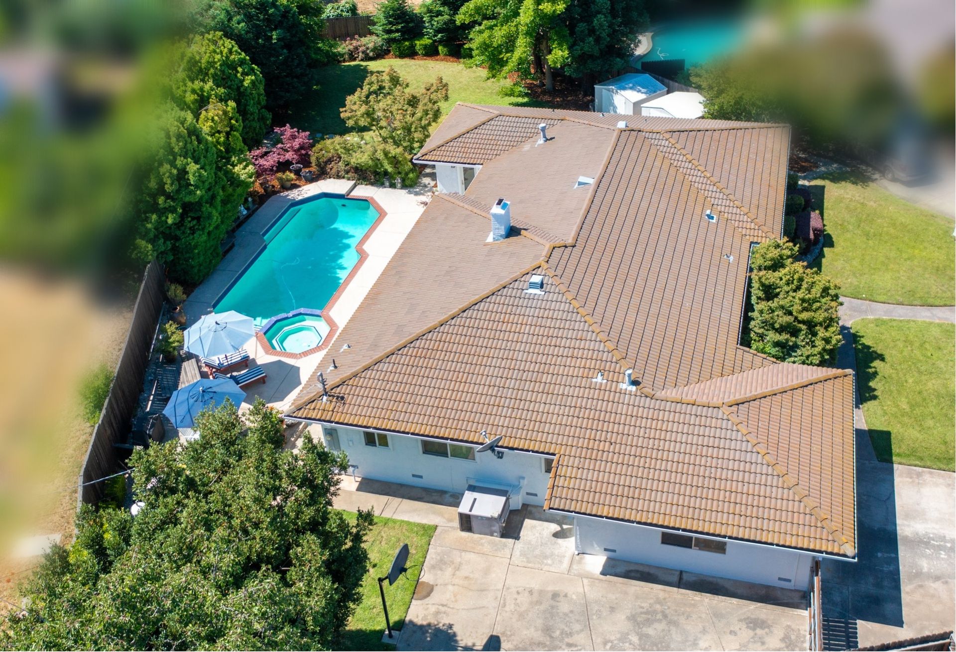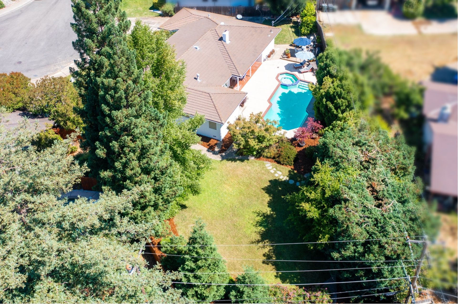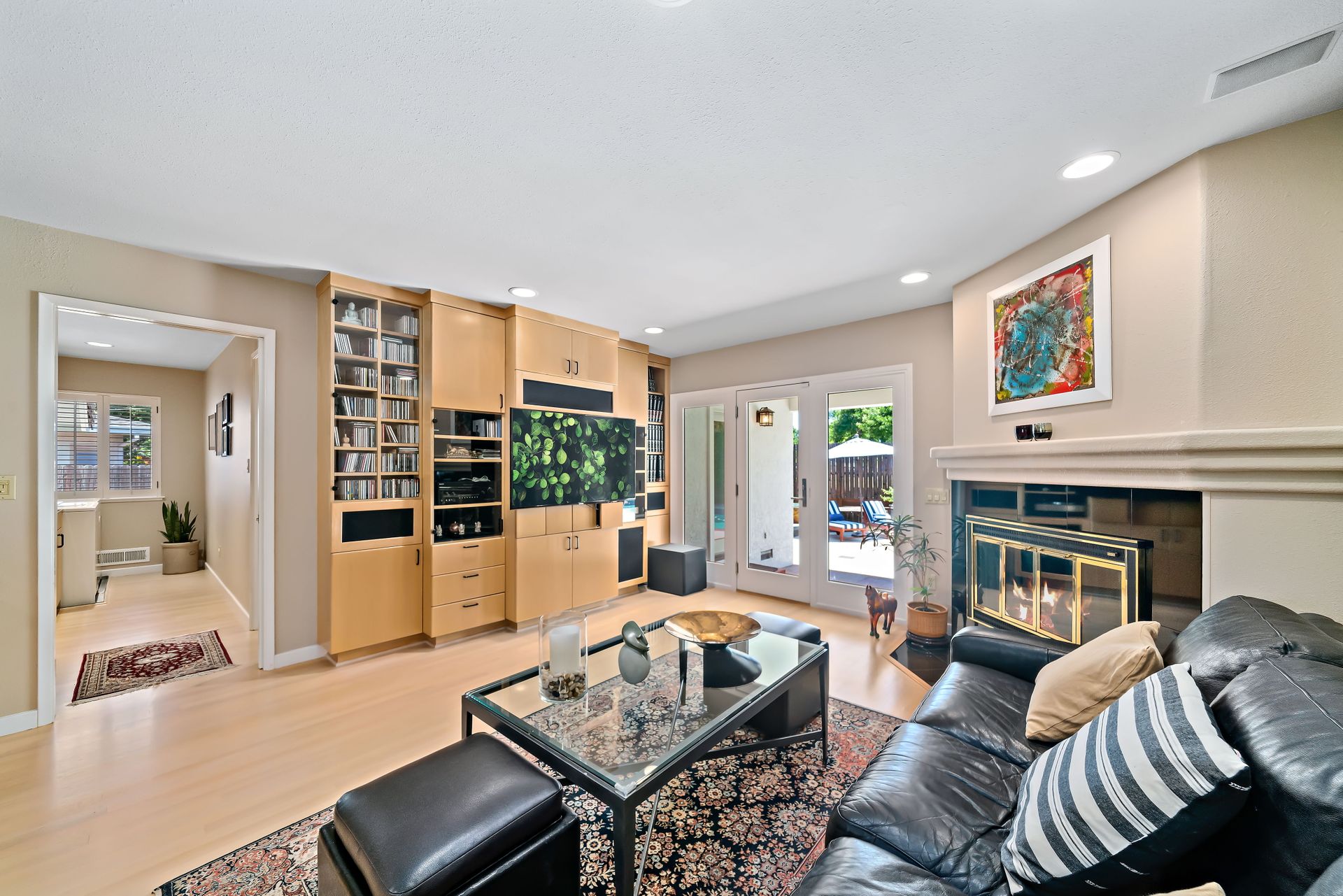 Beautiful one-story home with a sparkling pool in a quiet cul-de-sac in Walnut Grove Estates. With 4 beds, 3 baths and approximately 2,300 square feet on almost 1/3 acre, this home is tastefully updated and well-cared for by owners of 49 years. Welcoming home has a thick green lawn, elegant leaded glass doors and a freshly painted exterior. Lots of natural daylight and gorgeous red oak wood floors with a subtle inlay define living space. Lots of windows offer views to trees and a backyard. Updated kitchen shines; granite counters, maple cabinets, recessed ceiling, can lights, gas range. Connects to nook and family room, with graceful built-ins to enhance space. Backyard has a large, covered patio and a refreshing pool and spa for year-round enjoyment. Oversized lot has a park-like yard with a grass area bounded by mature trees, ideal for play. Room for RV, dog run, garden and more. Delightful primary bedroom has a fireplace and stylish doors with efficient closet organizers. Bathrooms have spa-like finishes; frameless shower glass, gorgeous shower surrounds, clean fixtures and cabinets with large tile or travertine. Energy-efficient upgrades include Anderson dual pane windows, a whole house fan, concrete tile roof and newer pool Pentair pump and heater and water heater. Near shopping, restaurants, schools and recreation. No HOA or Mello Roos. Come see!