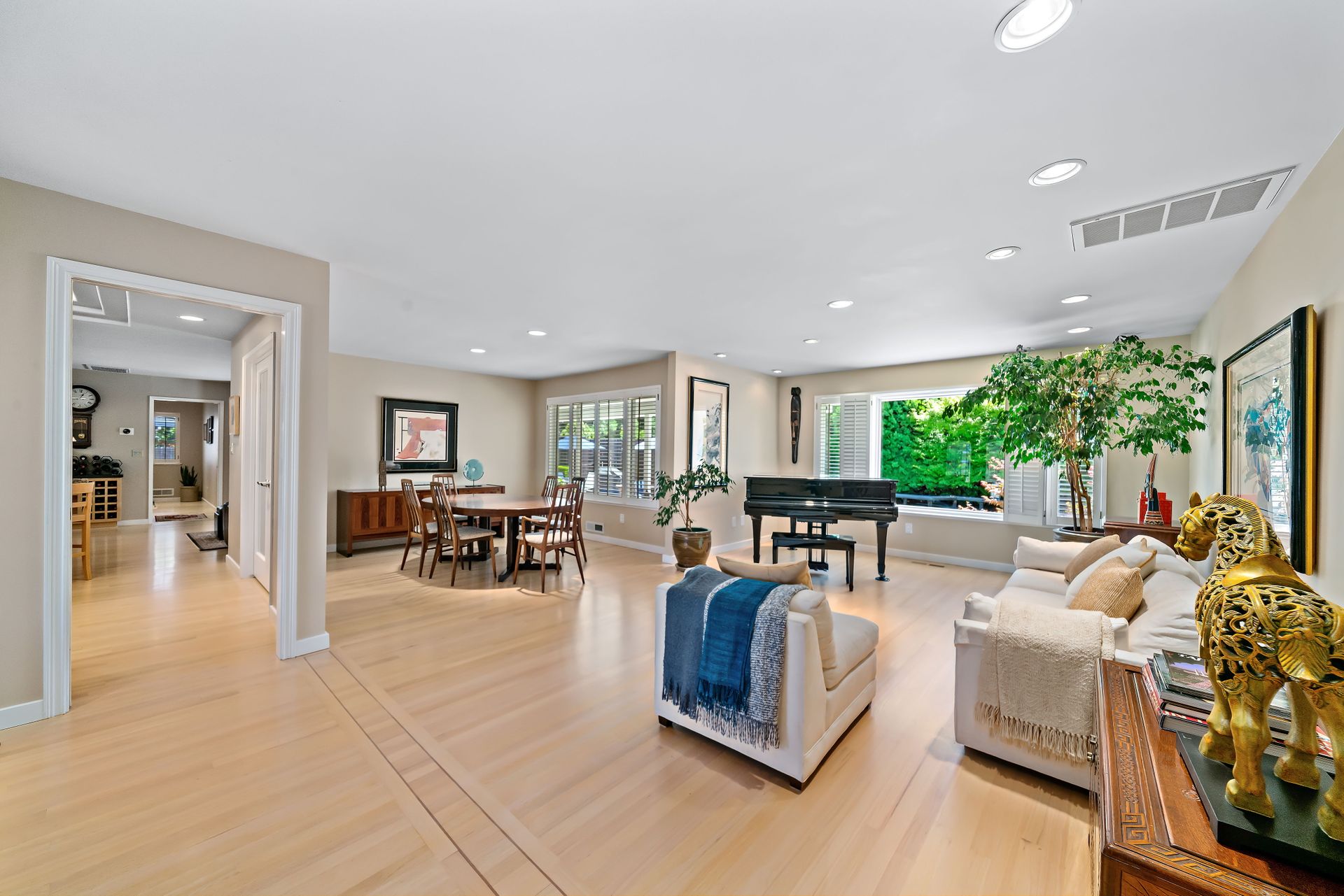 Beautiful one-story home with a sparkling pool in a quiet cul-de-sac in Walnut Grove Estates. With 4 beds, 3 baths and approximately 2,300 square feet on almost 1/3 acre, this home is tastefully updated and well-cared for by owners of 49 years. Welcoming home has a thick green lawn, elegant leaded glass doors and a freshly painted exterior. Lots of natural daylight and gorgeous red oak wood floors with a subtle inlay define living space. Lots of windows offer views to trees and a backyard. Updated kitchen shines; granite counters, maple cabinets, recessed ceiling, can lights, gas range. Connects to nook and family room, with graceful built-ins to enhance space. Backyard has a large, covered patio and a refreshing pool and spa for year-round enjoyment. Oversized lot has a park-like yard with a grass area bounded by mature trees, ideal for play. Room for RV, dog run, garden and more. Delightful primary bedroom has a fireplace and stylish doors with efficient closet organizers. Bathrooms have spa-like finishes; frameless shower glass, gorgeous shower surrounds, clean fixtures and cabinets with large tile or travertine. Energy-efficient upgrades include Anderson dual pane windows, a whole house fan, concrete tile roof and newer pool Pentair pump and heater and water heater. Near shopping, restaurants, schools and recreation. No HOA or Mello Roos. Come see!