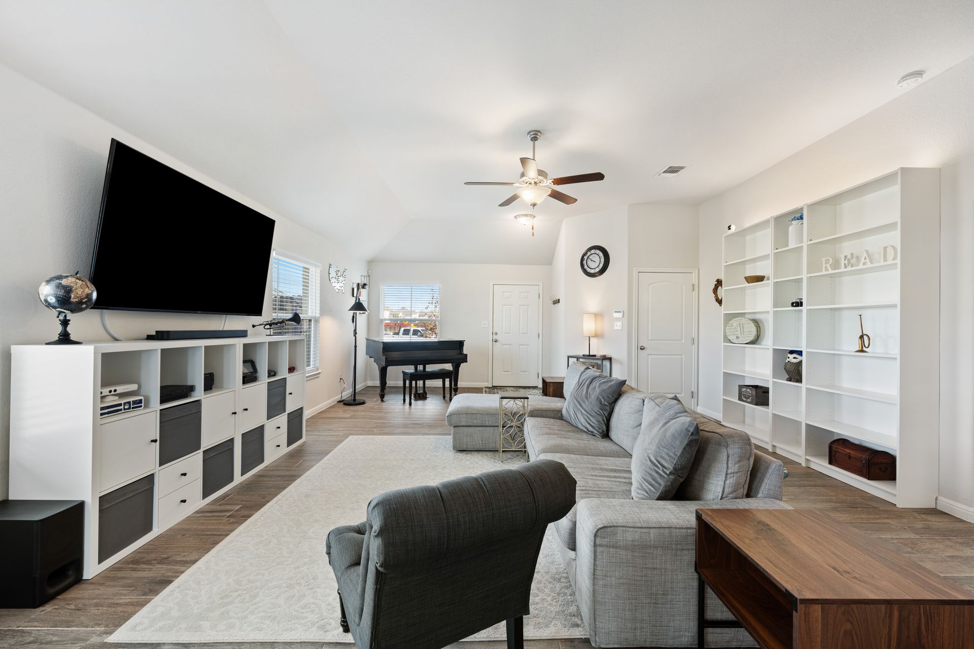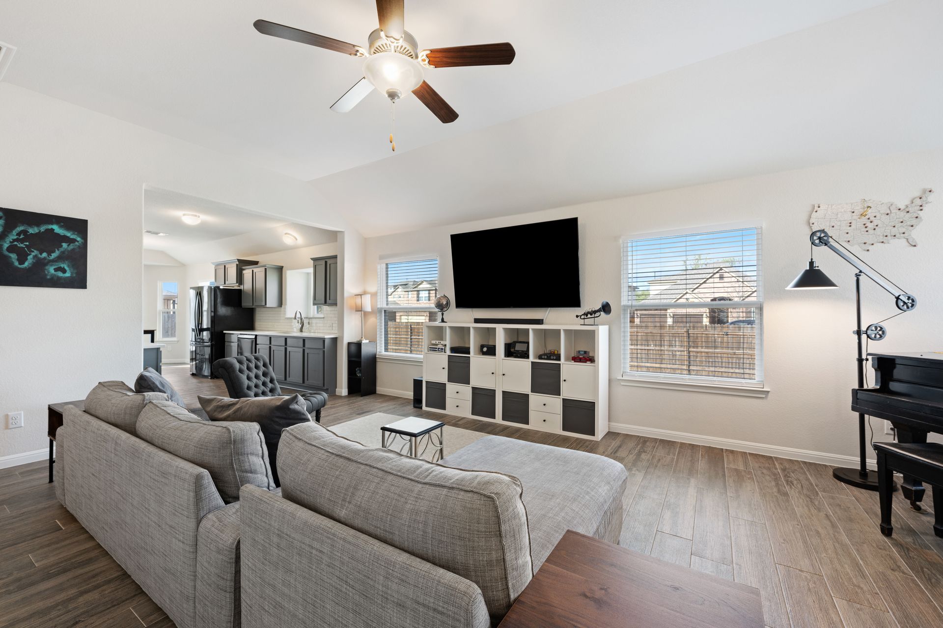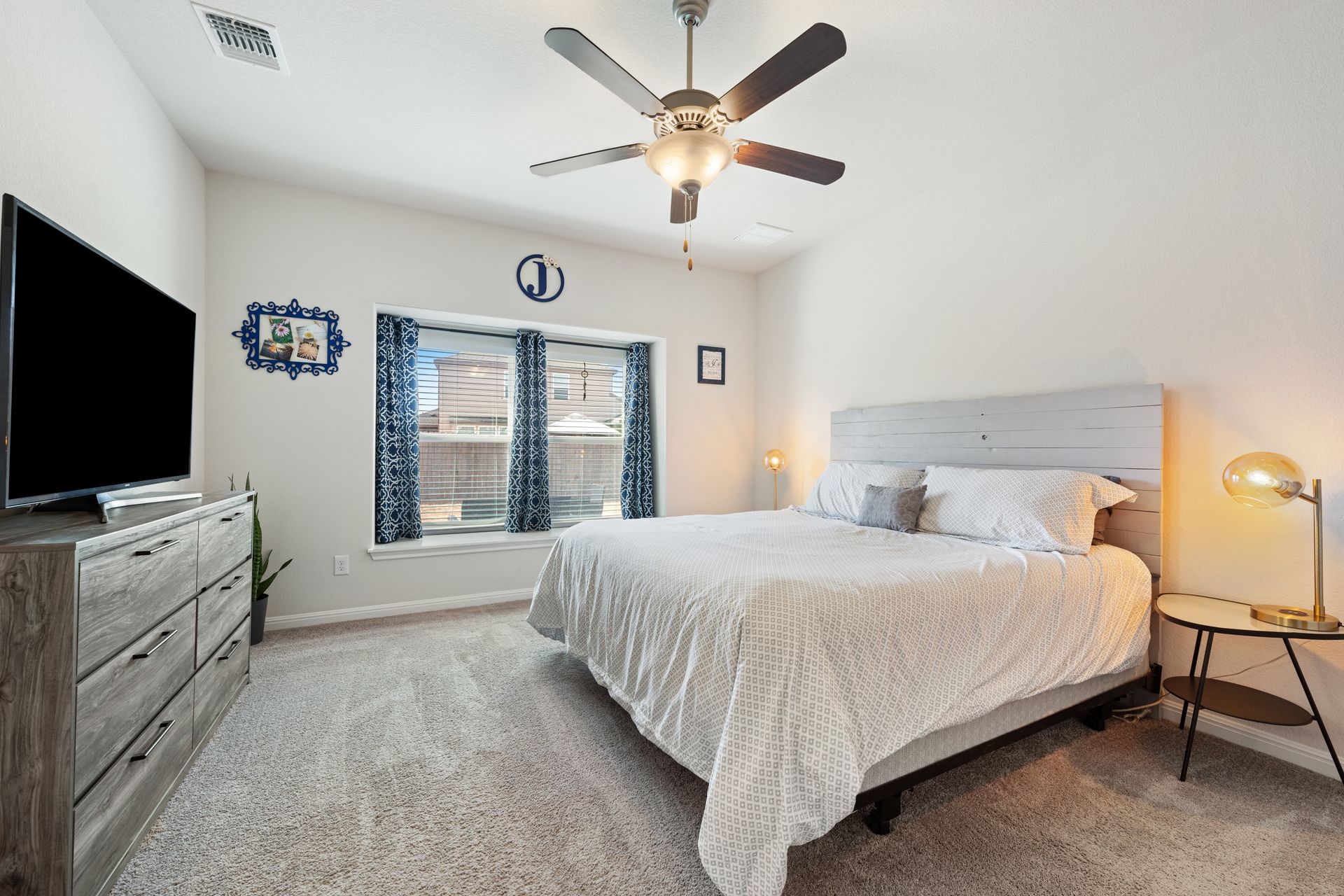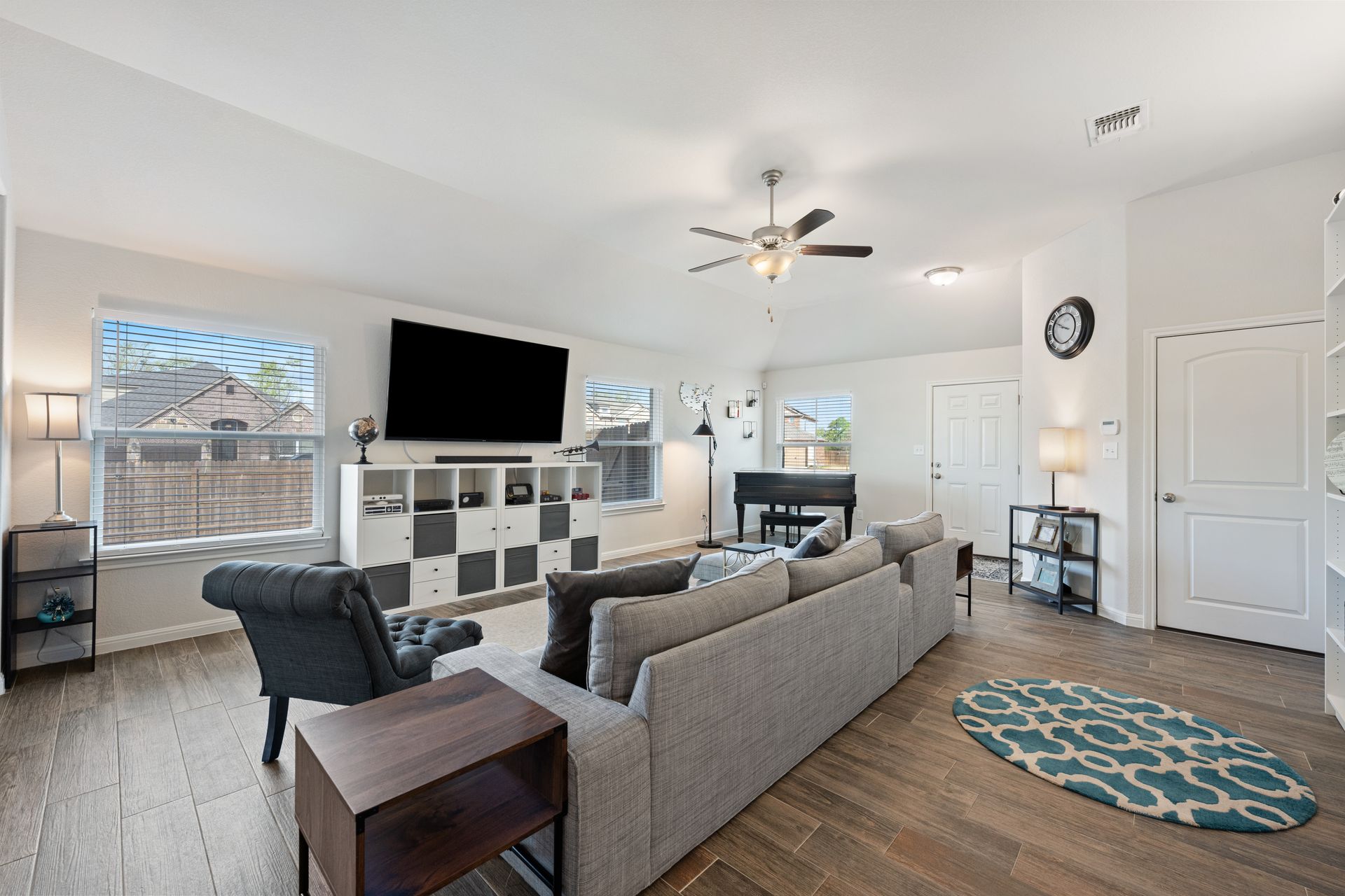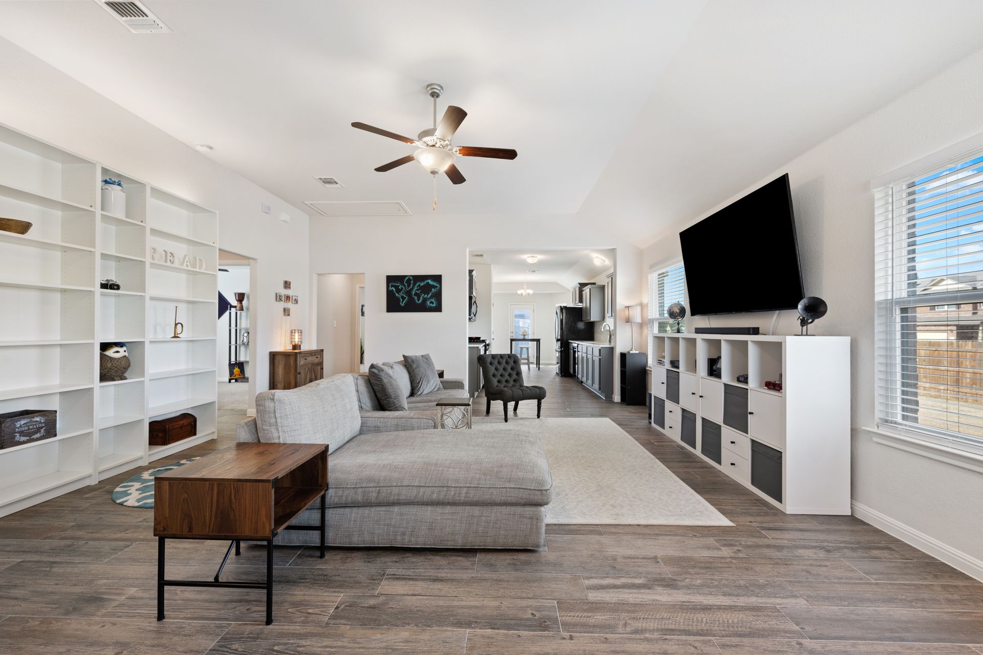 Welcome home to Sabbia Dr. This house has a great open concept. The living room opens right into the kitchen and dining area. What a great floor plan for entertaining family and friends. The living room is spacious and has beautiful white cabinets accenting the room. A light wood tile is in all of the living areas. The kitchen is adorned with trending grey cabinets, neutral white counters, and gleaming subway tile. The colors in this house are beautiful and timeless. The dining area features a great area for a cute coffee nook or more and is adorned with a bay window looking onto the private Texas sized backyard! At the back of the house is the primary suite. This bedroom is huge with plenty of space to relax and continue to enjoy this yard from the back window seat. The guest bedrooms are at the front of the house in their own little guest area with the guest bathroom in between. Enjoy privacy with this great mother-in-law floor plan. All of this and more awaits you on this oversized corner lot. Imagine coming home to this! Come take a look before it's gone!