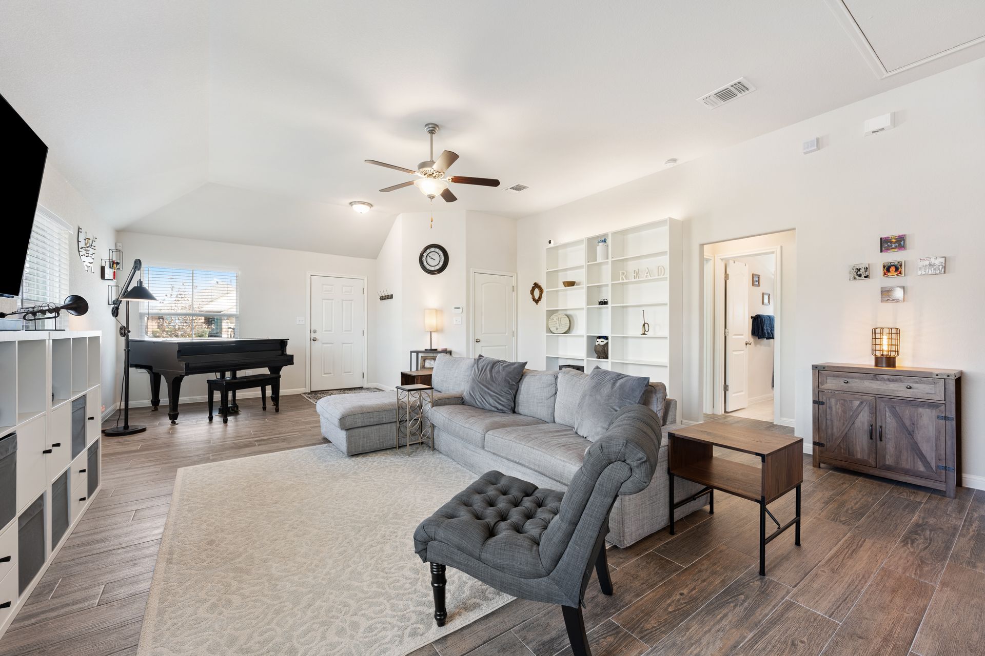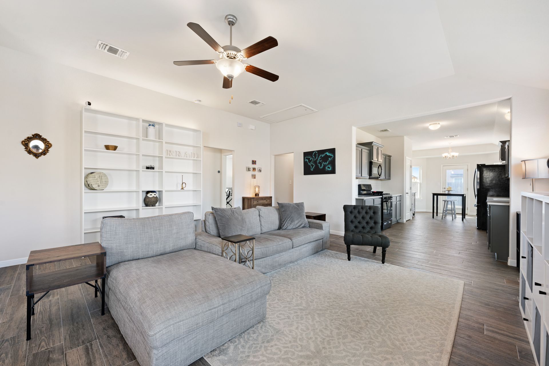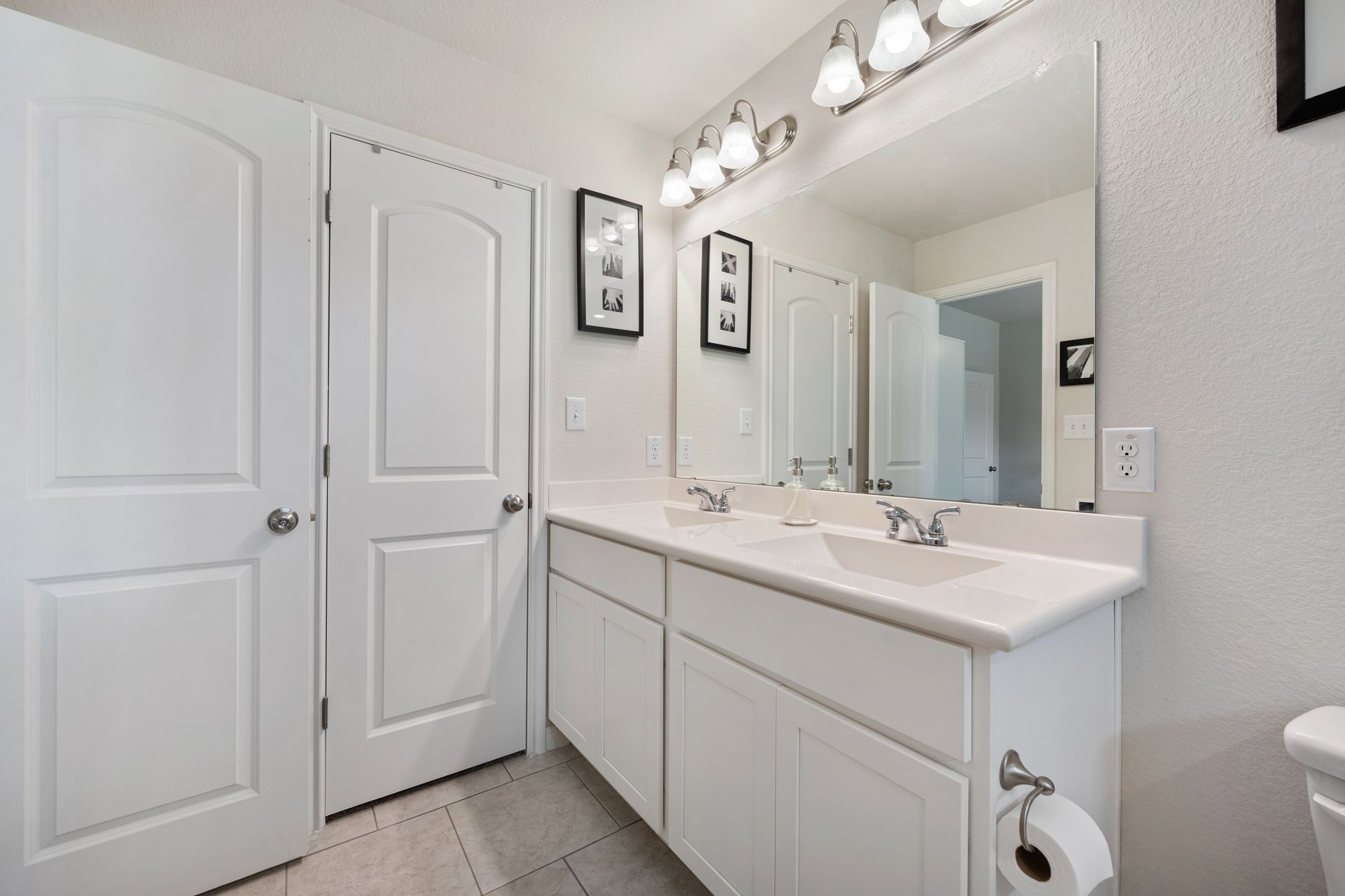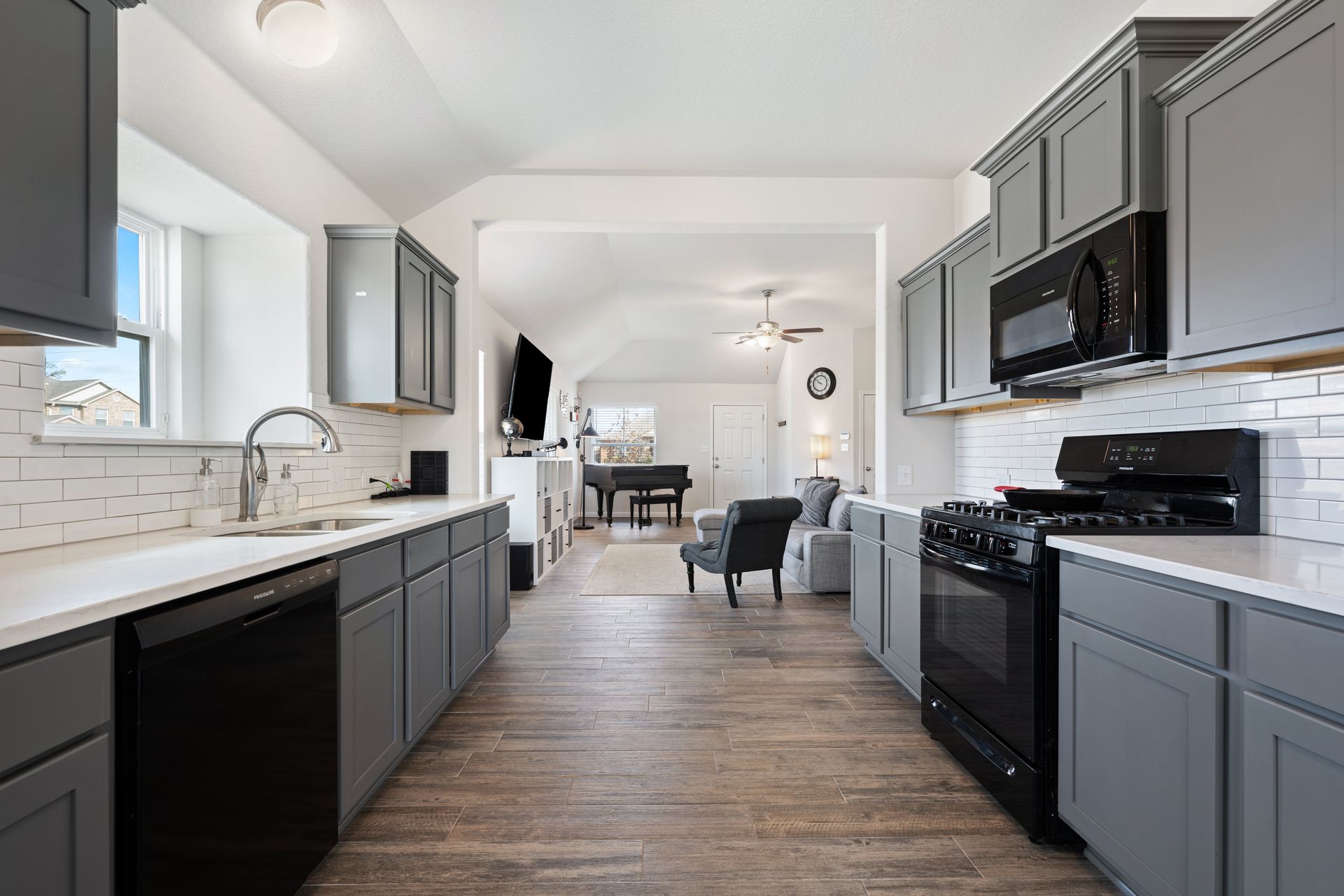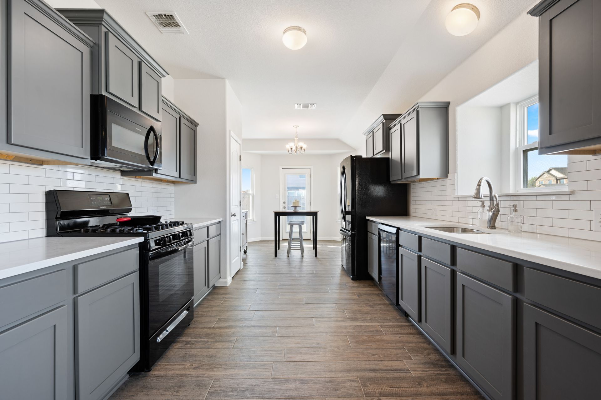 Welcome home to Sabbia Dr. This house has a great open concept. The living room opens right into the kitchen and dining area. What a great floor plan for entertaining family and friends. The living room is spacious and has beautiful white cabinets accenting the room. A light wood tile is in all of the living areas. The kitchen is adorned with trending grey cabinets, neutral white counters, and gleaming subway tile. The colors in this house are beautiful and timeless. The dining area features a great area for a cute coffee nook or more and is adorned with a bay window looking onto the private Texas sized backyard! At the back of the house is the primary suite. This bedroom is huge with plenty of space to relax and continue to enjoy this yard from the back window seat. The guest bedrooms are at the front of the house in their own little guest area with the guest bathroom in between. Enjoy privacy with this great mother-in-law floor plan. All of this and more awaits you on this oversized corner lot. Imagine coming home to this! Come take a look before it's gone!