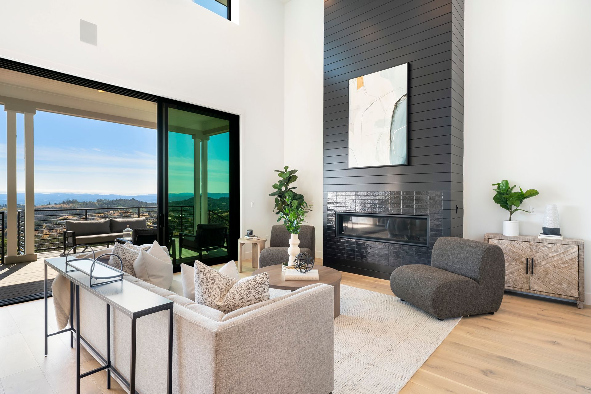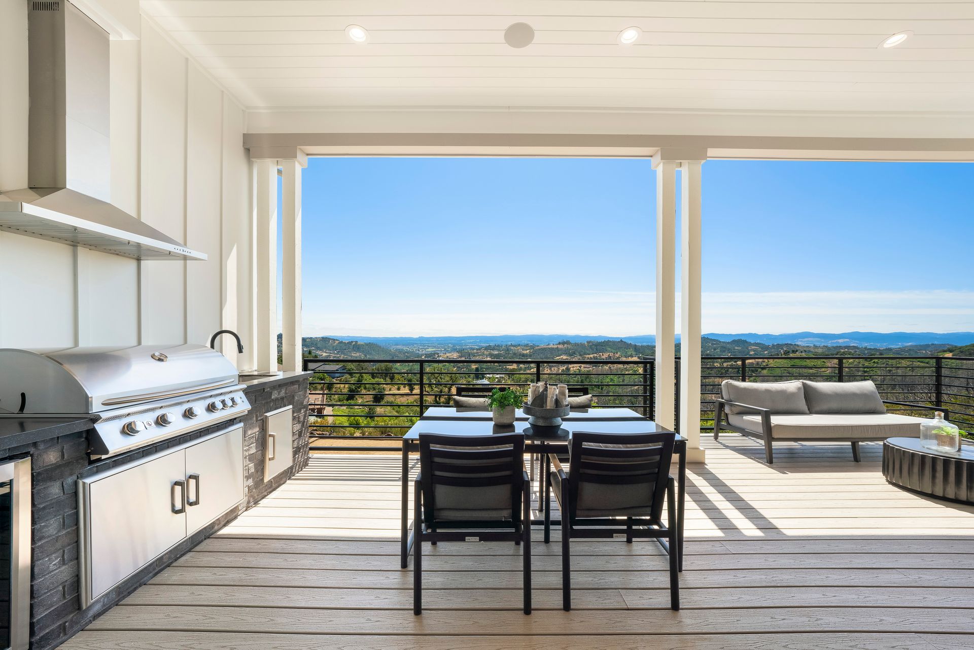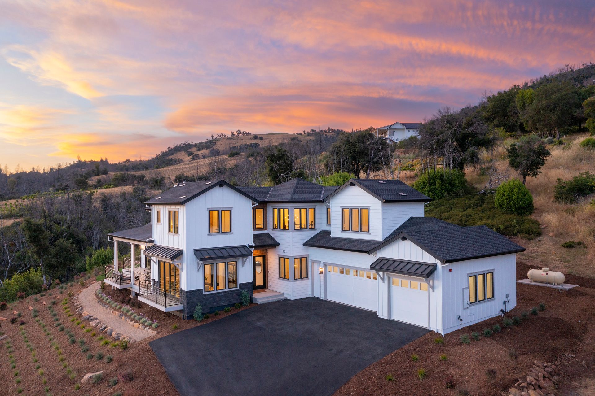 Discover this extraordinary newly constructed custom modern farmhouse located in the heart of Sonoma County with 3,300+/- square feet of living space, set on 1.40 tranquil acres and has breathtaking views of the hills and mountains beyond. You are sure to be impressed by the flawless architectural integrity and excellent craftsmanship. This beautiful home has 3 bedrooms plus an office, 3 full baths and 1 half bath, and is elegantly appointed with extensive use of wide plank wood flooring throughout most of the home. An open floor plan features the great room with a linear gas fireplace set in a floor to ceiling accent wall, expansive 19’ ceiling, and 20’ wide by 10’ tall stacking sliders leading to the covered view deck with an outdoor kitchen. The dining area opens to an exquisite gourmet kitchen with a large center island and high end appliances. The primary bedroom suite on the main level has direct access to the deck which takes full advantage of the stunning views. A light filled home office on the main level enjoys expansive views. The upper level is complete with a loft/game room for entertainment. The upper level also includes two additional bedrooms (one en-suite) with wonderful views. Step outside to enjoy a fun game of bocce ball, entertain guests at the outdoor kitchen, and relax while taking in the views.