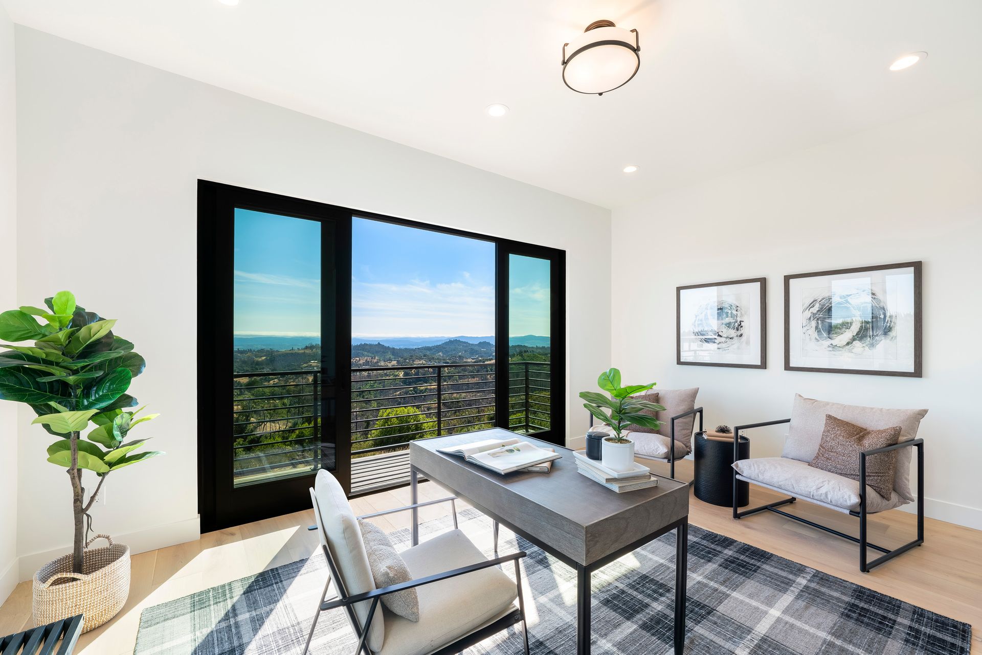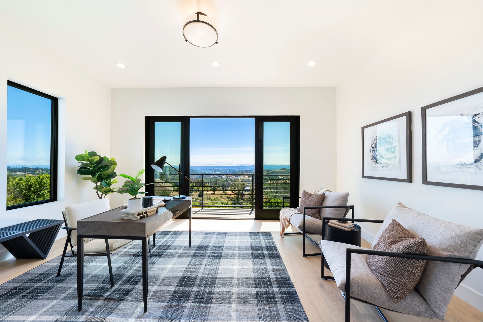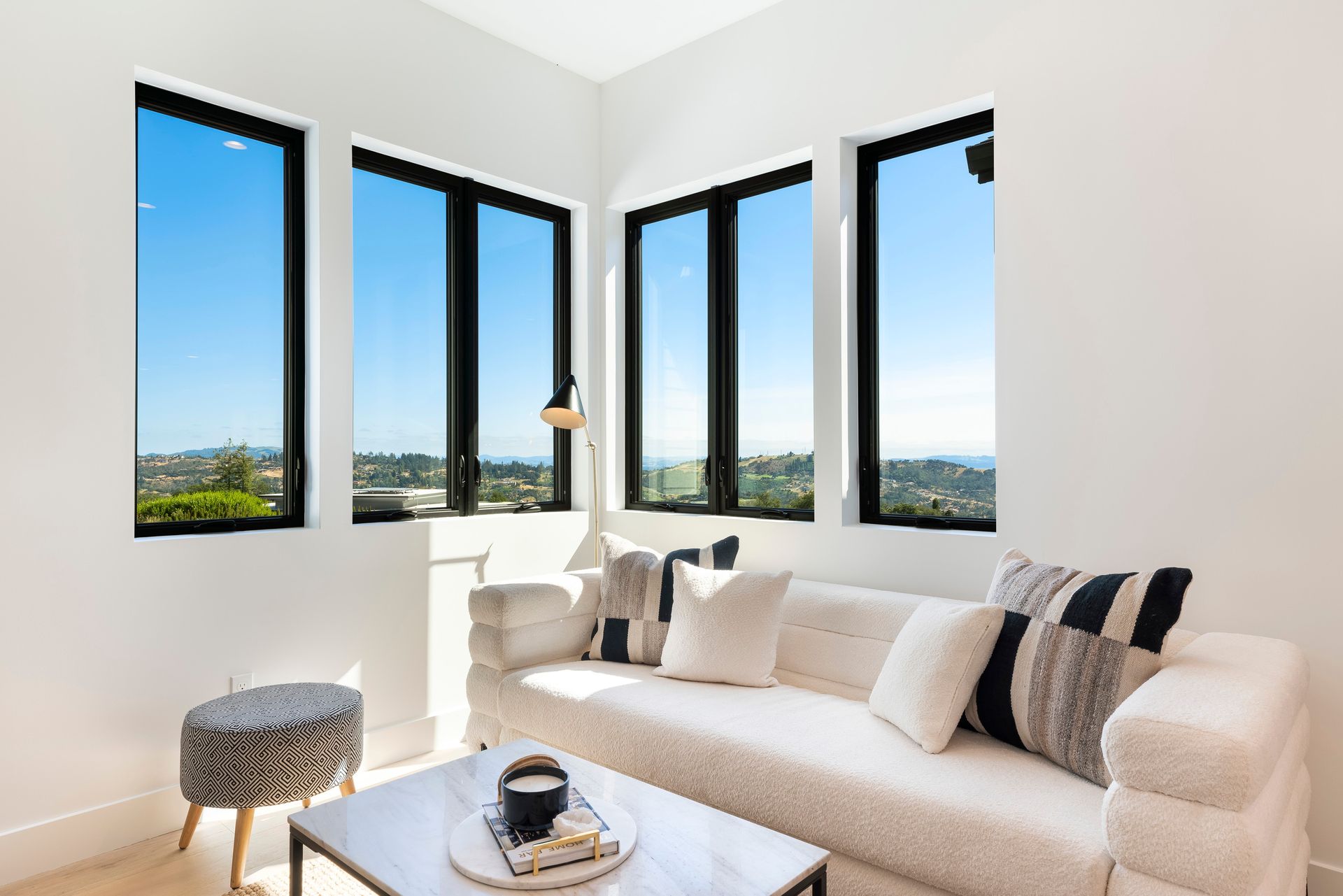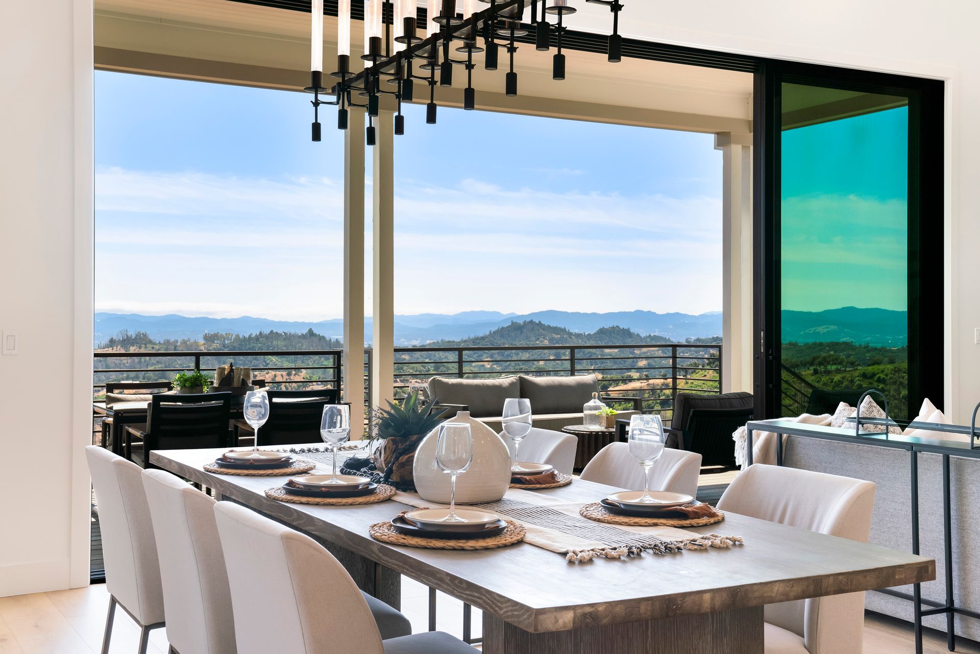 Discover this extraordinary newly constructed custom modern farmhouse located in the heart of Sonoma County with 3,300+/- square feet of living space, set on 1.40 tranquil acres and has breathtaking views of the hills and mountains beyond. You are sure to be impressed by the flawless architectural integrity and excellent craftsmanship. This beautiful home has 3 bedrooms plus an office, 3 full baths and 1 half bath, and is elegantly appointed with extensive use of wide plank wood flooring throughout most of the home. An open floor plan features the great room with a linear gas fireplace set in a floor to ceiling accent wall, expansive 19’ ceiling, and 20’ wide by 10’ tall stacking sliders leading to the covered view deck with an outdoor kitchen. The dining area opens to an exquisite gourmet kitchen with a large center island and high end appliances. The primary bedroom suite on the main level has direct access to the deck which takes full advantage of the stunning views. A light filled home office on the main level enjoys expansive views. The upper level is complete with a loft/game room for entertainment. The upper level also includes two additional bedrooms (one en-suite) with wonderful views. Step outside to enjoy a fun game of bocce ball, entertain guests at the outdoor kitchen, and relax while taking in the views.