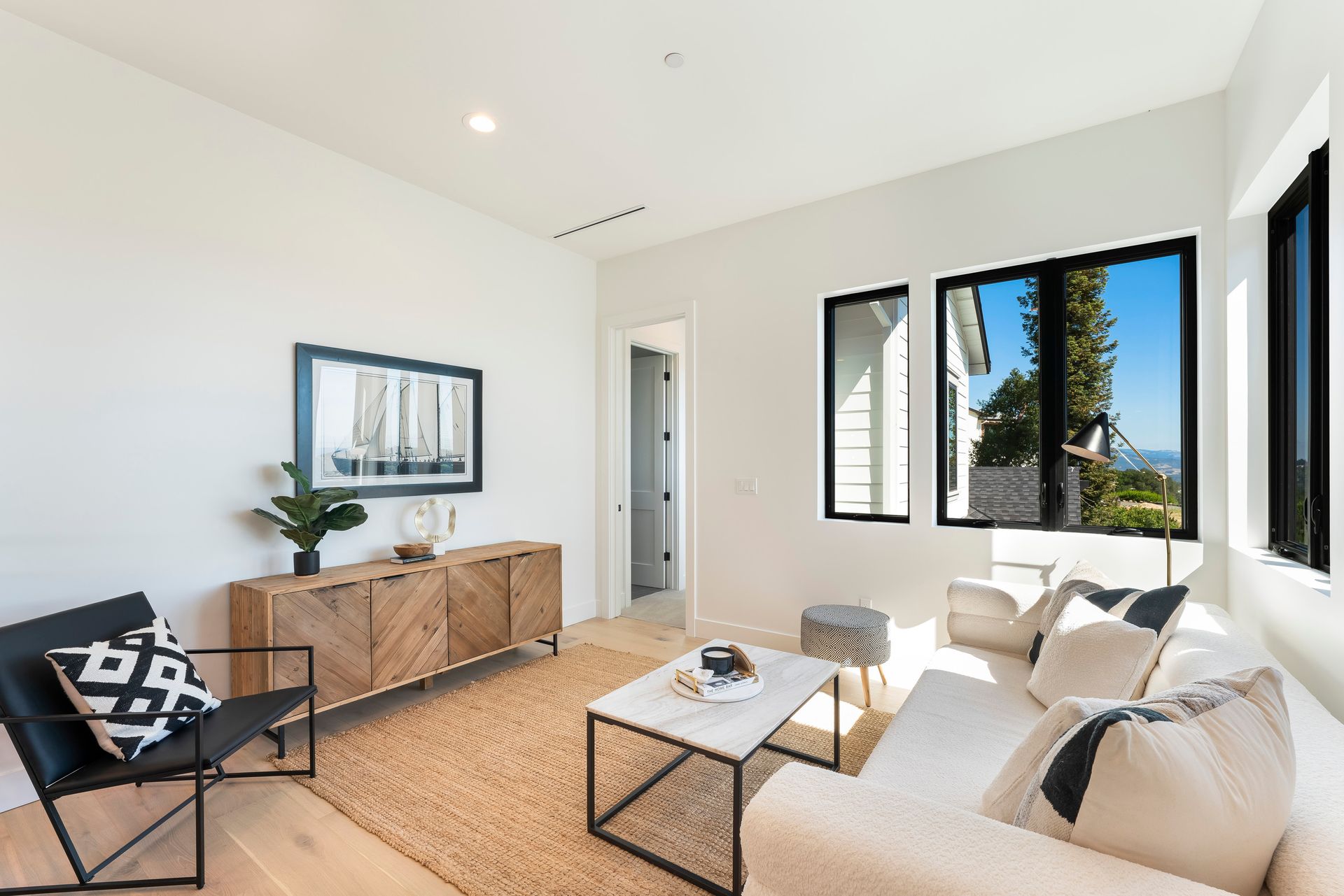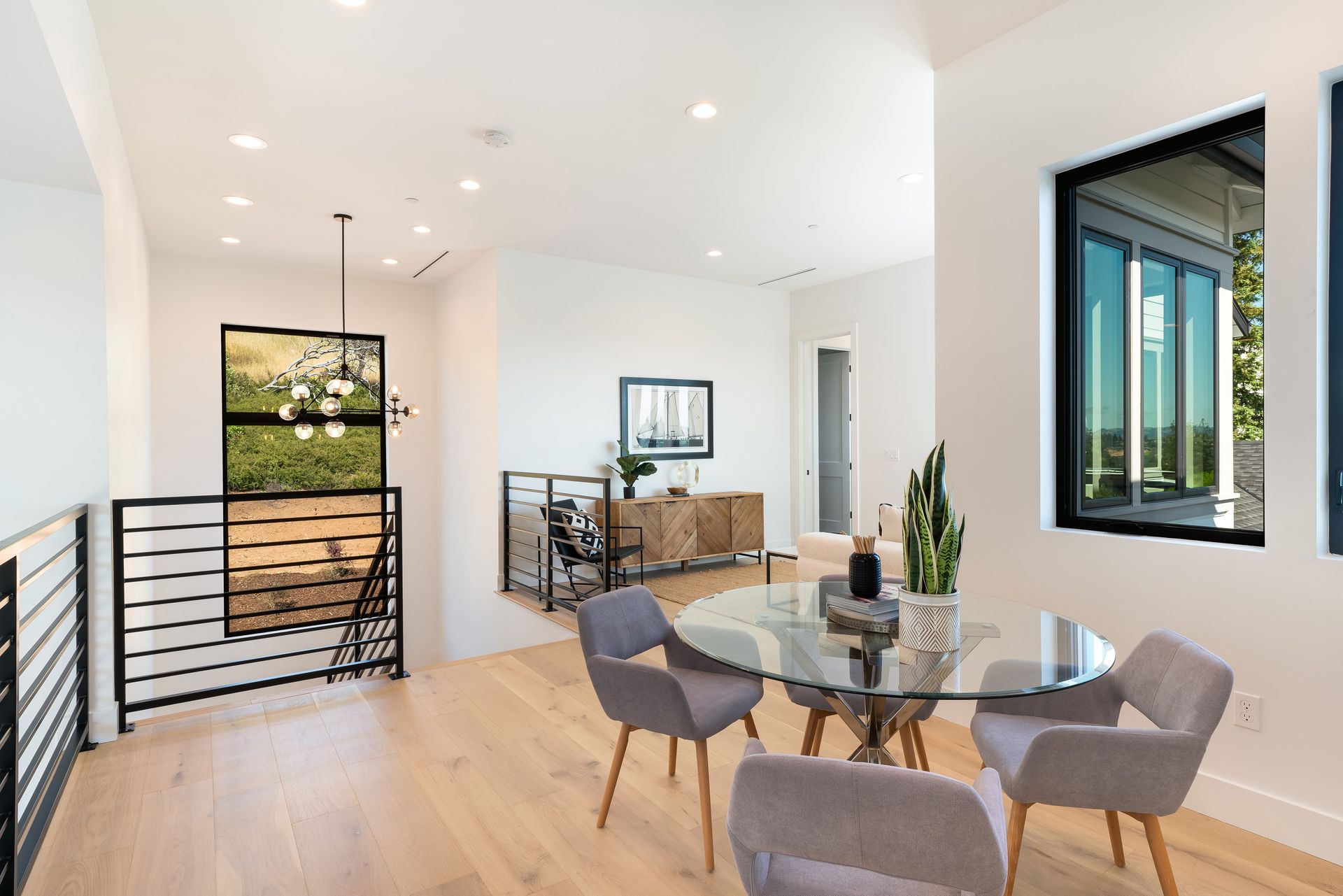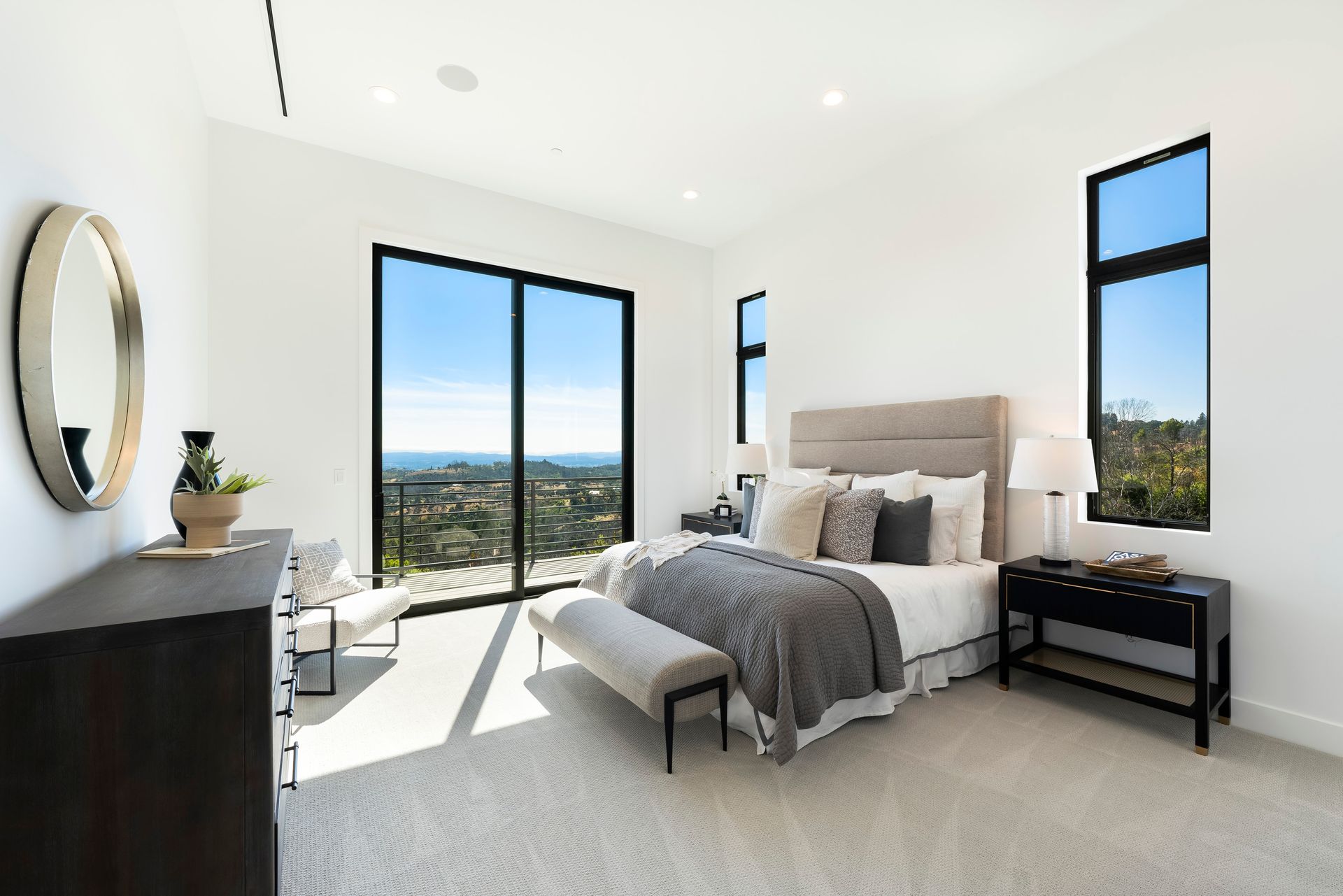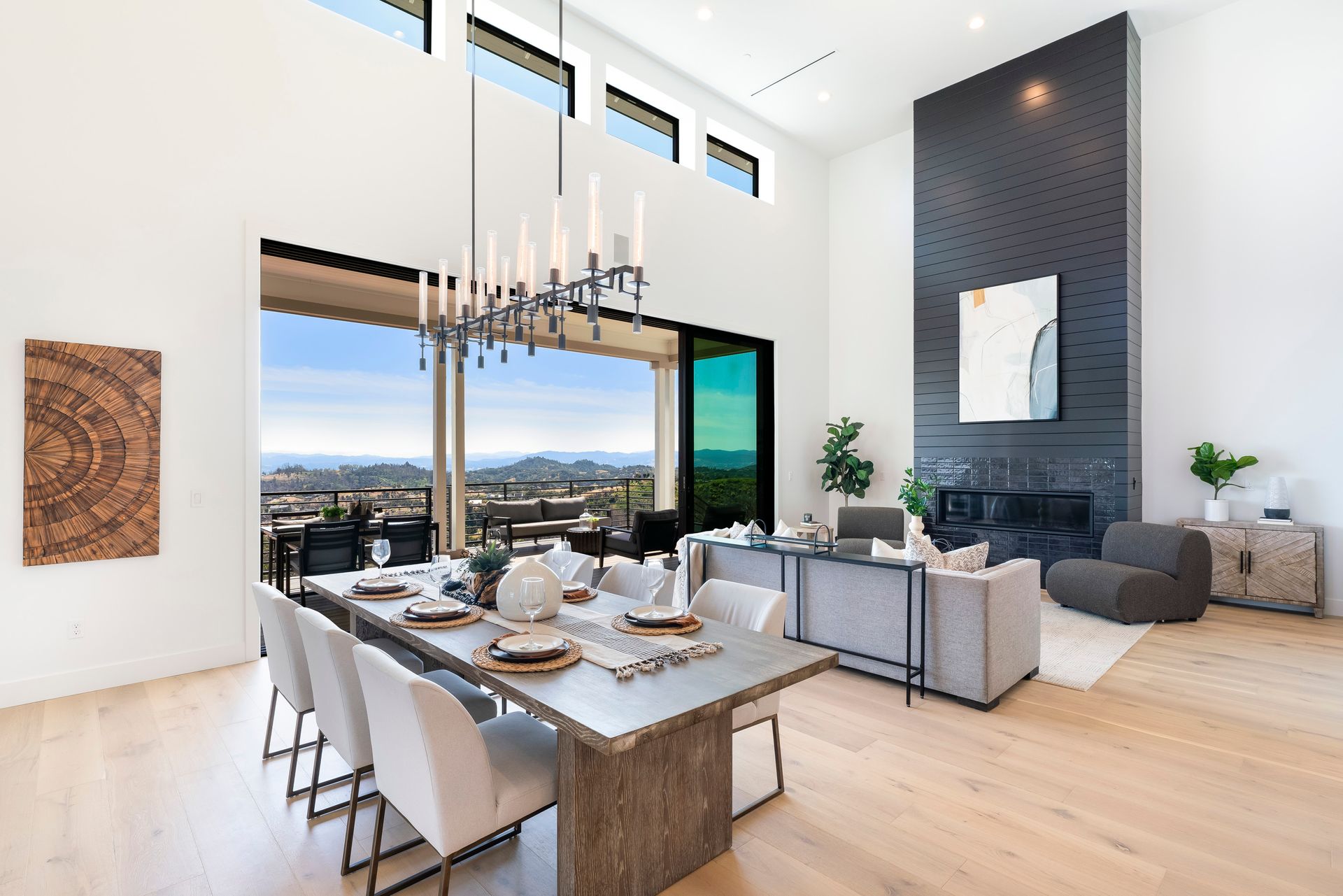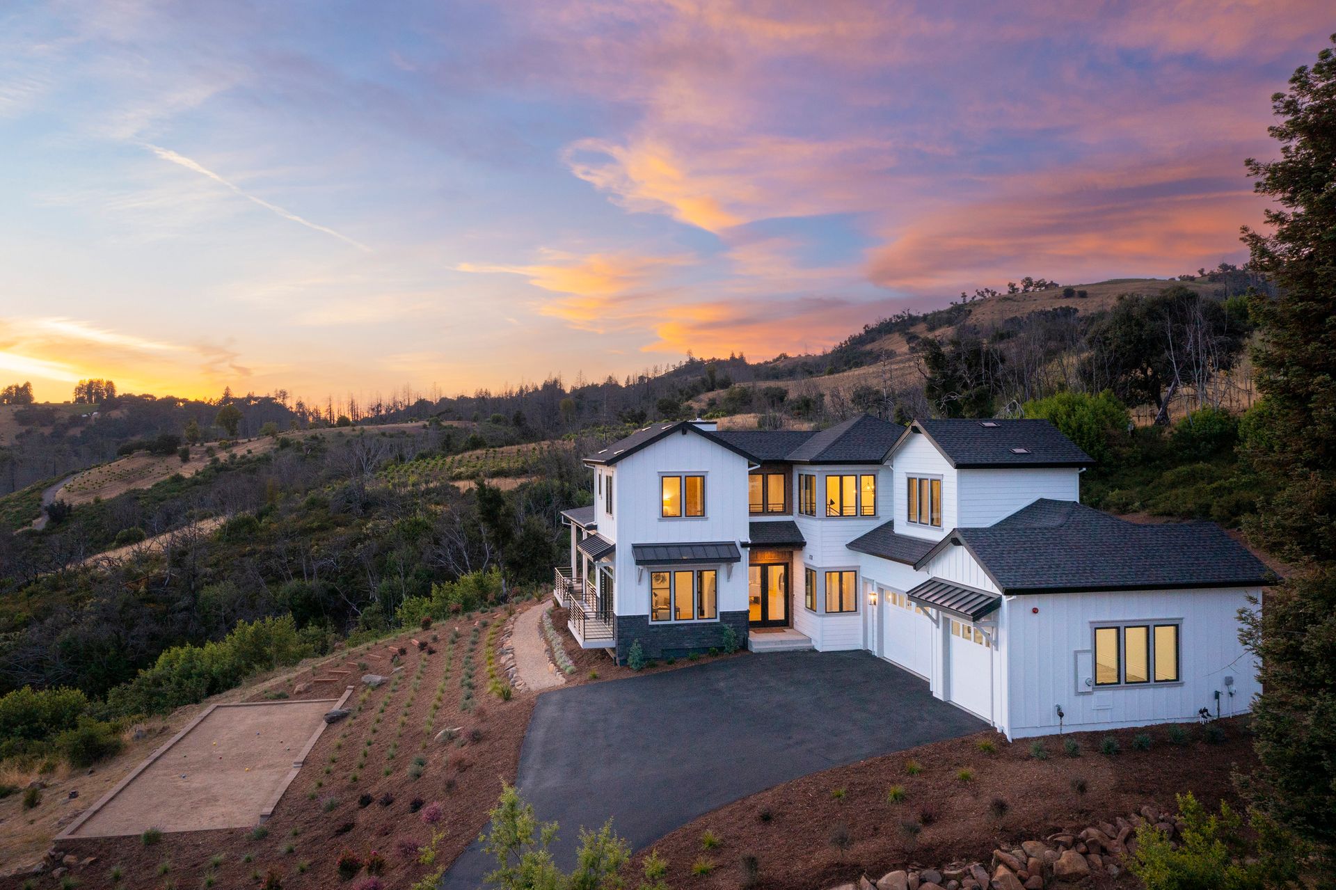 Discover this extraordinary newly constructed custom modern farmhouse located in the heart of Sonoma County with 3,300+/- square feet of living space, set on 1.40 tranquil acres and has breathtaking views of the hills and mountains beyond. You are sure to be impressed by the flawless architectural integrity and excellent craftsmanship. This beautiful home has 3 bedrooms plus an office, 3 full baths and 1 half bath, and is elegantly appointed with extensive use of wide plank wood flooring throughout most of the home. An open floor plan features the great room with a linear gas fireplace set in a floor to ceiling accent wall, expansive 19’ ceiling, and 20’ wide by 10’ tall stacking sliders leading to the covered view deck with an outdoor kitchen. The dining area opens to an exquisite gourmet kitchen with a large center island and high end appliances. The primary bedroom suite on the main level has direct access to the deck which takes full advantage of the stunning views. A light filled home office on the main level enjoys expansive views. The upper level is complete with a loft/game room for entertainment. The upper level also includes two additional bedrooms (one en-suite) with wonderful views. Step outside to enjoy a fun game of bocce ball, entertain guests at the outdoor kitchen, and relax while taking in the views.