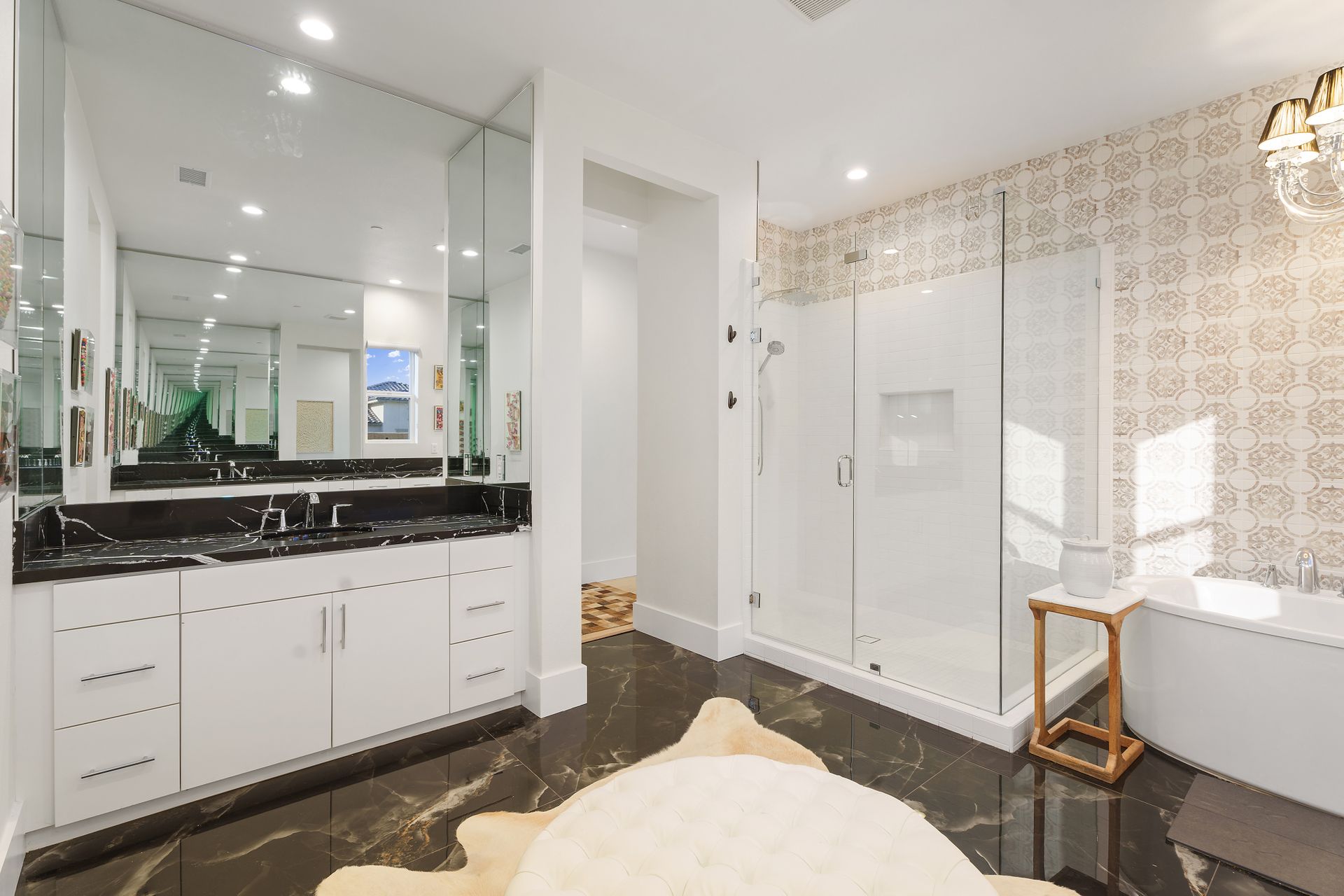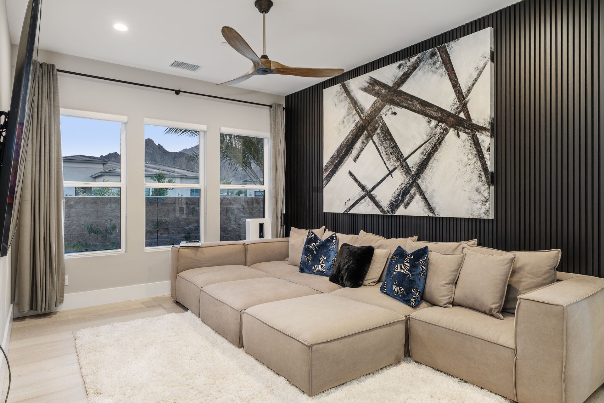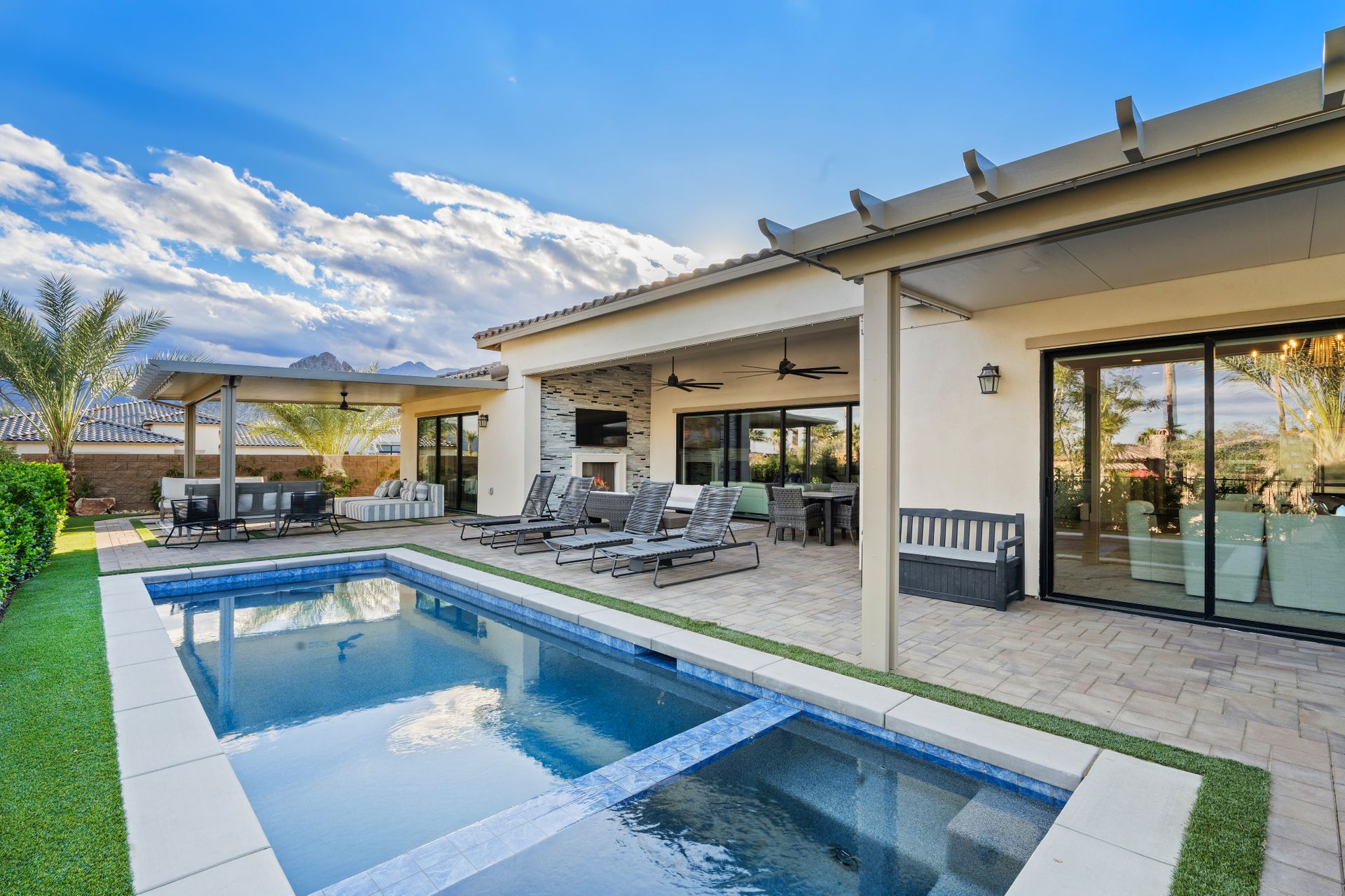 New, extensively upgraded build by Toll Bros, America's Luxury Home Builder. The interior of this designer-appointed home captivates with four spacious bedroom suites, a large glass-walled office and a great room with soaring 12-foot ceilings. The flex room with a barn door is ideal for watching TV without disturbance from the rest of the house. The expansive bar serves as a social hub, while corner bi-fold doors seamlessly open to blend indoor and outdoor living. The primary bedroom, with a luxury ensuite bathroom and custom walk-in closet, offers a tranquil retreat with large glass sliders connecting directly to the yard. The backyard features a beautiful pool, two solid pergolas, luxury paving and a deluxe firepit, all overlooking a tranquil waterfall and babbling brook.