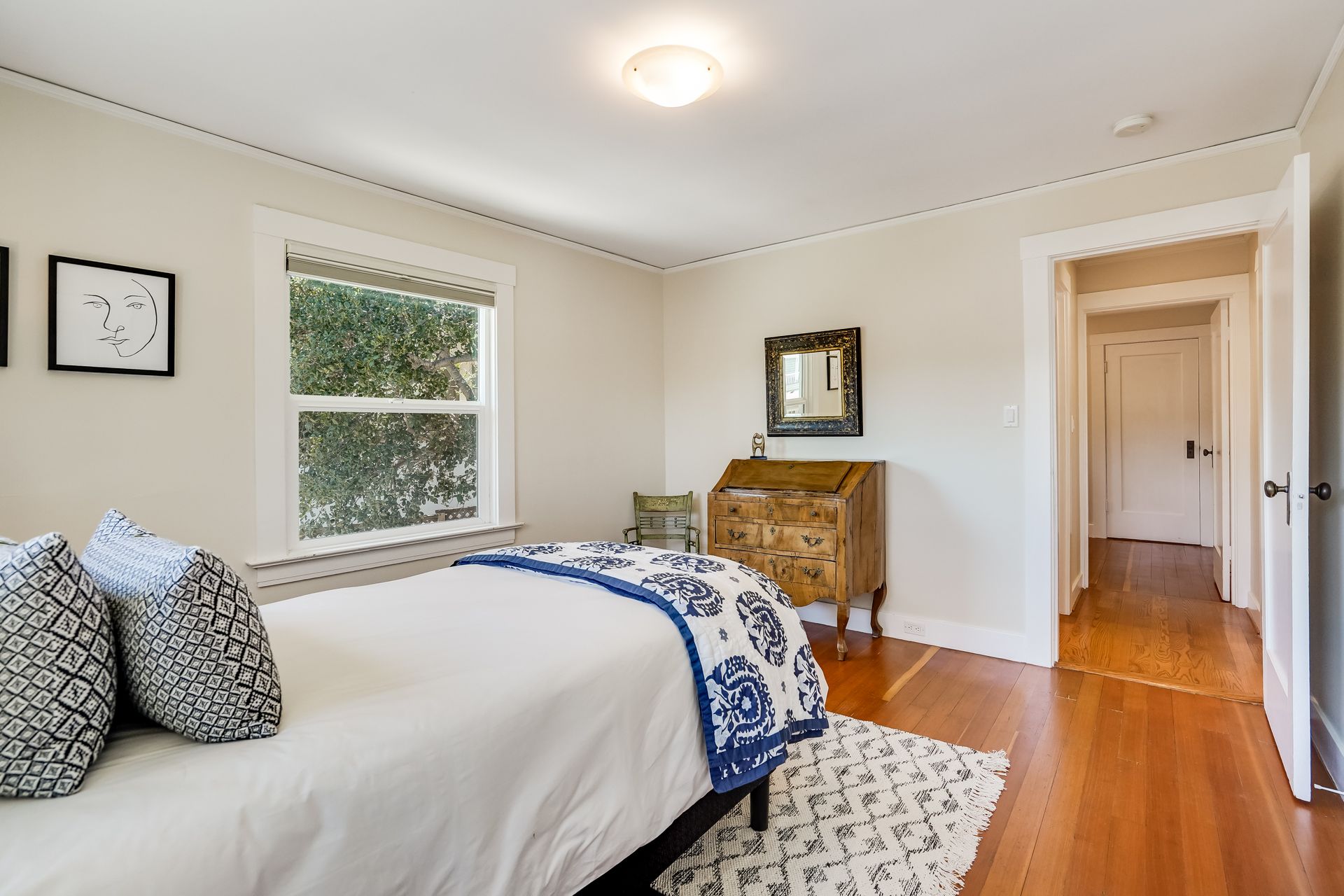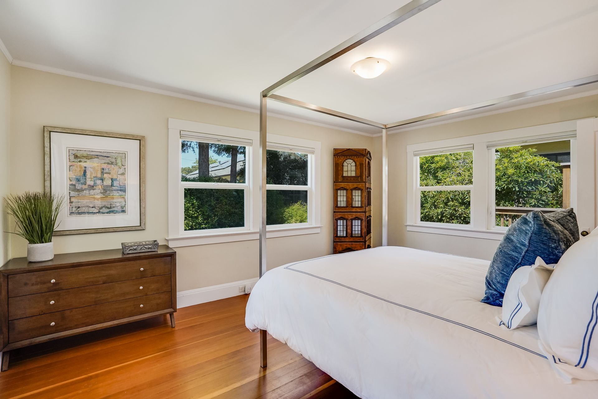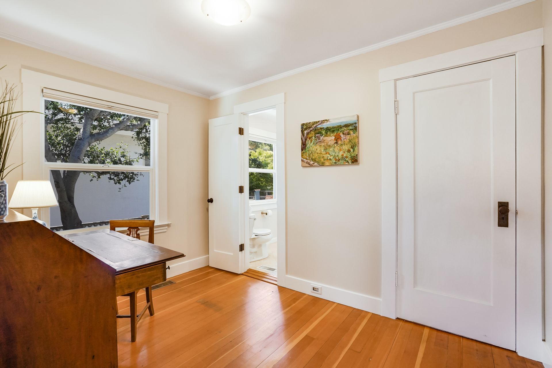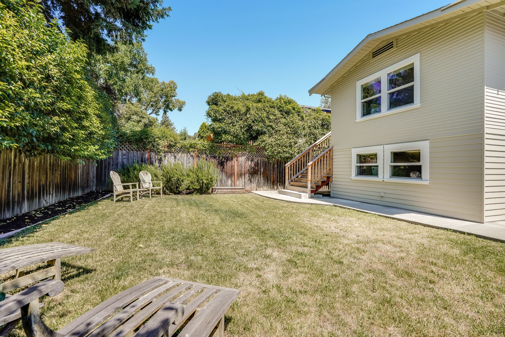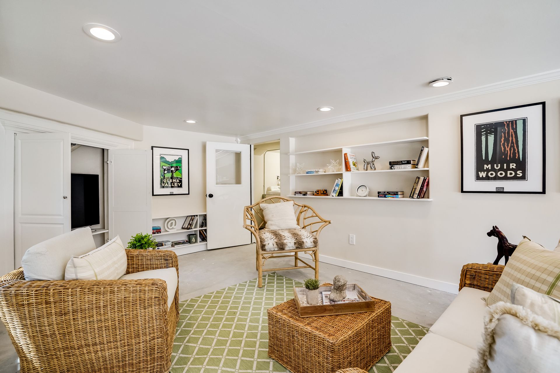 This adorable 1924 San Anselmo vintage cottage has great curb appeal, modern functionality, a large, flat backyard and is less than half a block to downtown! The main floor features approximately 1,000 square-feet of comfortable space with a sunny updated kitchen and a living and dining room area. Highlights of the main level boast a cozy fireplace, a primary bedroom, a small office or nursery (with a closet), a larger bedroom with a walk-in closet and two full bathrooms. Enjoy a master bath that was recently remodeled and the entire exterior has been painted. Downstairs is a 580 sq feet finished garage level with an oversized home office, a large playroom, a laundry room and an expansive storage area with numerous built-ins. Entertain on the spacious front porch and in the private level backyard with a paved patio area for BBQing and outdoor dining. A bonus to the home is the expanded driveway with parking for up to three cars. Ideally located, you are just moments away from hiking and biking trails, downtown San Anselmo and top-rated Ross Valley Schools! This home is move-in ready and nestled on one of San Anselmo's most desirable streets.