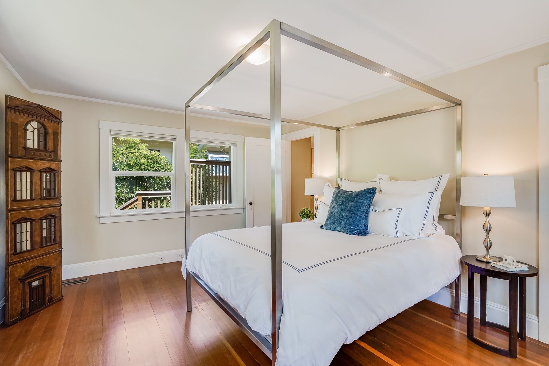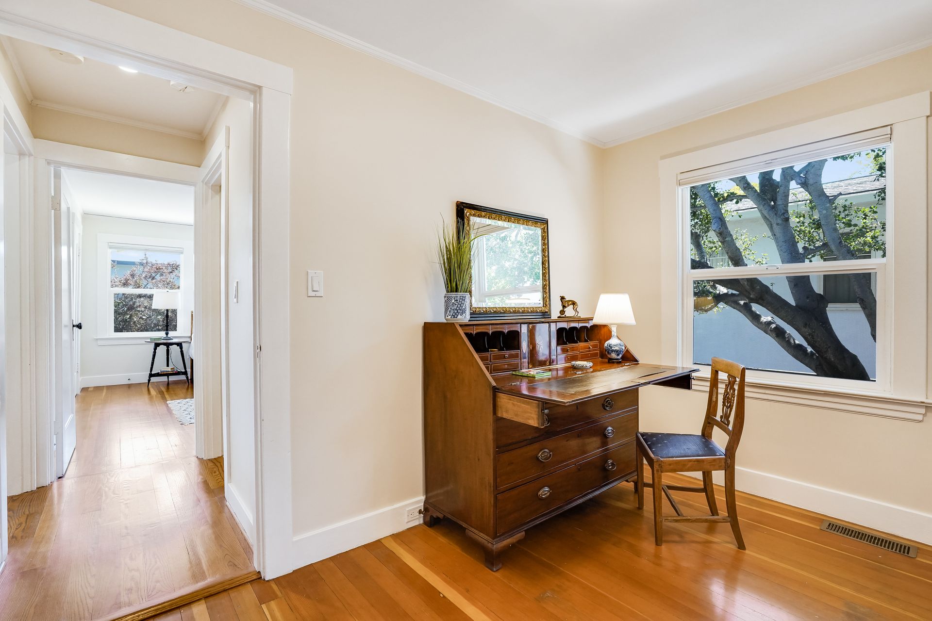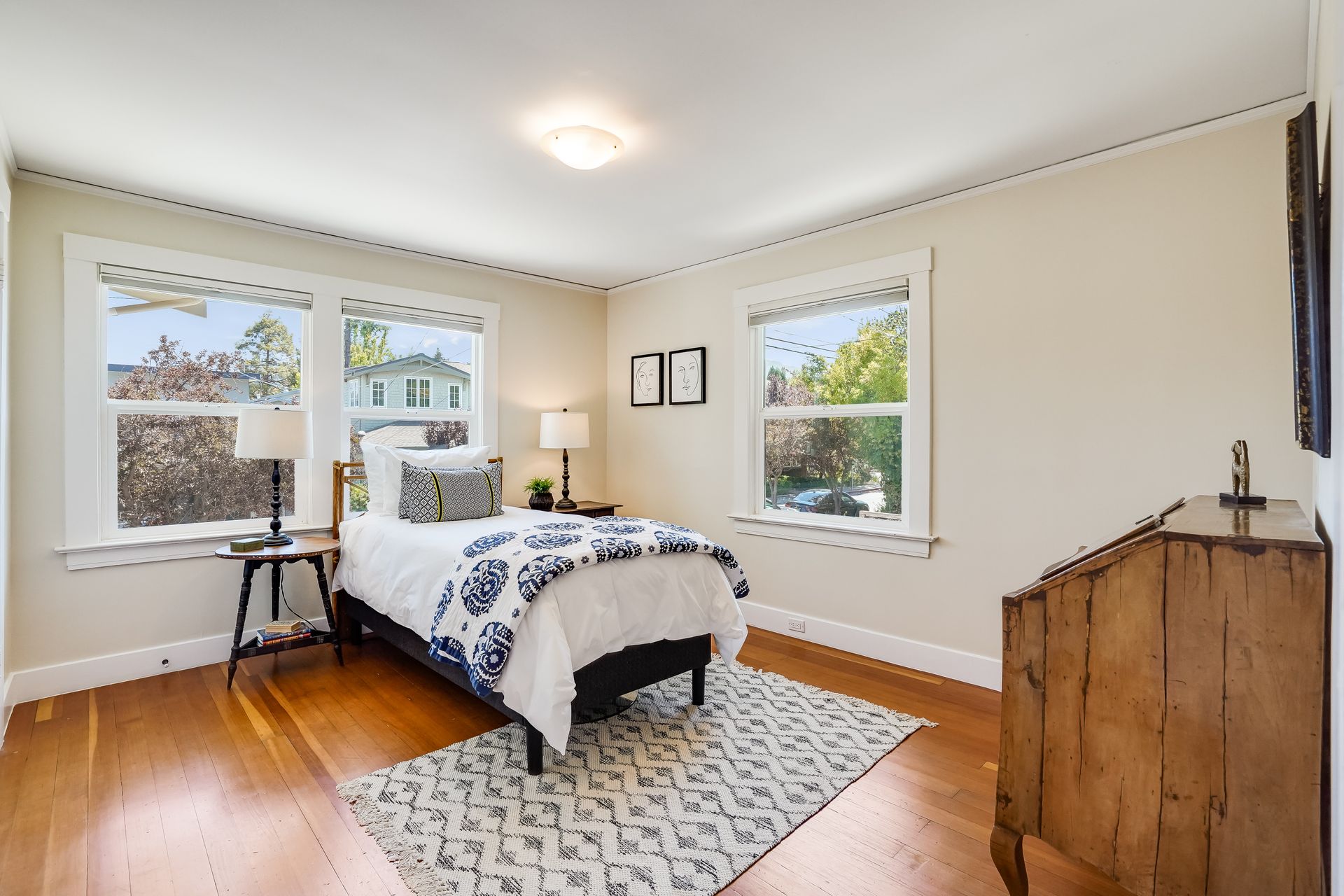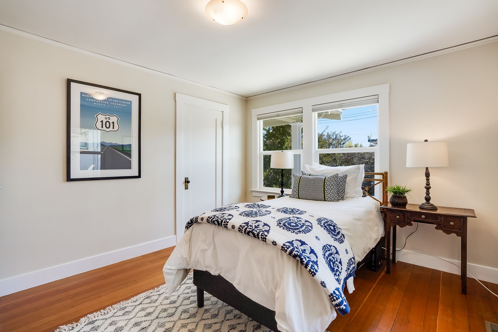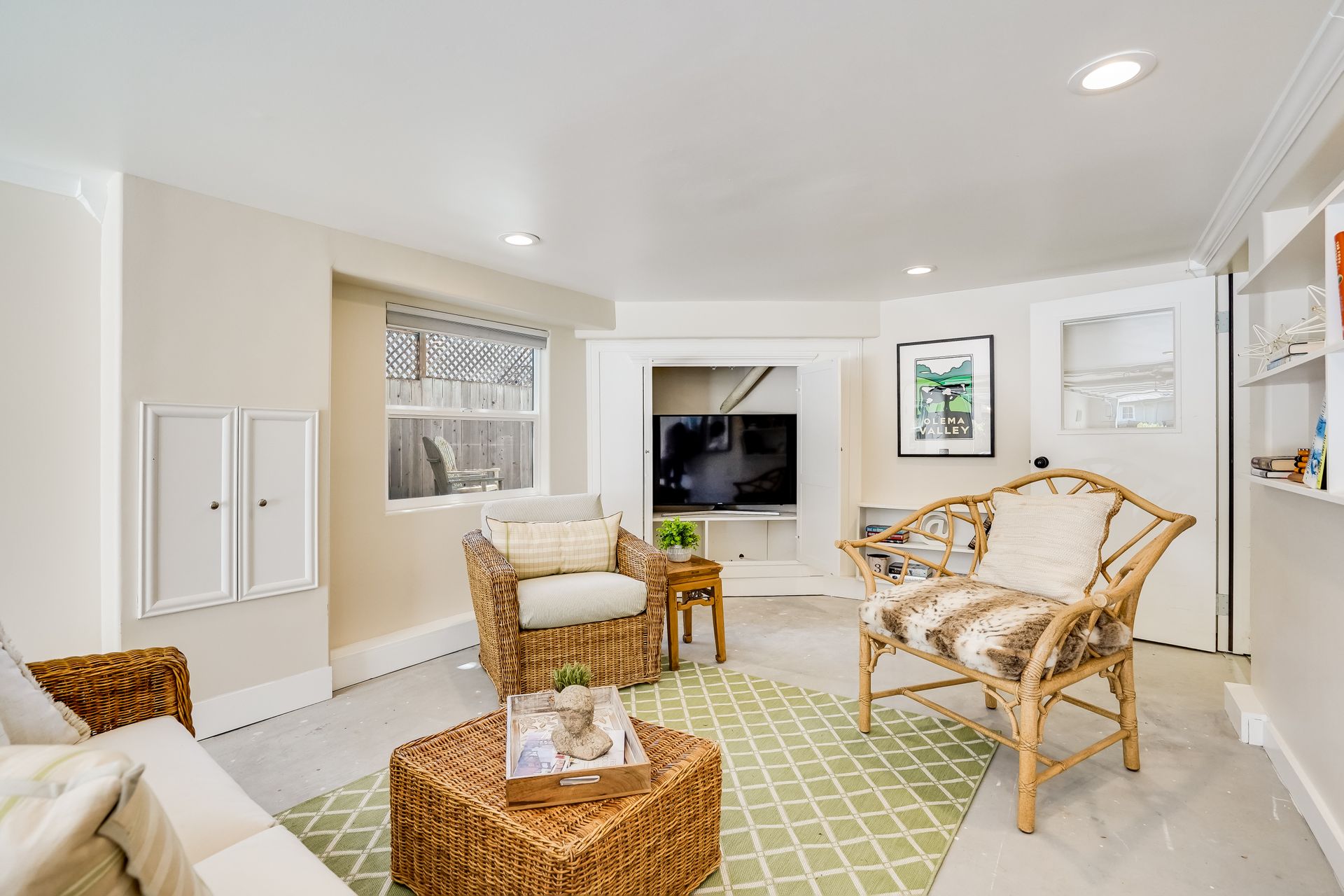 This adorable 1924 San Anselmo vintage cottage has great curb appeal, modern functionality, a large, flat backyard and is less than half a block to downtown! The main floor features approximately 1,000 square-feet of comfortable space with a sunny updated kitchen and a living and dining room area. Highlights of the main level boast a cozy fireplace, a primary bedroom, a small office or nursery (with a closet), a larger bedroom with a walk-in closet and two full bathrooms. Enjoy a master bath that was recently remodeled and the entire exterior has been painted. Downstairs is a 580 sq feet finished garage level with an oversized home office, a large playroom, a laundry room and an expansive storage area with numerous built-ins. Entertain on the spacious front porch and in the private level backyard with a paved patio area for BBQing and outdoor dining. A bonus to the home is the expanded driveway with parking for up to three cars. Ideally located, you are just moments away from hiking and biking trails, downtown San Anselmo and top-rated Ross Valley Schools! This home is move-in ready and nestled on one of San Anselmo's most desirable streets.