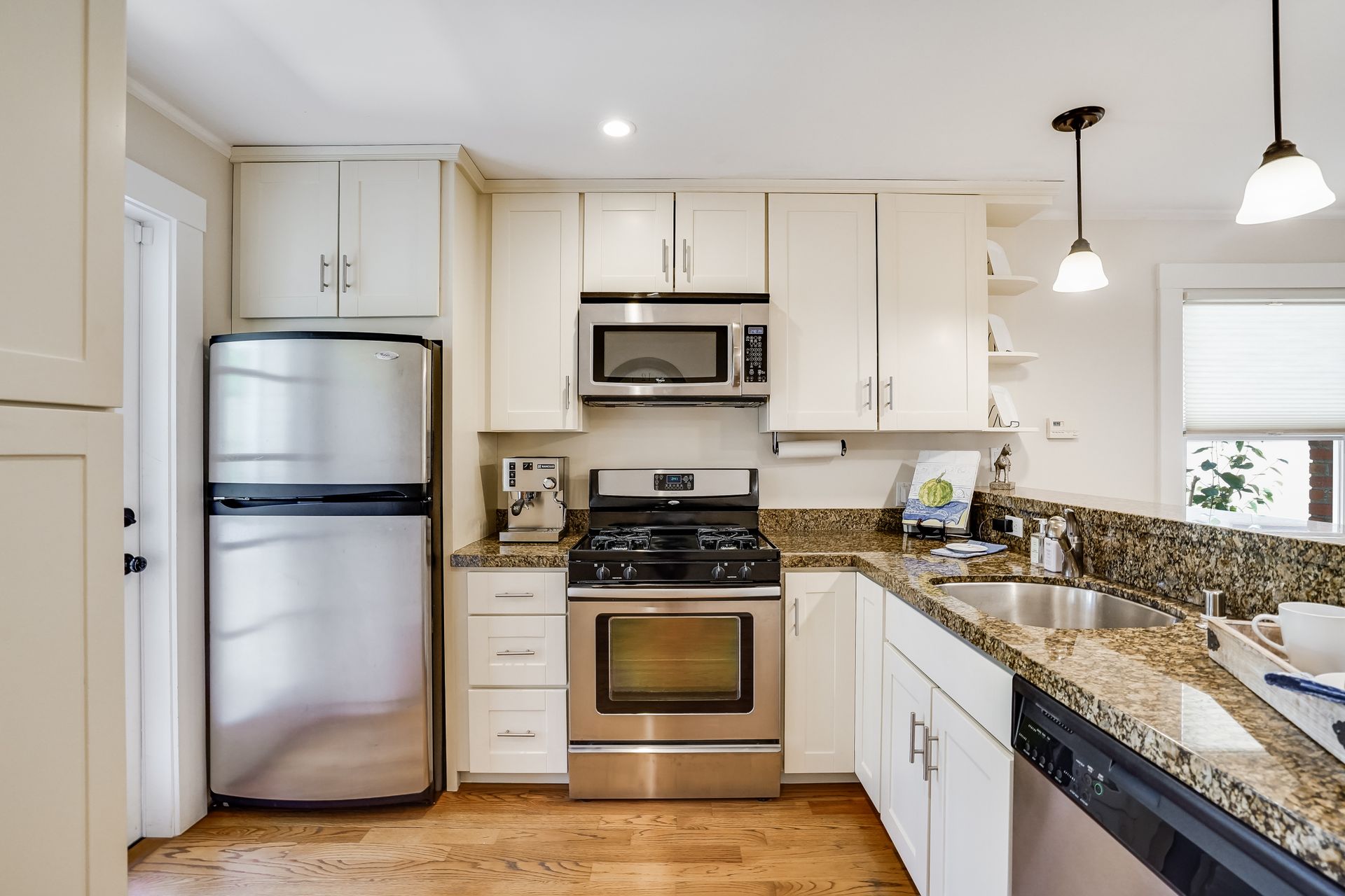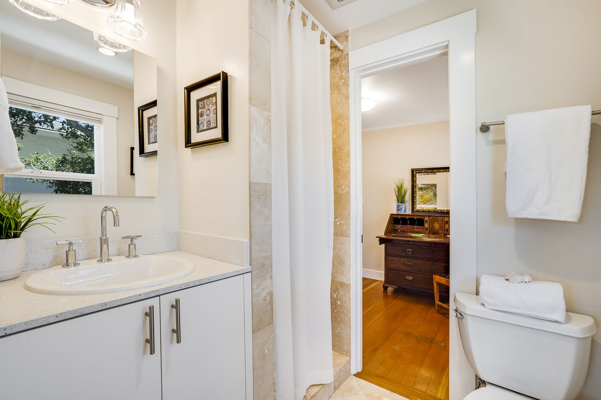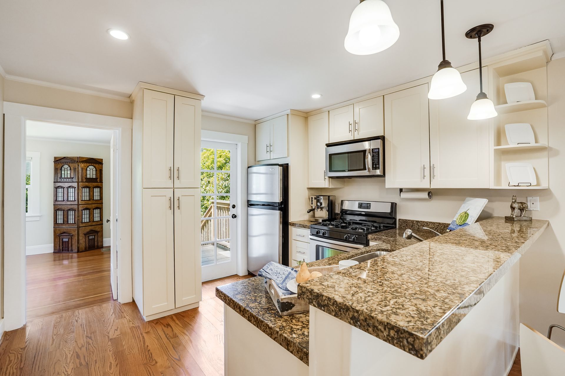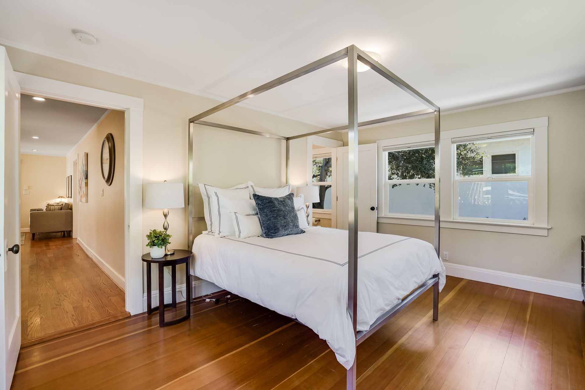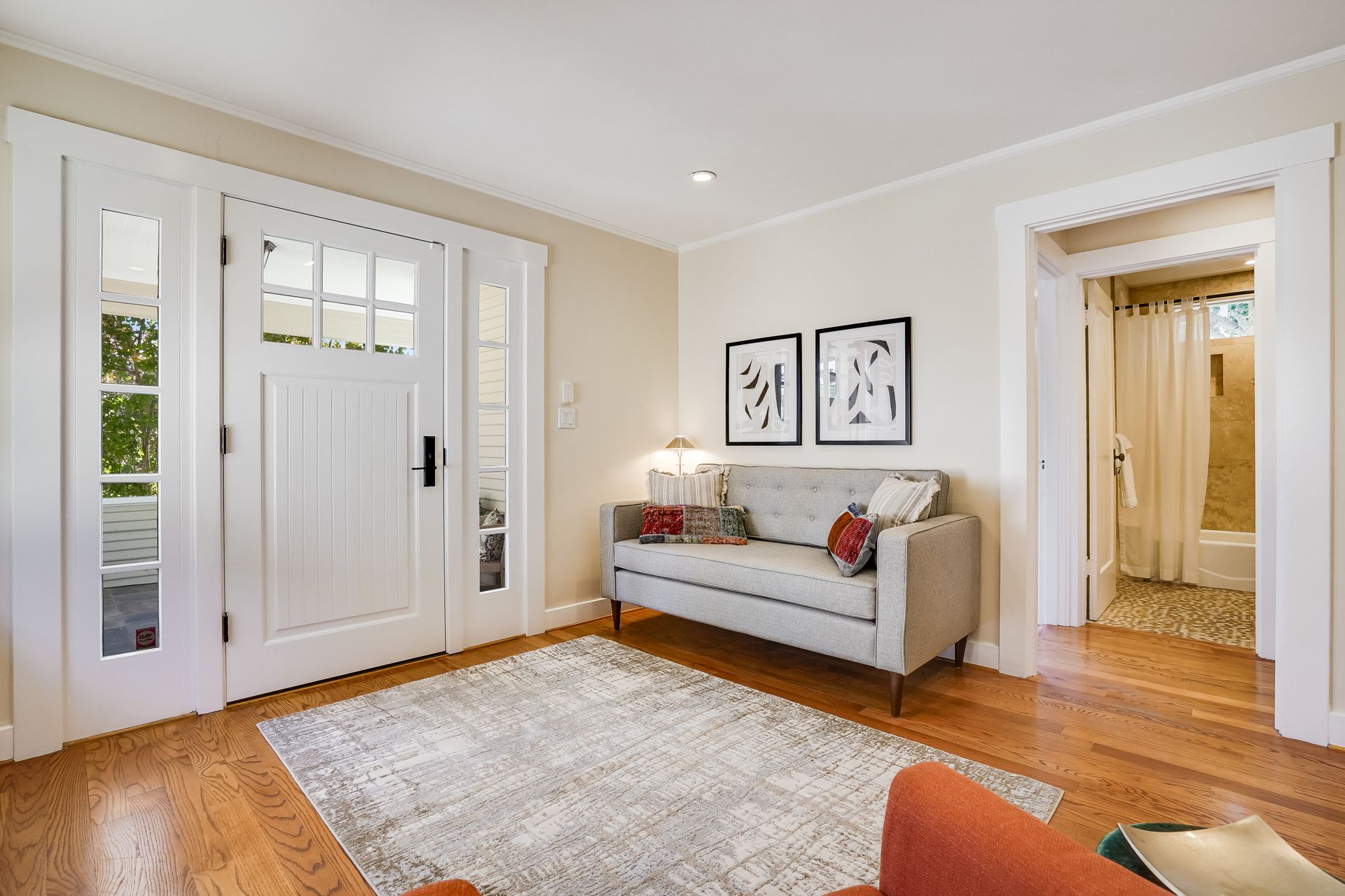 This adorable 1924 San Anselmo vintage cottage has great curb appeal, modern functionality, a large, flat backyard and is less than half a block to downtown! The main floor features approximately 1,000 square-feet of comfortable space with a sunny updated kitchen and a living and dining room area. Highlights of the main level boast a cozy fireplace, a primary bedroom, a small office or nursery (with a closet), a larger bedroom with a walk-in closet and two full bathrooms. Enjoy a master bath that was recently remodeled and the entire exterior has been painted. Downstairs is a 580 sq feet finished garage level with an oversized home office, a large playroom, a laundry room and an expansive storage area with numerous built-ins. Entertain on the spacious front porch and in the private level backyard with a paved patio area for BBQing and outdoor dining. A bonus to the home is the expanded driveway with parking for up to three cars. Ideally located, you are just moments away from hiking and biking trails, downtown San Anselmo and top-rated Ross Valley Schools! This home is move-in ready and nestled on one of San Anselmo's most desirable streets.