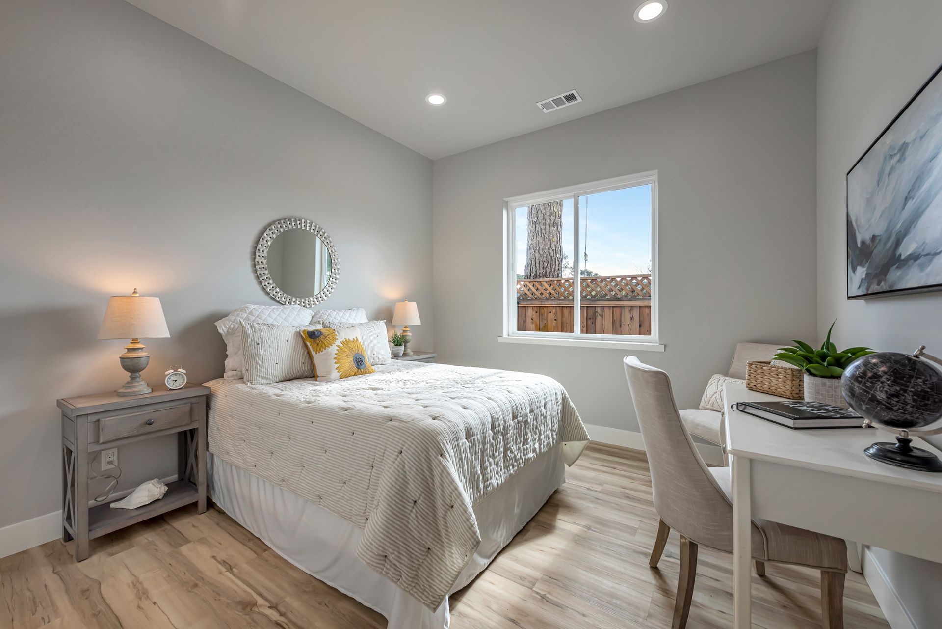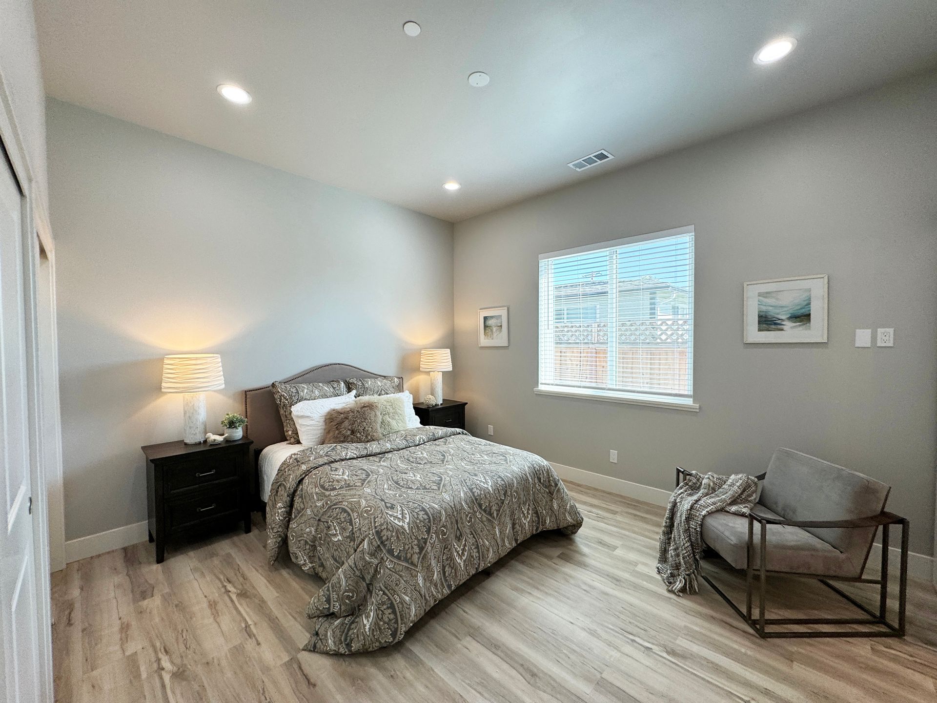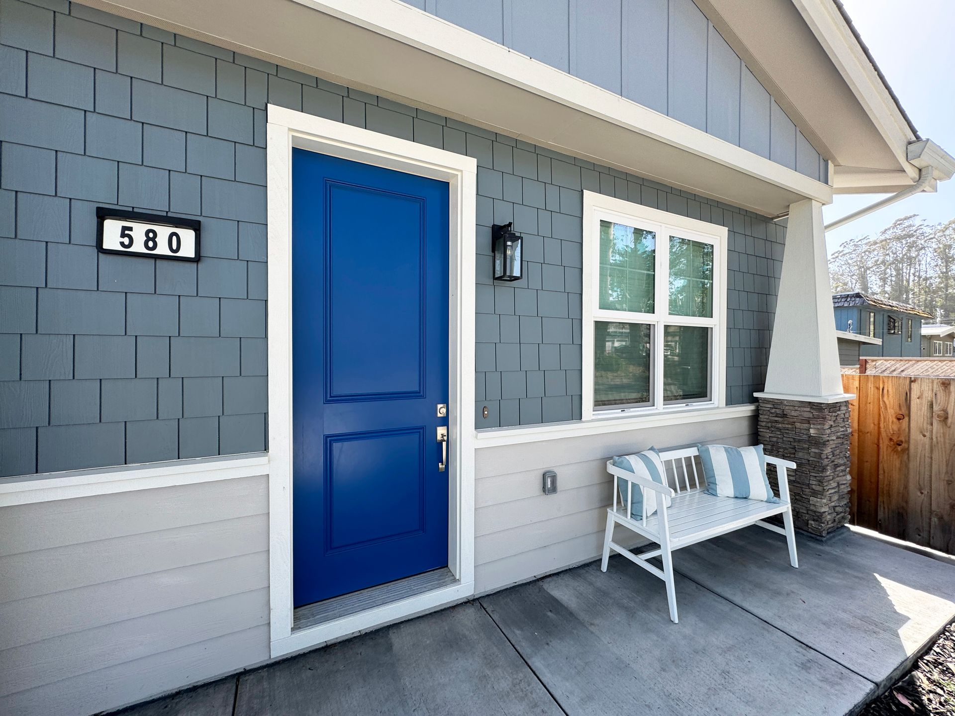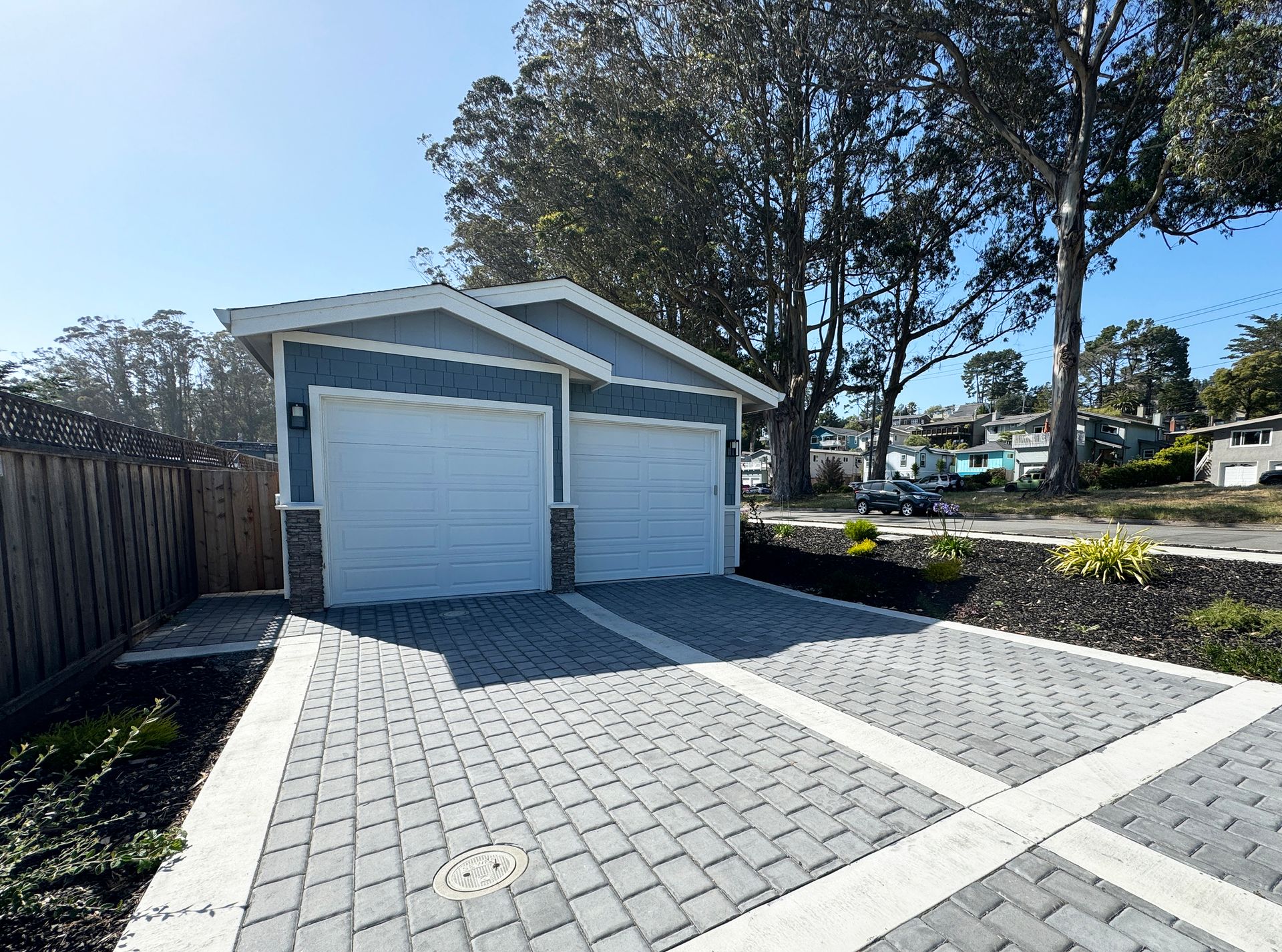 Two generously sized bedrooms include an en suite primary with double side-by-side closets. Bathrooms with Quartz vanities and showers. Attached two-car garage with tall garage doors and is EV-Ready! Large paver stone driveway. Fenced backyard. Great location. Close to Spanglers grocery, restaurants, and Pillar Point Harbor, open space and schools.