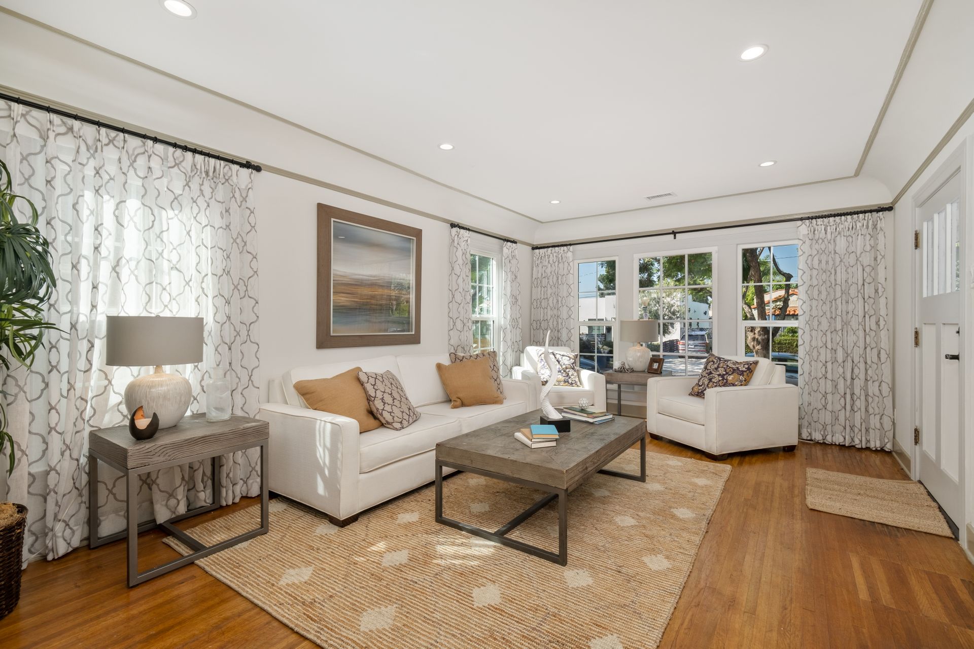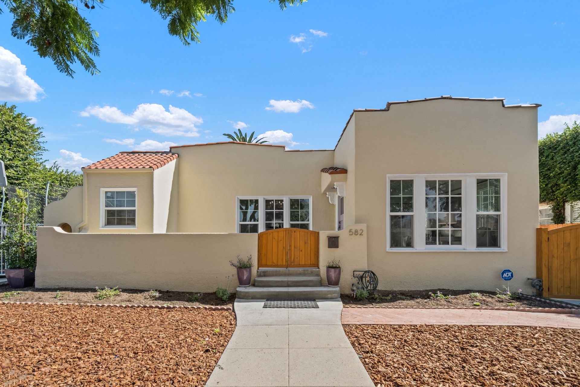 Lovely remodeled Spanish home with 2 beds & 2 baths, ADU office and garage. New AC/heat, new 200 amp panel, new windows, new ceilings, new copper plumbing, new retrofitting/bolting & new roofs. Original hardwood floors, crown molding & fireplace. Spacious and private backyard with lemon trees and drought landscaping.