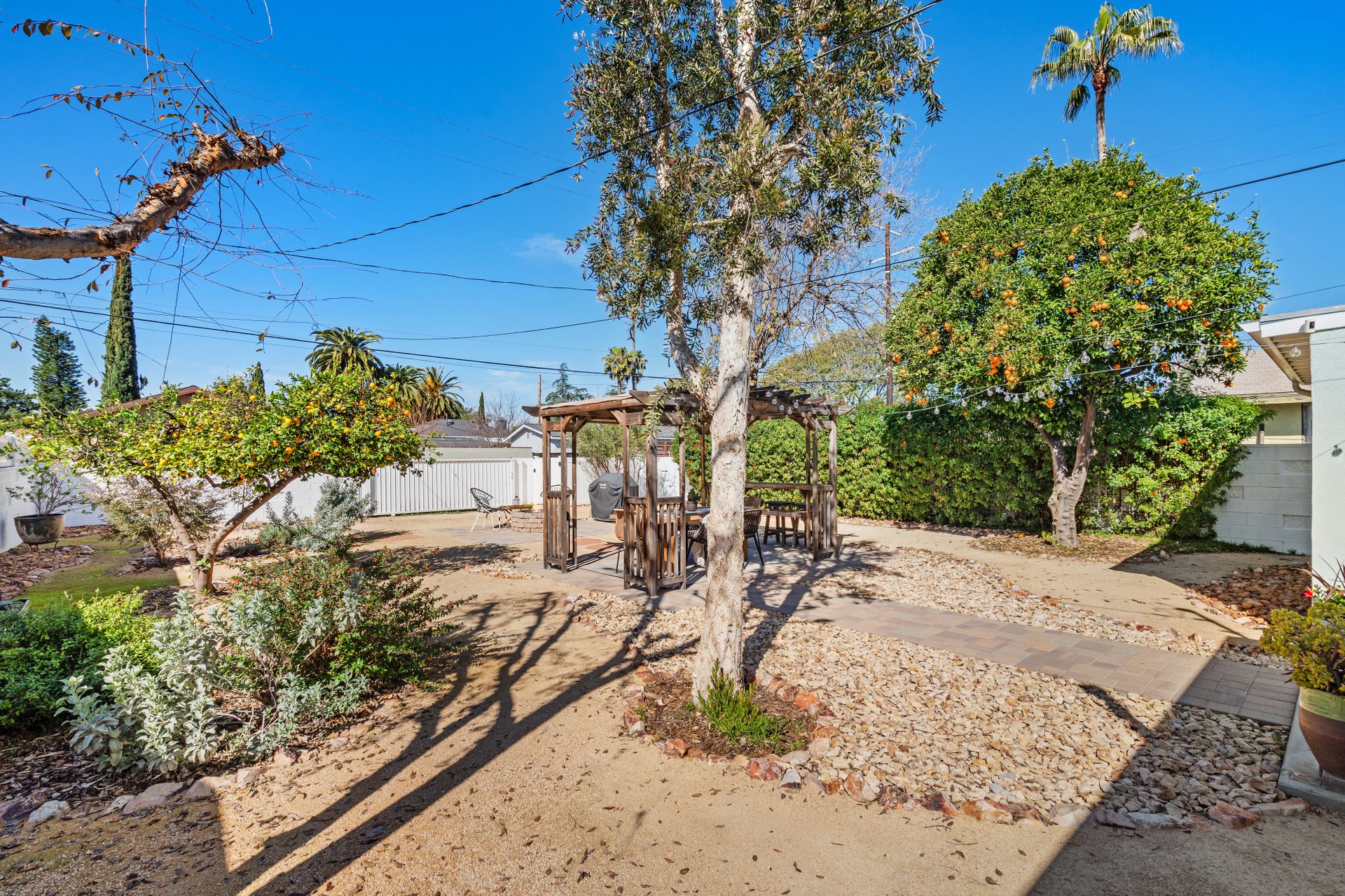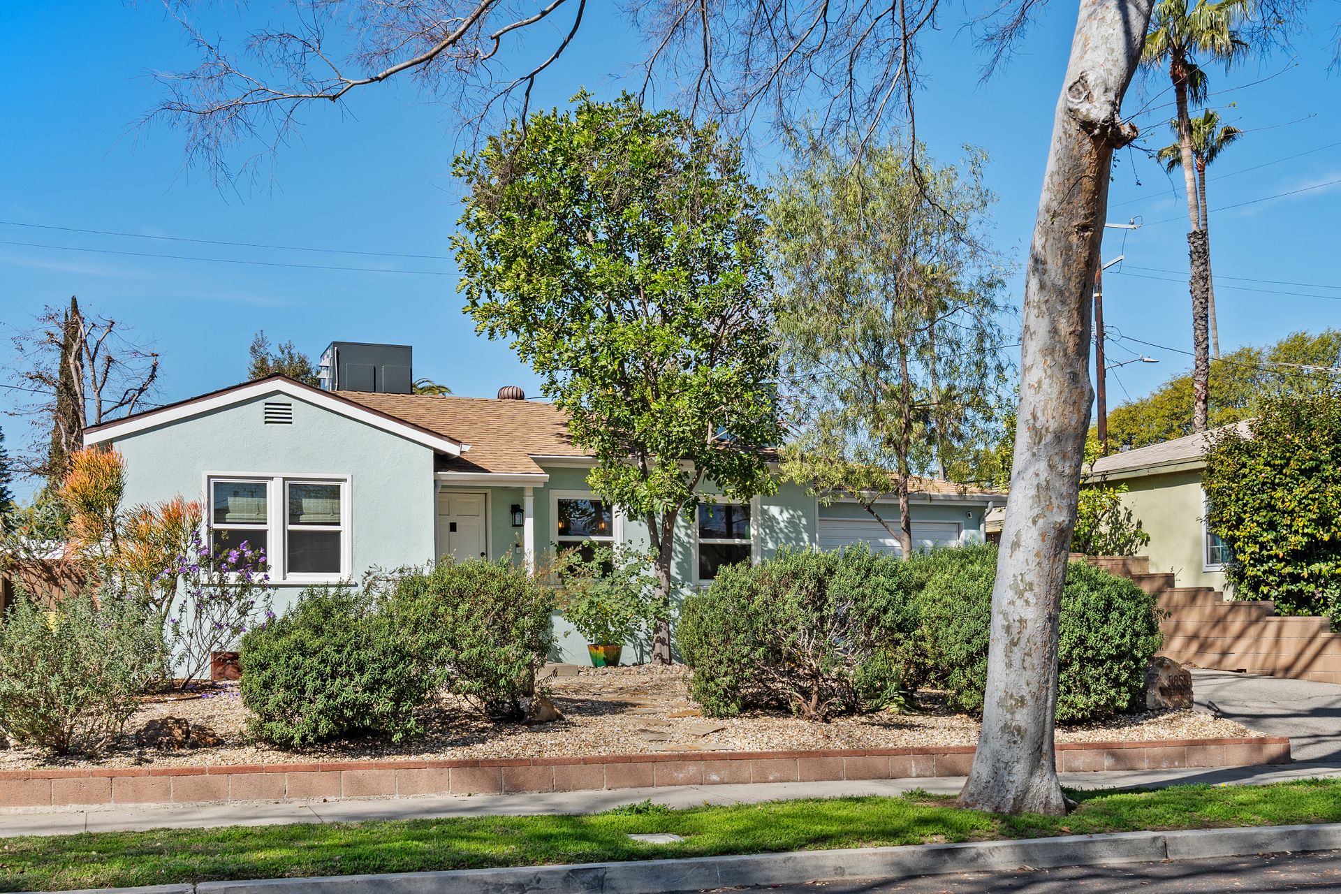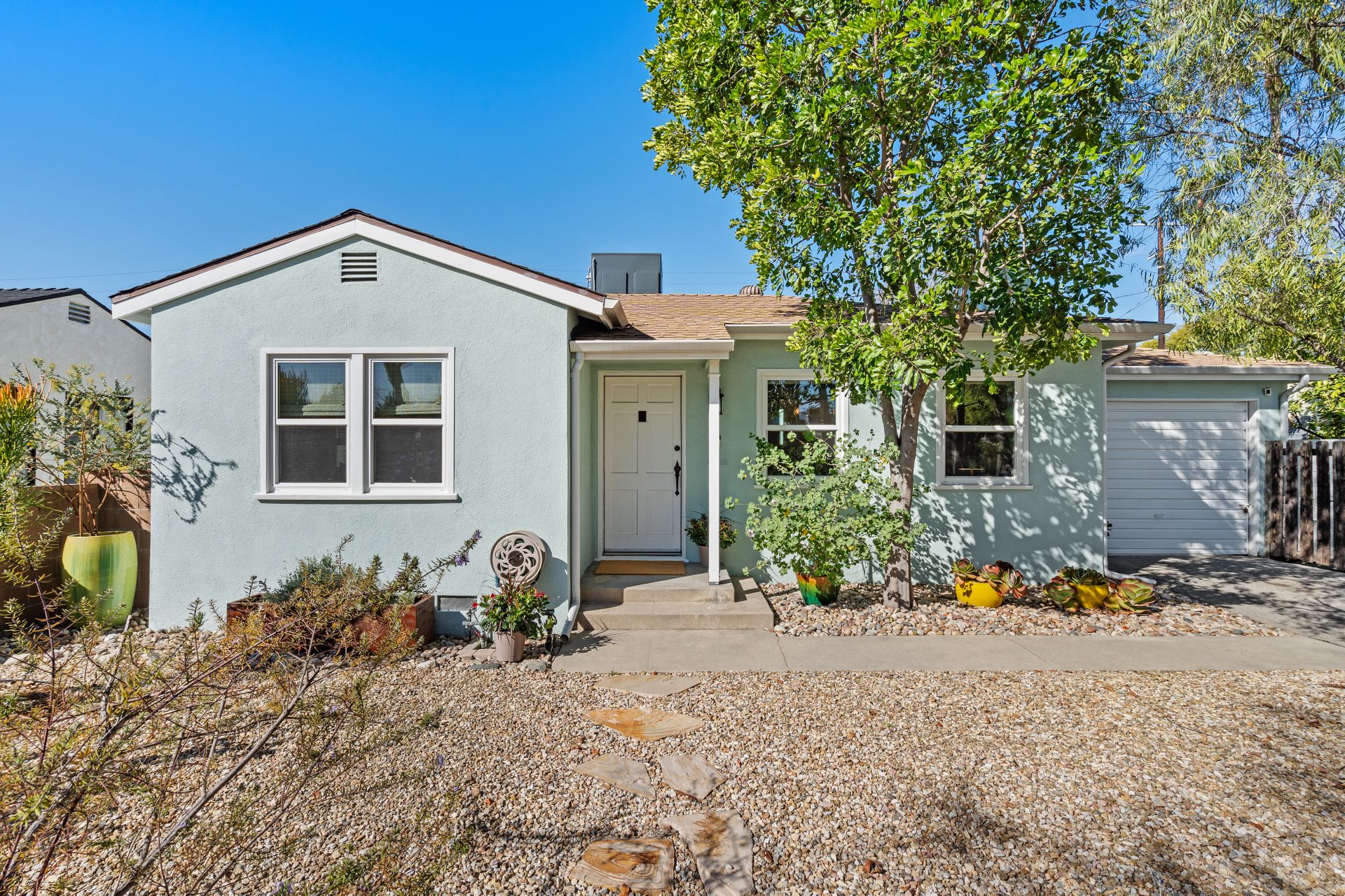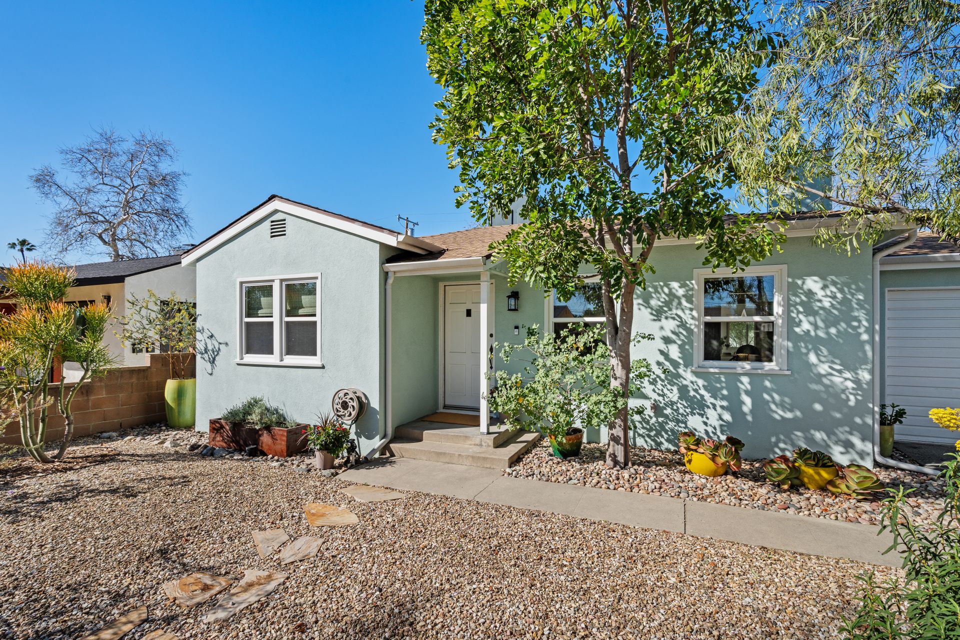 Less than a mile from the heart of NoHo, this stylishly updated North Hollywood gem blends classic charm with fresh, modern vibes! Sitting pretty on a tree-lined street of single-family homes, this bright and inviting home boasts a spacious yard, ideal for entertaining or just soaking up the SoCal sun. The real showstopper? The sleek, renovated kitchen—decked out with quartzite countertops, crisp cabinetry, white appliances (yes, a four-burner gas stove!), and a chic pass-through dining counter that connects seamlessly to the living room. Speaking of the living space, it’s got that ideal mix of cozy and cool with its hardwood floors, coved ceilings, and newer double-pane windows for extra peace and tranquility. Need a home office, creative studio, or even a third bedroom? The oversized den off the kitchen has you covered with direct access to the backyard for the ultimate indoor-outdoor flow. The two bedrooms are fresh, airy, and stylish, while the updated bathroom stuns with a custom design of hand-laid tiles. Directly off the kitchen, you can exit outside to your private backyard oasis, designed for laid-back California living. Two distinct seating areas—one under a gazebo, the other around a firepit—set the scene for epic hangouts. The yard is dotted with fruit trees, drought-tolerant landscaping, a custom hidden trash enclosure and even a gated rear access road. The attached one-car garage offers extra storage or optional future expansion (with city approval, of course). With newer central air and heat, updated electrical, copper plumbing, in-home laundry (washer and dryer included!), ABS sewer line, and more, this home is totally move-in ready. Plus, the location is unbeatable—just two blocks from Whitnall Dog Park and minutes to NoHo, Burbank, and Toluca Lake hotspots like Trader Joe’s, Porto’s Bakery, Moby’s Organic Coffee & Tea, and more. If you’re looking for that ideal blend of classic charm and modern convenience, welcome home to your NoHo dream!