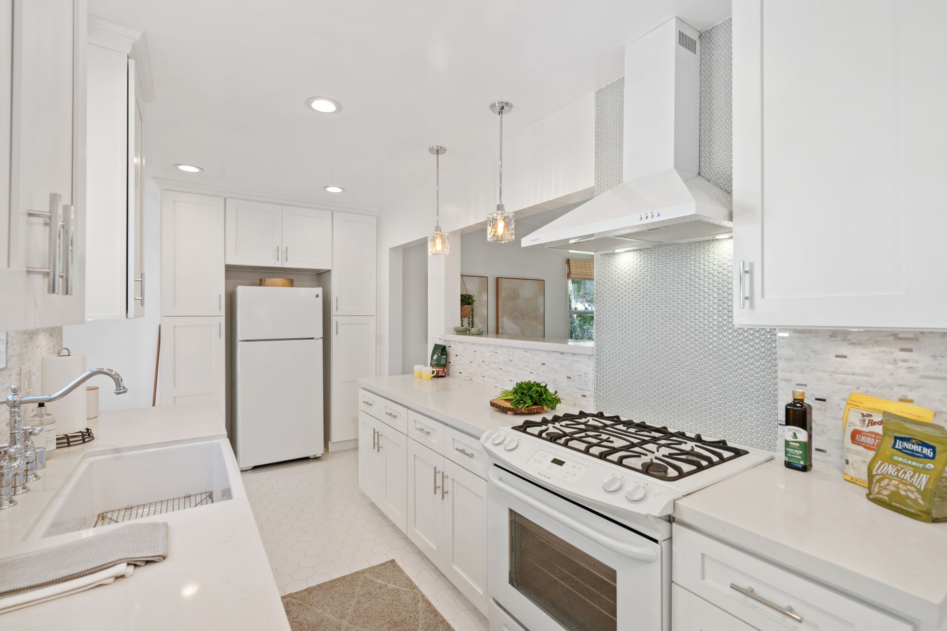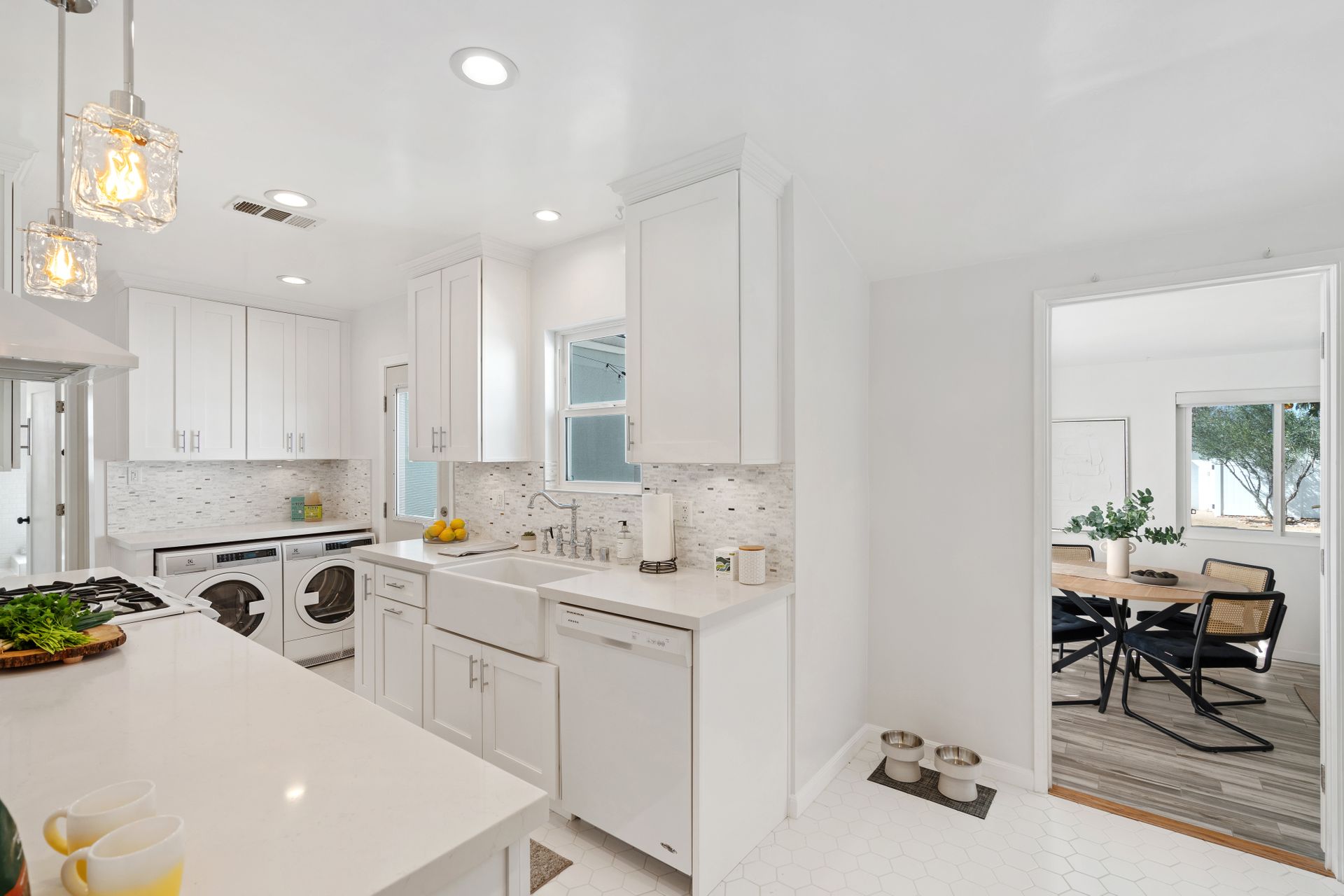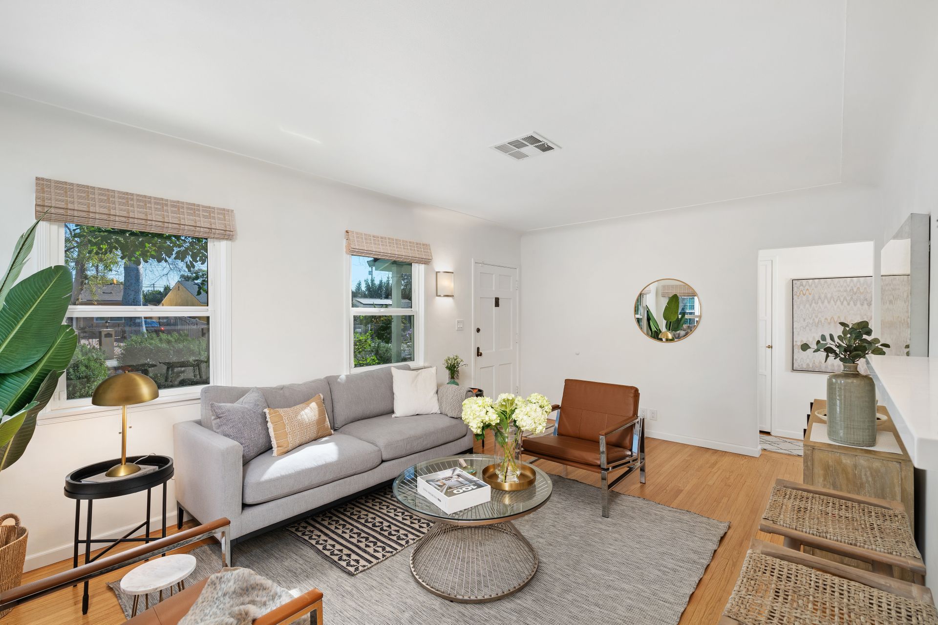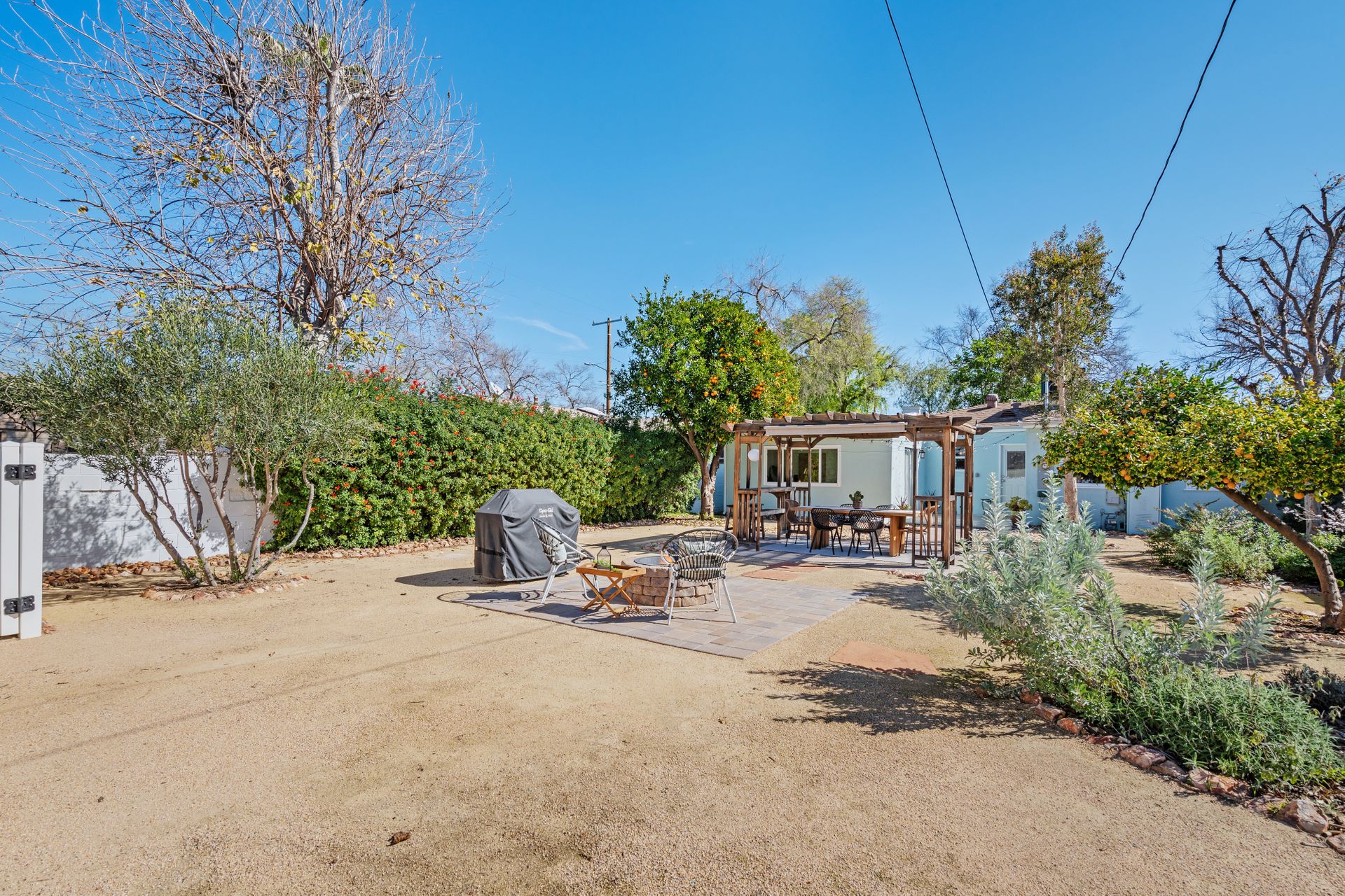 Less than a mile from the heart of NoHo, this stylishly updated North Hollywood gem blends classic charm with fresh, modern vibes! Sitting pretty on a tree-lined street of single-family homes, this bright and inviting home boasts a spacious yard, ideal for entertaining or just soaking up the SoCal sun. The real showstopper? The sleek, renovated kitchen—decked out with quartzite countertops, crisp cabinetry, white appliances (yes, a four-burner gas stove!), and a chic pass-through dining counter that connects seamlessly to the living room. Speaking of the living space, it’s got that ideal mix of cozy and cool with its hardwood floors, coved ceilings, and newer double-pane windows for extra peace and tranquility. Need a home office, creative studio, or even a third bedroom? The oversized den off the kitchen has you covered with direct access to the backyard for the ultimate indoor-outdoor flow. The two bedrooms are fresh, airy, and stylish, while the updated bathroom stuns with a custom design of hand-laid tiles. Directly off the kitchen, you can exit outside to your private backyard oasis, designed for laid-back California living. Two distinct seating areas—one under a gazebo, the other around a firepit—set the scene for epic hangouts. The yard is dotted with fruit trees, drought-tolerant landscaping, a custom hidden trash enclosure and even a gated rear access road. The attached one-car garage offers extra storage or optional future expansion (with city approval, of course). With newer central air and heat, updated electrical, copper plumbing, in-home laundry (washer and dryer included!), ABS sewer line, and more, this home is totally move-in ready. Plus, the location is unbeatable—just two blocks from Whitnall Dog Park and minutes to NoHo, Burbank, and Toluca Lake hotspots like Trader Joe’s, Porto’s Bakery, Moby’s Organic Coffee & Tea, and more. If you’re looking for that ideal blend of classic charm and modern convenience, welcome home to your NoHo dream!