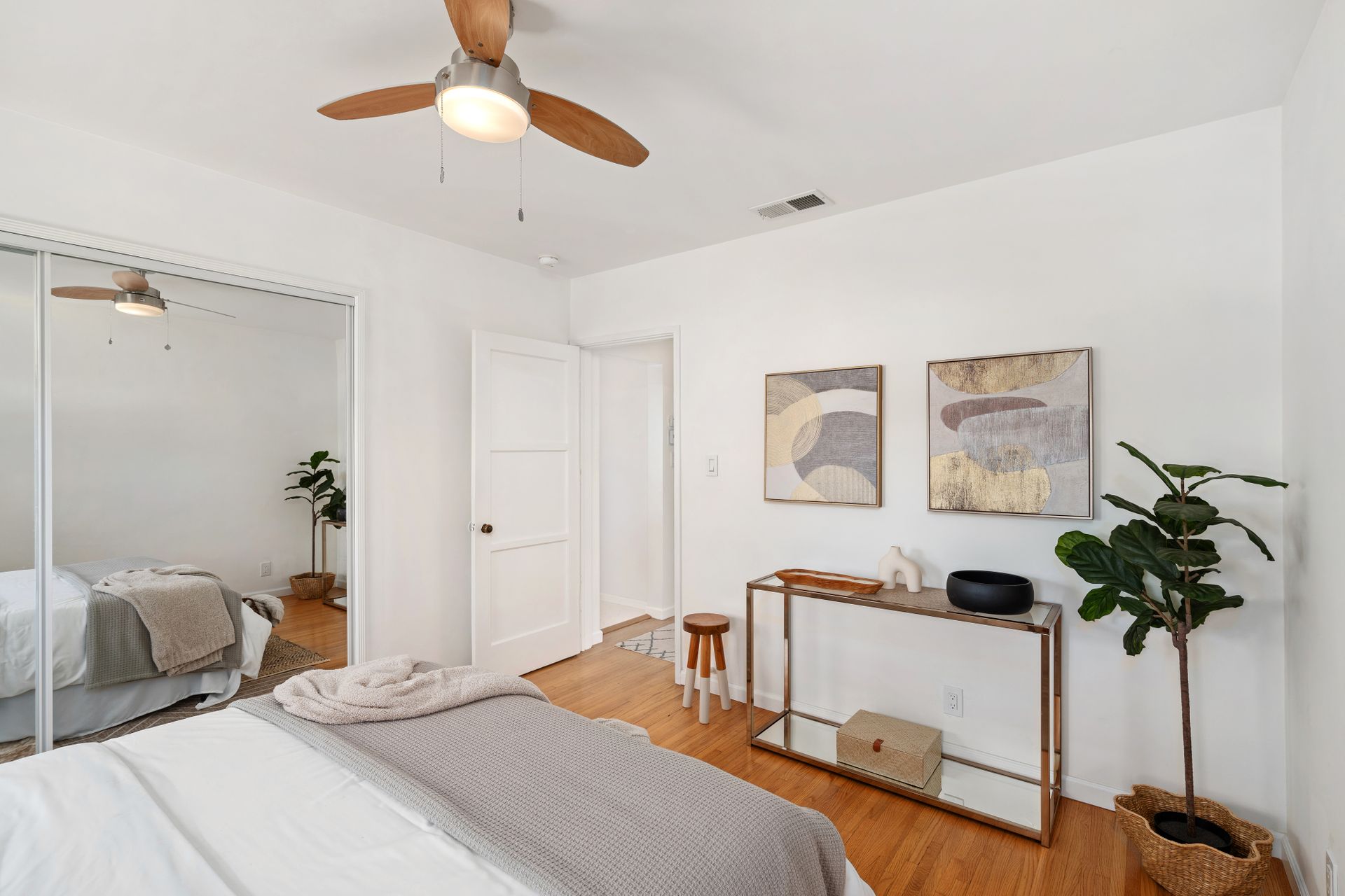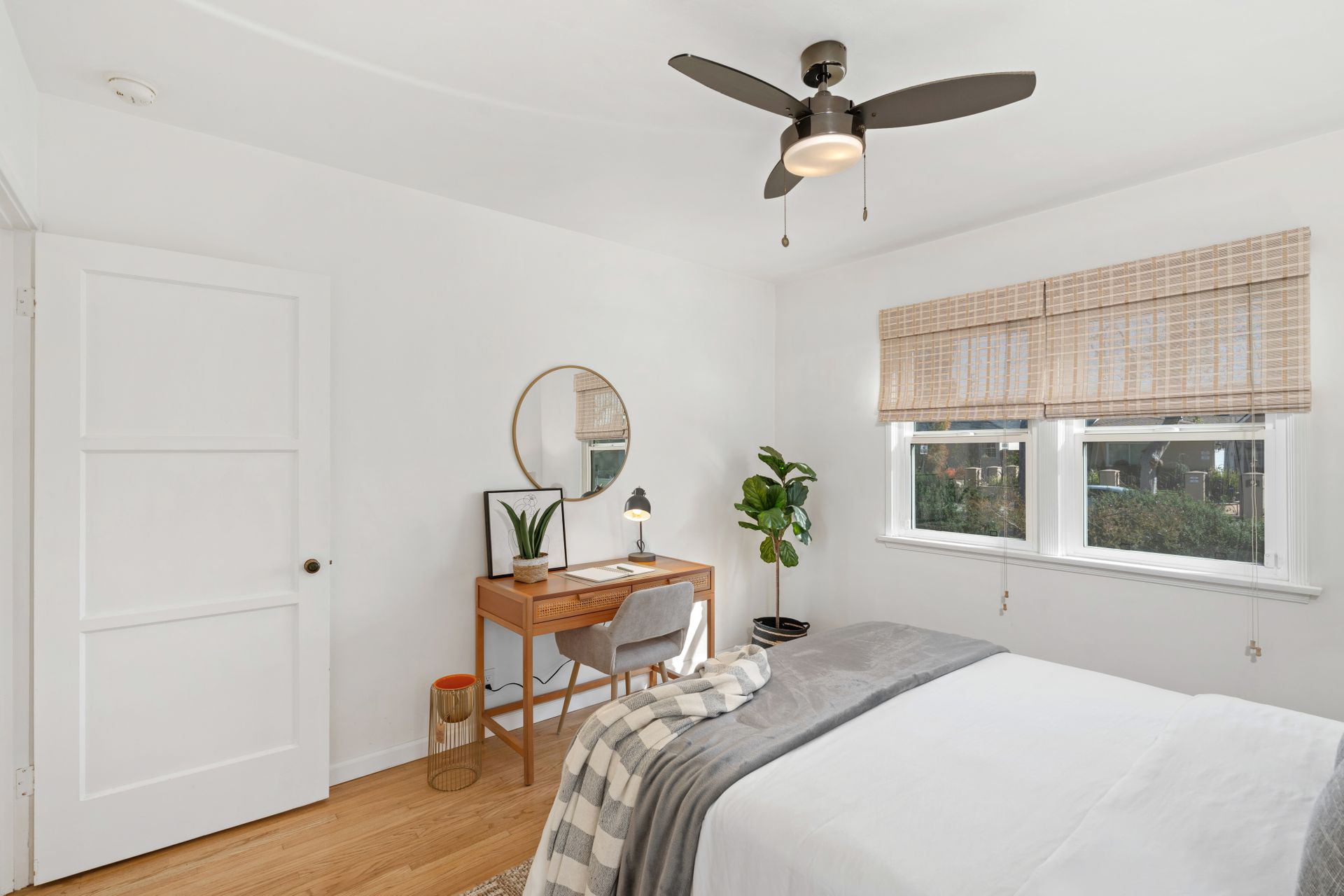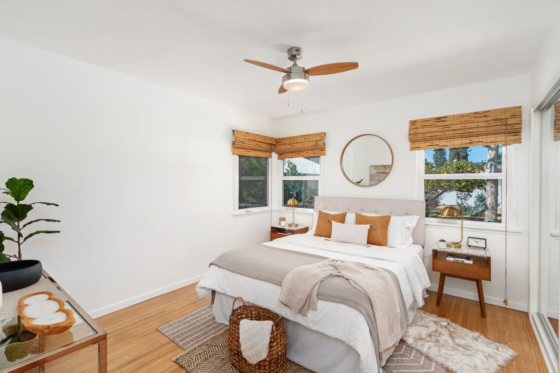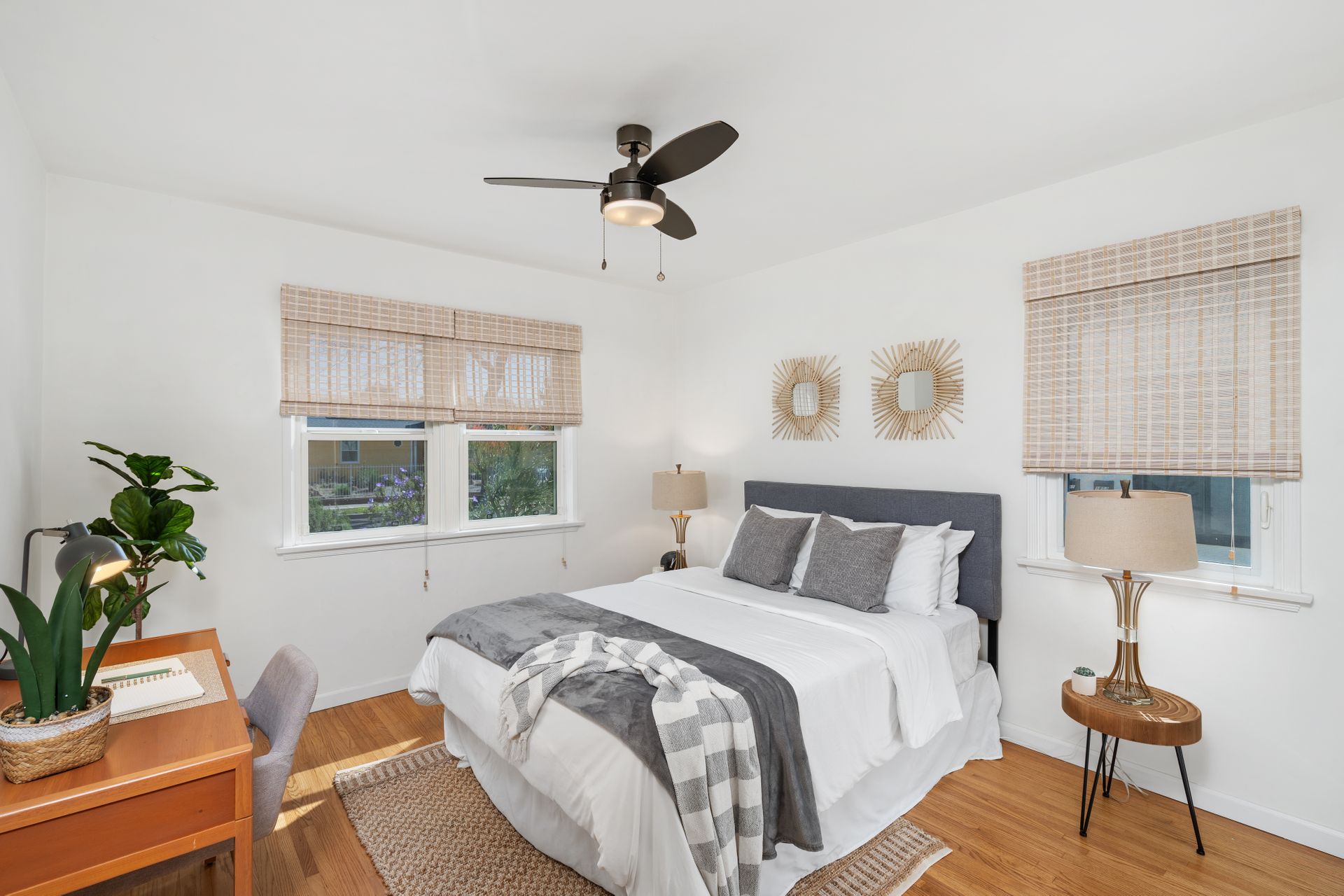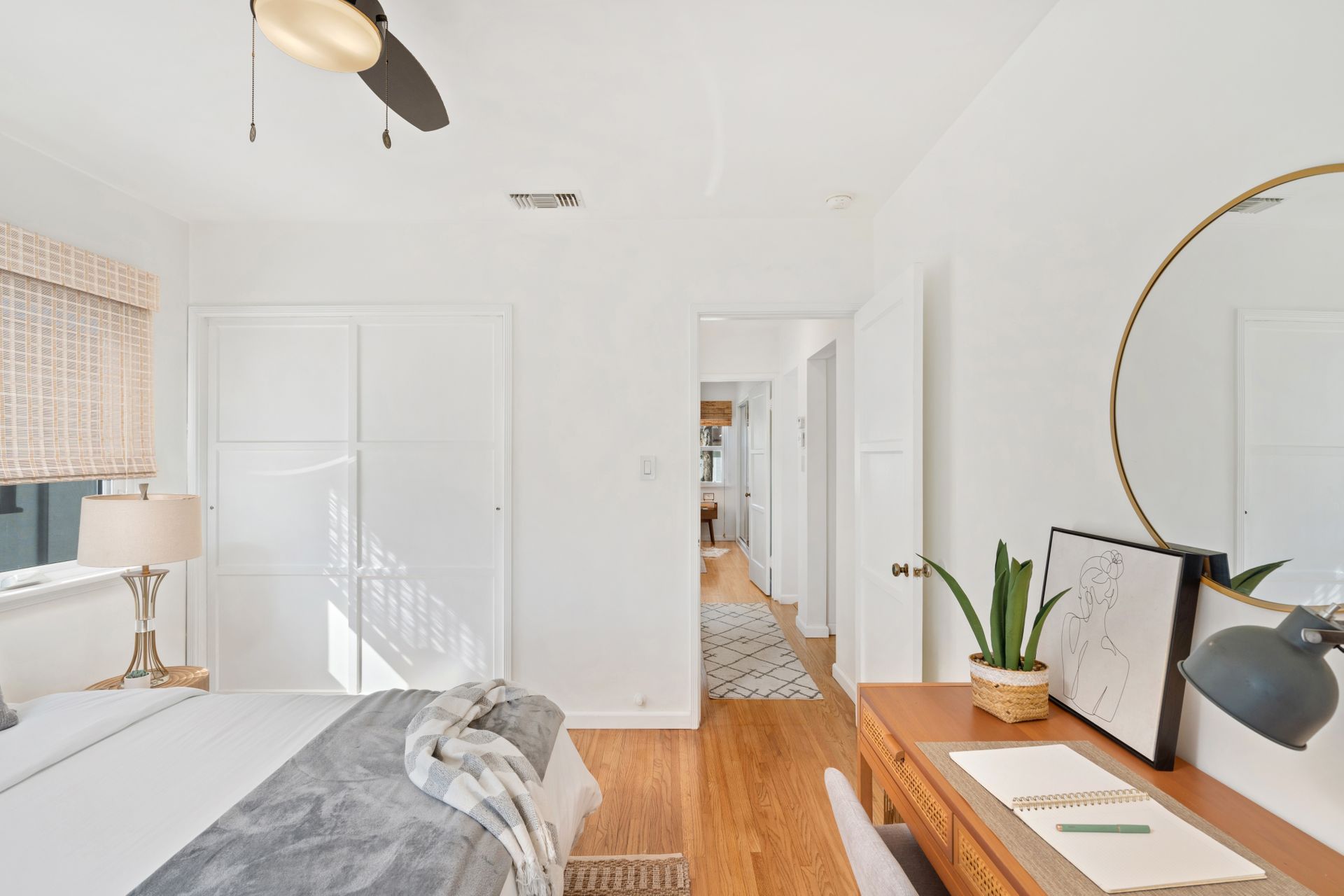 Less than a mile from the heart of NoHo, this stylishly updated North Hollywood gem blends classic charm with fresh, modern vibes! Sitting pretty on a tree-lined street of single-family homes, this bright and inviting home boasts a spacious yard, ideal for entertaining or just soaking up the SoCal sun. The real showstopper? The sleek, renovated kitchen—decked out with quartzite countertops, crisp cabinetry, white appliances (yes, a four-burner gas stove!), and a chic pass-through dining counter that connects seamlessly to the living room. Speaking of the living space, it’s got that ideal mix of cozy and cool with its hardwood floors, coved ceilings, and newer double-pane windows for extra peace and tranquility. Need a home office, creative studio, or even a third bedroom? The oversized den off the kitchen has you covered with direct access to the backyard for the ultimate indoor-outdoor flow. The two bedrooms are fresh, airy, and stylish, while the updated bathroom stuns with a custom design of hand-laid tiles. Directly off the kitchen, you can exit outside to your private backyard oasis, designed for laid-back California living. Two distinct seating areas—one under a gazebo, the other around a firepit—set the scene for epic hangouts. The yard is dotted with fruit trees, drought-tolerant landscaping, a custom hidden trash enclosure and even a gated rear access road. The attached one-car garage offers extra storage or optional future expansion (with city approval, of course). With newer central air and heat, updated electrical, copper plumbing, in-home laundry (washer and dryer included!), ABS sewer line, and more, this home is totally move-in ready. Plus, the location is unbeatable—just two blocks from Whitnall Dog Park and minutes to NoHo, Burbank, and Toluca Lake hotspots like Trader Joe’s, Porto’s Bakery, Moby’s Organic Coffee & Tea, and more. If you’re looking for that ideal blend of classic charm and modern convenience, welcome home to your NoHo dream!