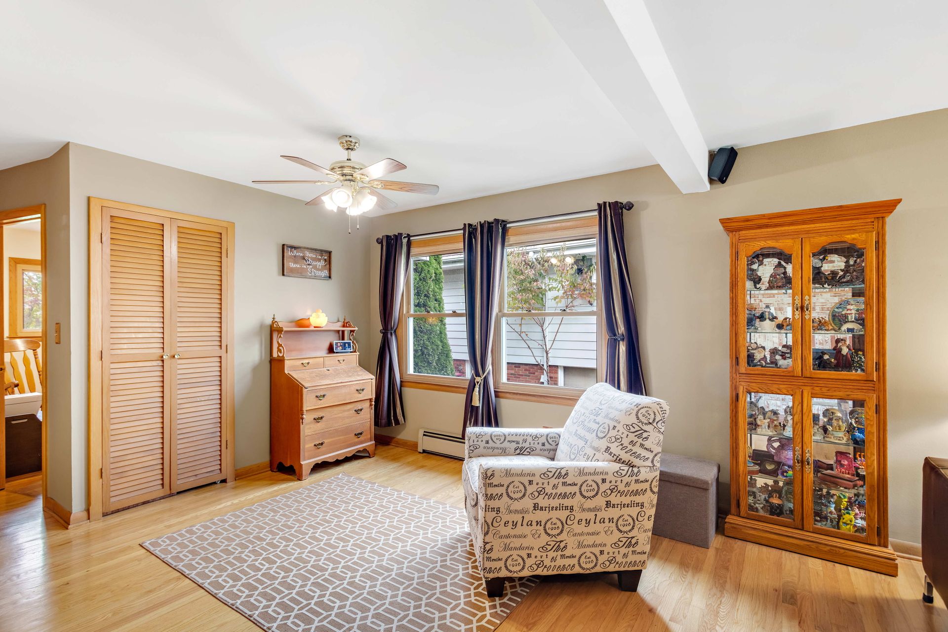 Welcome home to this lovely, well-maintained 5 BR colonial in Greendale with ample living space! Entryway greets you with heated floor opening to spacious, sun-filled great room with brick natural fireplace and gleaming hardwood floors that flow into dining room. Large eat-in kitchen is great for gatherings and opens to family room. Family room overlooks patio and private backyard with mature trees. 5th bedroom/office/den and powder room complete main floor. Upper offers 4 bedrooms, all with gleaming hardwood floors, master offers walk-in closet, and full bath with dual sinks and heated floor. Lower level is ready for your finishing touch. Convenient location, close to amenities and walking trails that lead to restaurants, schools, parks and all of the charm that Greendale offers. Let your story begin!