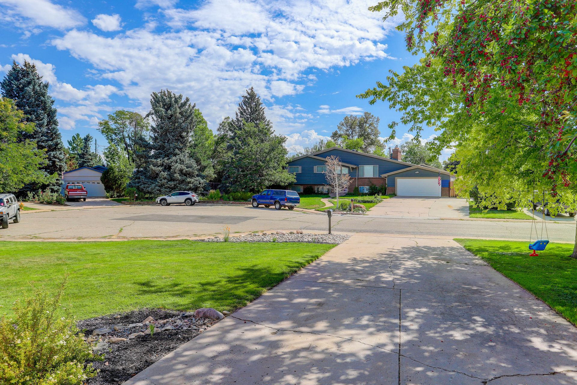 This beautifully maintained home in the renowned Leawood neighborhood welcomes you with a long driveway and immaculate front yard. The brand-new luxury vinyl flooring on the stairs lead you up into a bright and open living room. The updated eat-in kitchen features a large breakfast nook, slide-in gas stove with range hood, French door refrigerator and a kitchen island cart. Two upstairs bedrooms share a remodeled full bath featuring custom glass tile in the shower. The lower level has a large family room with a garden level window bringing in lots of natural light. The two basement bedrooms are perfect for guests or an office and workout space. The laundry room has extra storage space, and the washer and dryer are included. The backyard is accessible from the basement and the main floor and has been recently renovated with new grass and is fully fenced. The two-car garage has a newer door and room to work. The home is near the incredible recreation options between Clement Park and Raccoon Creek Golf Course. It also is a short drive from plenty of restaurants and shopping between Southwest Plaza and Bowles Crossing Shopping Center. Don't miss the opportunity to see this beautiful home on a quiet Littleton cul-de-sac!