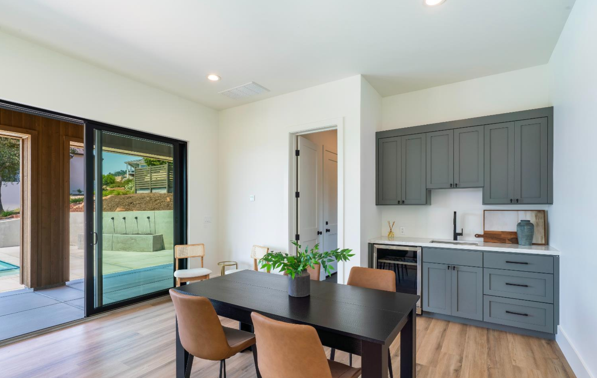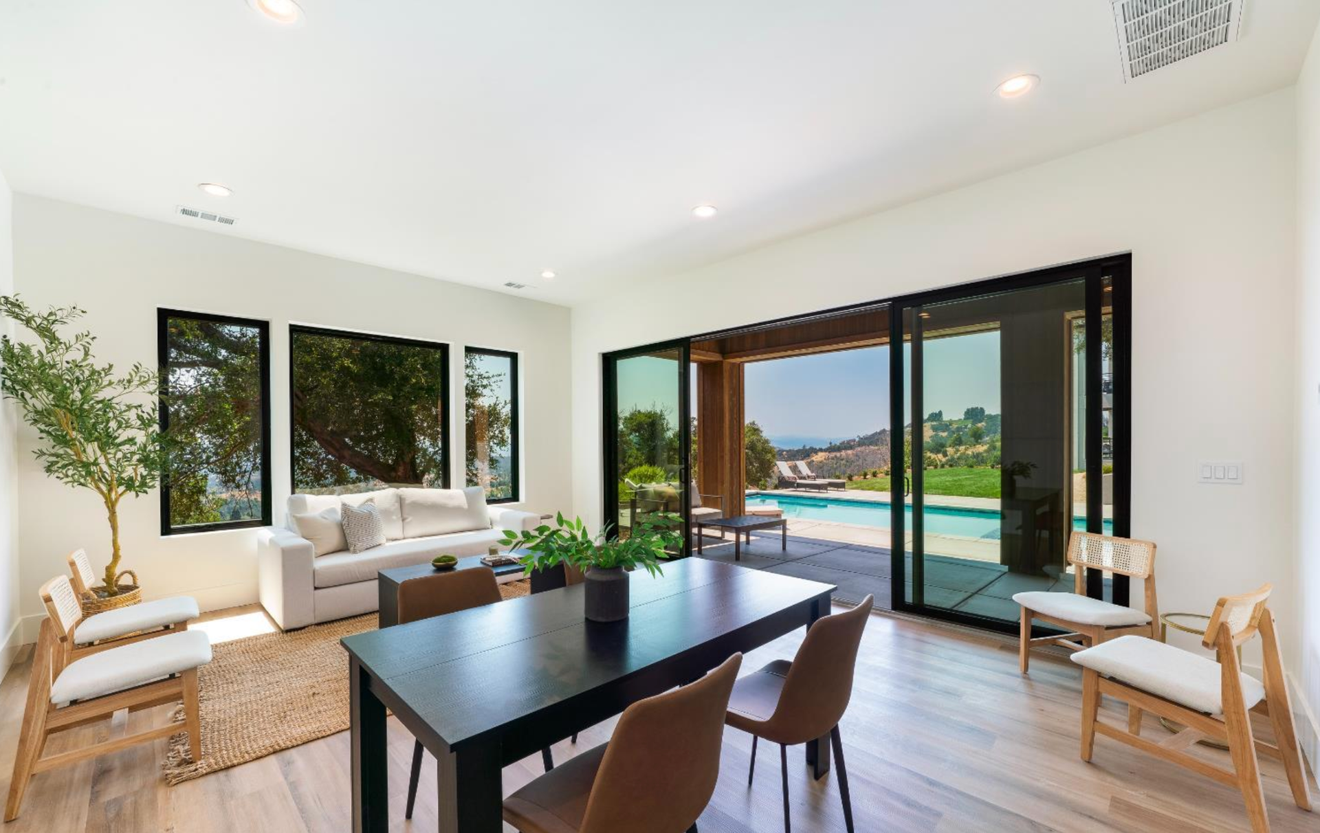 Elevated above the valley on 3.67 acres, this architecturally refined Wine Country retreat offers uninterrupted panoramic views and a lifestyle defined by seamless indoor-outdoor living. Expansive terraces, an outdoor kitchen, and a resort-style pool with custom fountain and pool house invite effortless entertaining and everyday enjoyment. 10-foot glass entry doors usher in natural light and frame captivating vistas from the moment you arrive. The great room flows into a chef's kitchen with alder cabinetry, quartz countertops, a dual-fuel range with grill and griddle and a light-filled butler's pantry with wine storage. The main level also features a guest suite, a richly paneled powder room, and a serene primary suite with a generous walk-in closet and a spa-like bath featuring a soaking tub, marble floors, and a floor-to-ceiling tiled shower. Downstairs, a spacious family/game room opens to a second view deck, accompanied by two additional bedrooms and a designer full bath with dual sinks. Above the home, a mature olive grove crowns the landscape, while the acreage offers versatility for future vision whether garden, hobby vineyard, shop, or barn. The home also features Solar: 3.78kW DC photovoltaic system. 9ea SILFAB SIL-420QD modules. 9ea Enphase IQ8A-72-2-US microinverters and an EV charger.