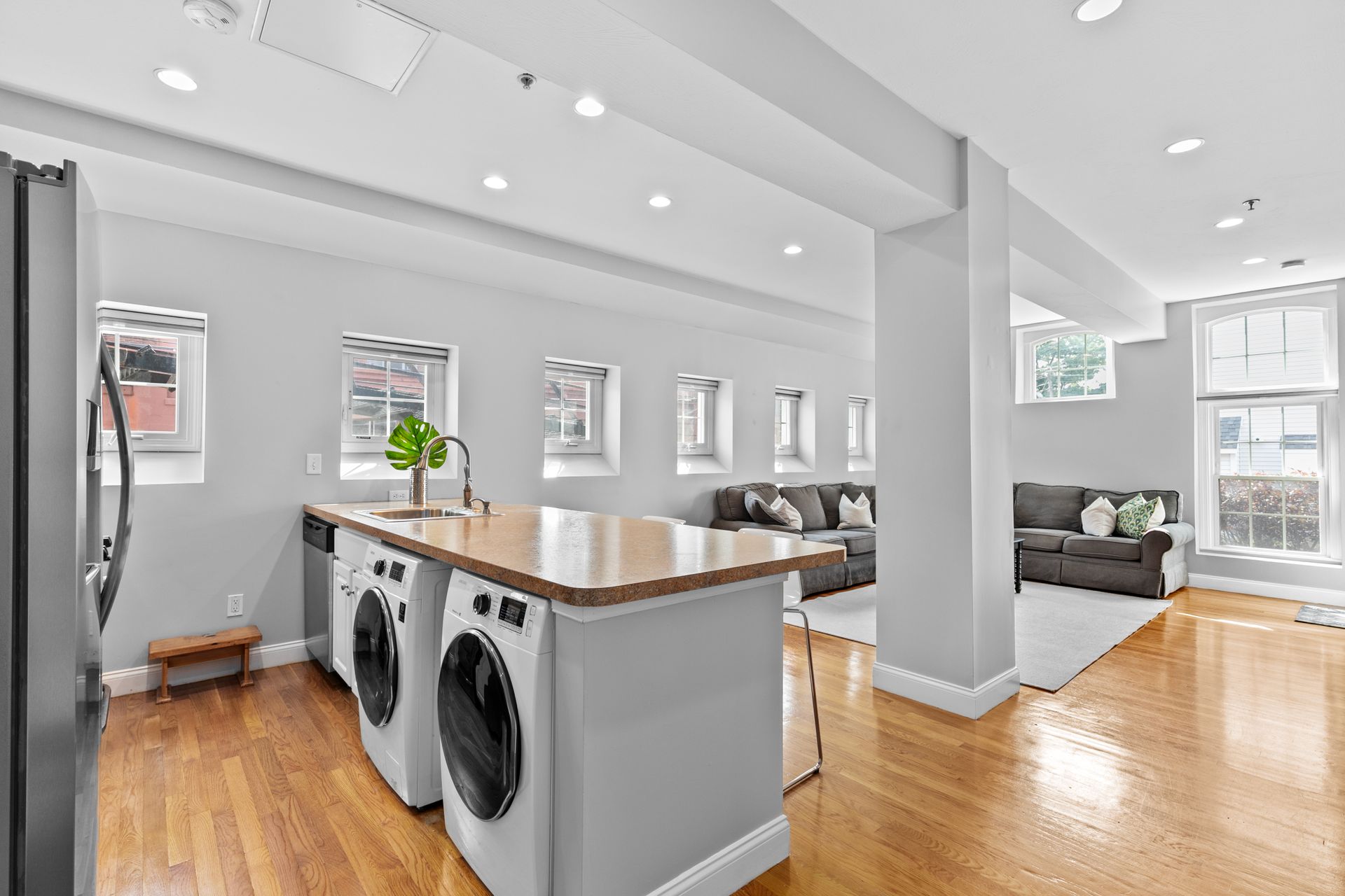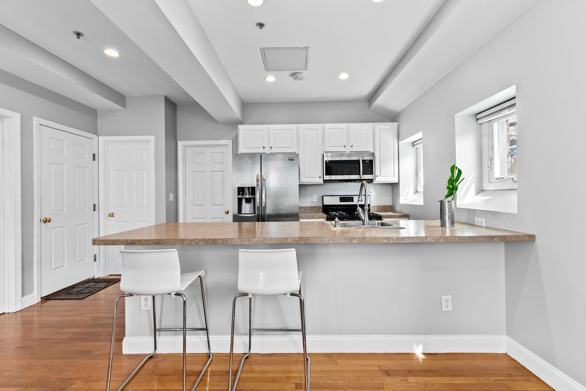 Experience the perfect blend of historical charm and modern convenience with this exceptional corner unit condominium in Medford’s Wellington neighborhood. Originally a waterworks facility, this building was meticulously converted in 2005, preserving its unique architecture. The sun-filed unit boasts an open floor plan, high beamed ceilings, oversized windows, a kitchen equipped with stainless steel appliances, gas cooking, and an expansive breakfast bar. The freshly painted living and dining area features gleaming hardwood floors, while the two spacious bedrooms are fitted with new carpeting. Additional amenities include a walk-in closet, central air conditioning, in-unit laundry, full bath with a walk-in shower, a 1/2 bath and designated basement storage. This well-designed, low-maintenance condo also offers an attached garage and an additional parking space. Nestled on a tranquil side street, this home provides quick and convenient access to buses, the T, Wellington Station, Assembly Row, major routes, and more.