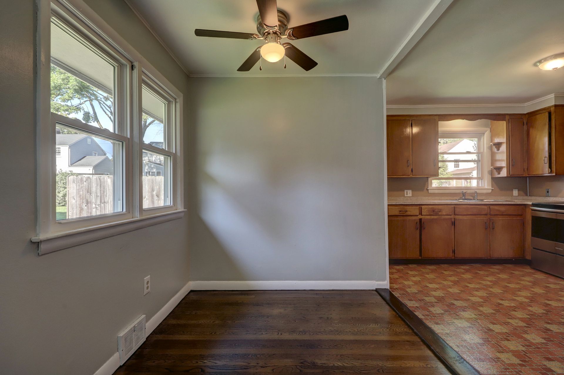 Charming two-bedroom, one-bath ranch in neighborhood location! Great condo alternative or for downsizing! Spacious and bright living room has a woodburning fireplace and is open to the dining room. The hardwood floors have just been redone in a rich walnut stain and are gleaming! There are two spacious bedrooms and a refreshed full bath with tub/shower combination. The kitchen has room for a table (or add an island or more cabinetry) and has a laundry alcove. A back door provides access to the large, sunny, level and fully fenced rear yard and patio area. The entire interior of this cream puff has been freshly painted and professionally cleaned. The lower level is open and dry with a new Bilco door and redone concrete stairwell. The freshly painted exterior and new mulch makes this house a winner! Pre-Approved Buyers only, please.
