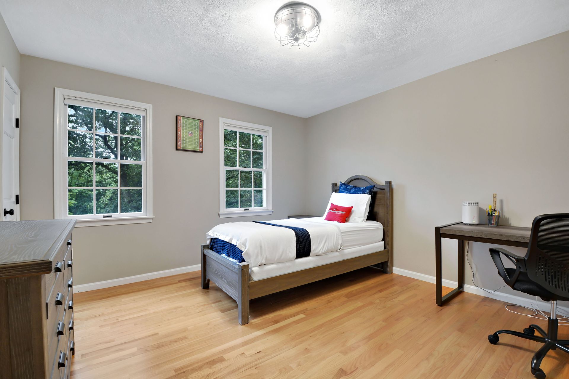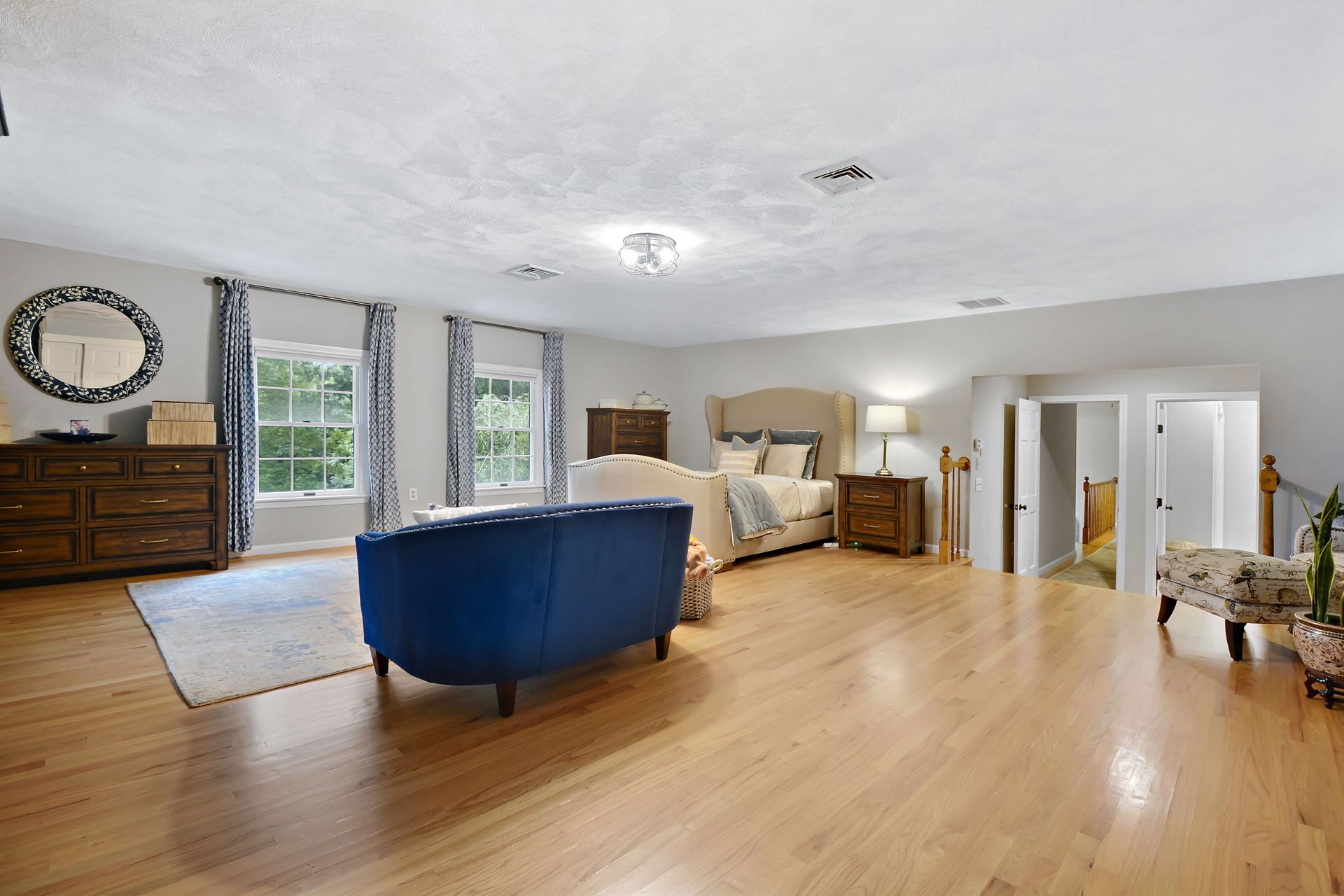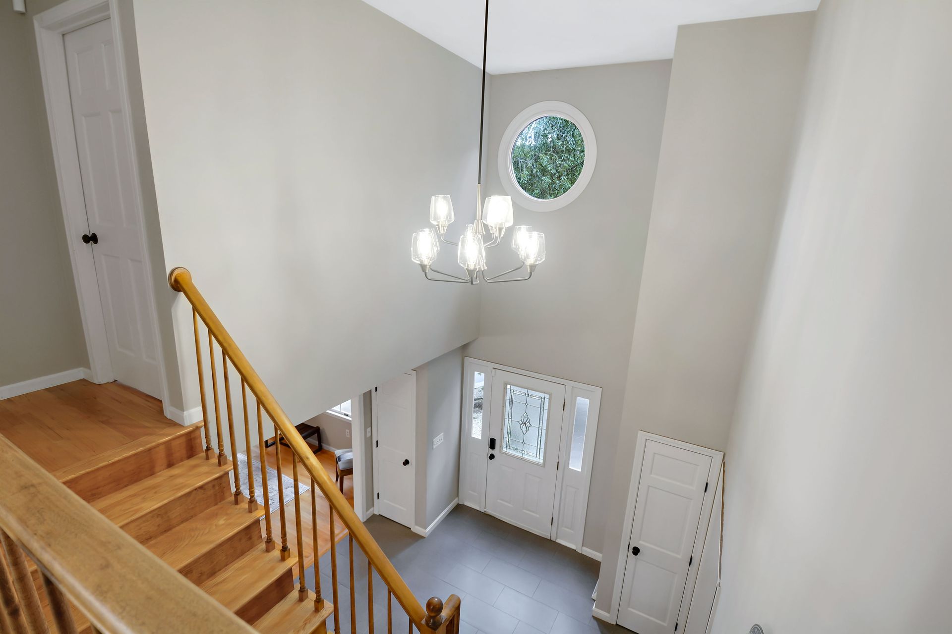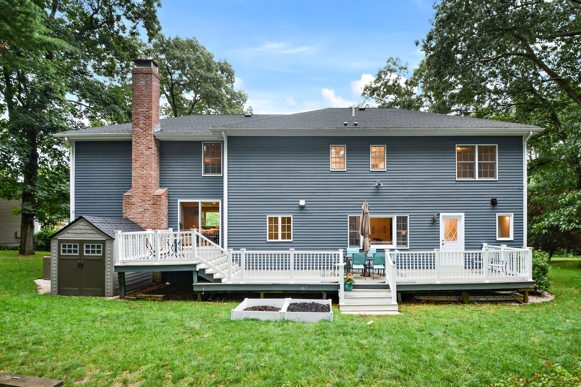 Awesome location, nestled in a serene cul-de-sac of four homes. Sitting on approximately 0.47 acres, this four bedroom, three and a half bath, two car garage home is surrounded by lush greenery. Greeted by a two-story grand foyer, a dining room and a formal room with a fireplace. The spacious eat-in kitchen features honed granite countertop, an induction stove and stainless-steel appliances. Enjoy Fall evenings in your inviting and enormous step-up living room with a cozy fireplace. Access to the large deck from either end of the house plus a bathroom round out this amazing first floor.