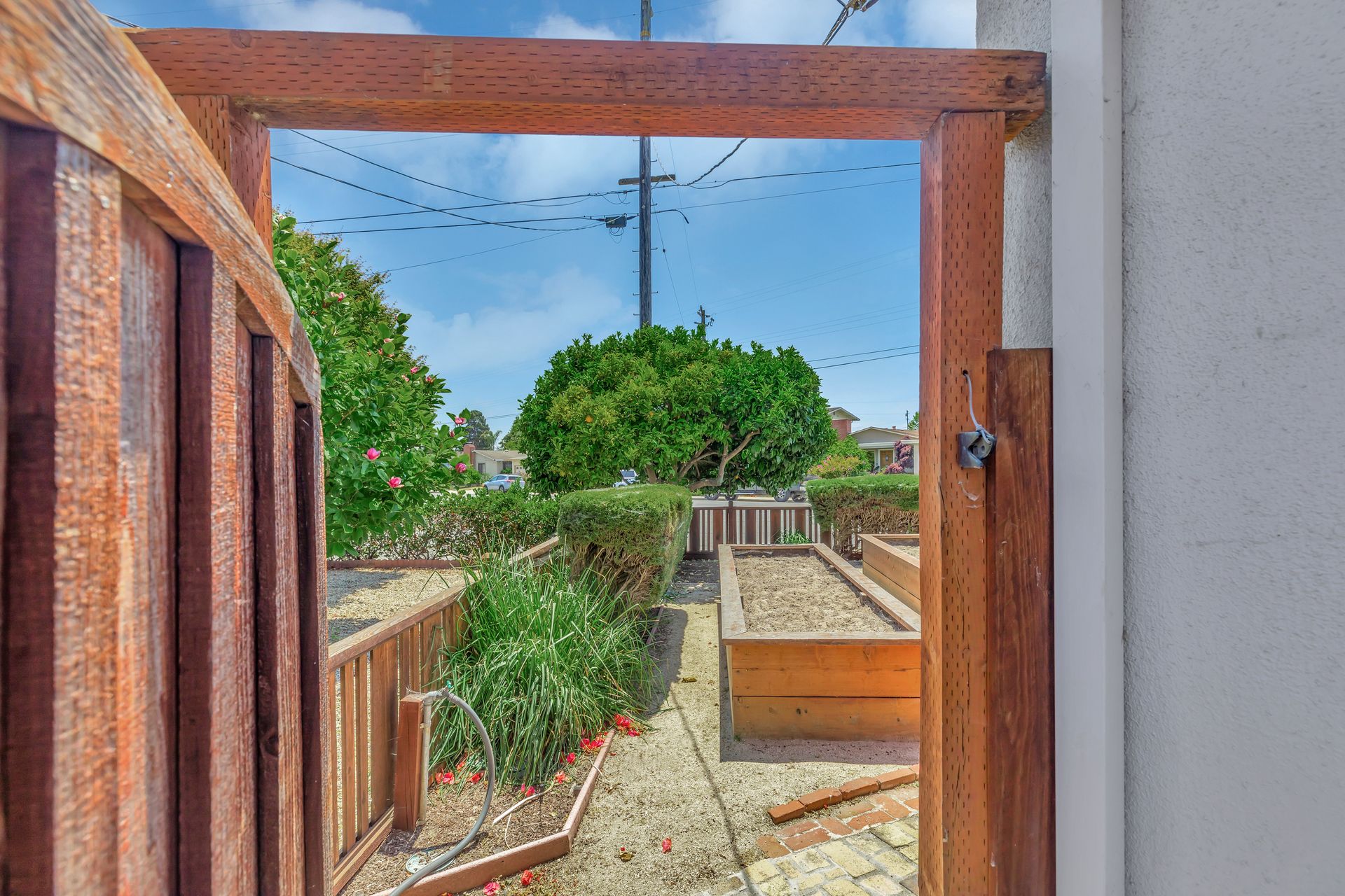 Welcome to one of the most desired neighborhoods of Watsonville. Here you'll discover a home that radiates charm and tranquility. Nestled among the picturesque streets, this inviting dwelling offers a cozy and comforting retreat, you will love the home's stylish exterior with a manicured yard and eclectic turquoise door. Inside are creamy interiors with beautiful wood floors. Large windows with gorgeous shutters allowing natural light to fill the rooms. The living room is a cozy sanctuary, where you’ll enjoy movie nights or a nice fire. The kitchen is equipped with newer appliances and ample counter space. Each room offers a tranquil ambiance, ensuring a good night's sleep and refreshed start to the day. There is a beautifully remodeled bathroom with lots of storage and designer finishes. The large garden beds await your green thumb and the large garage is great for storage or projects. Well taken care of and much loved, here is where you will want to call home! 3BR/1 BA 1040 sq ft- Lot Size 5576 sq ft