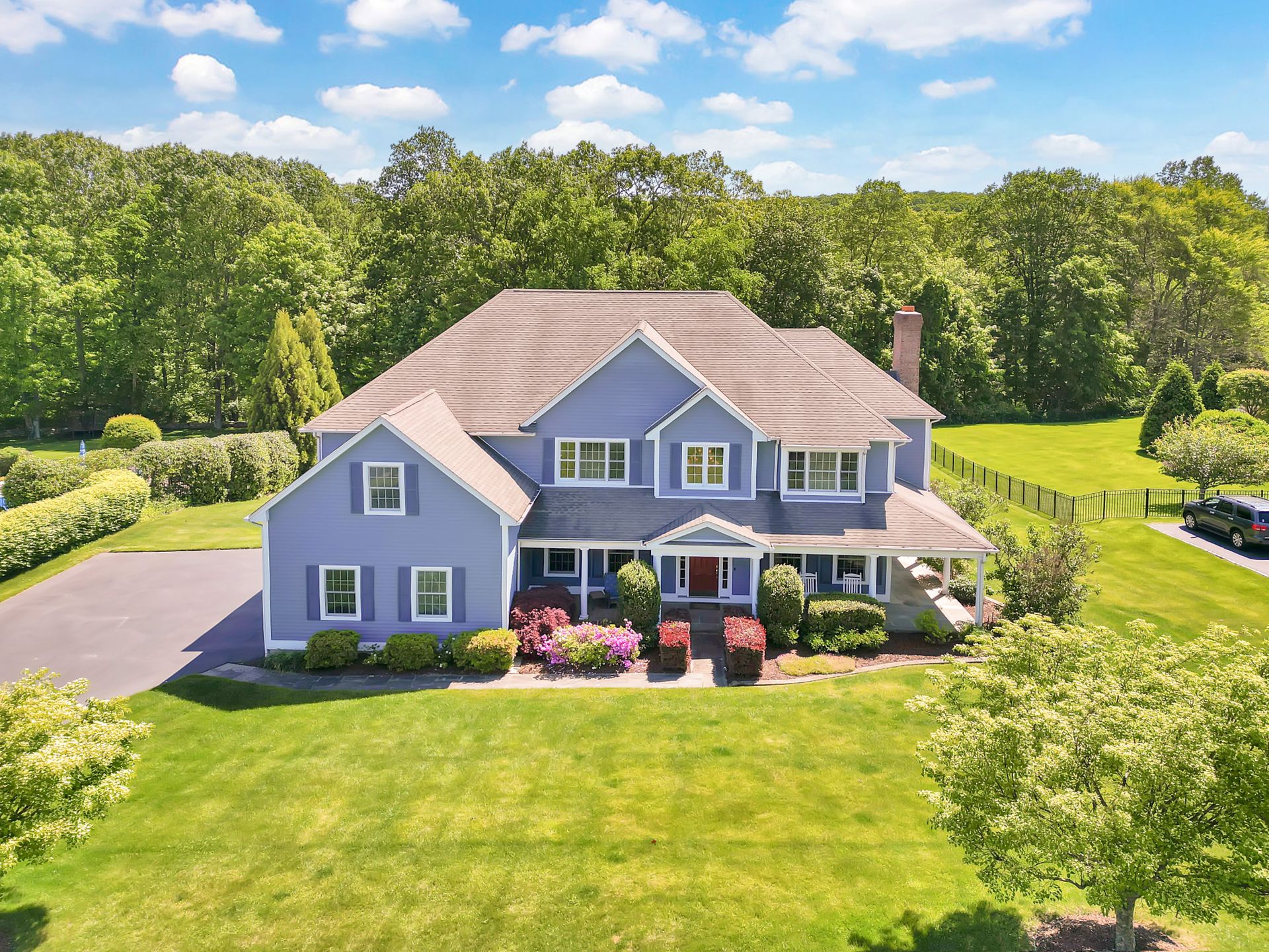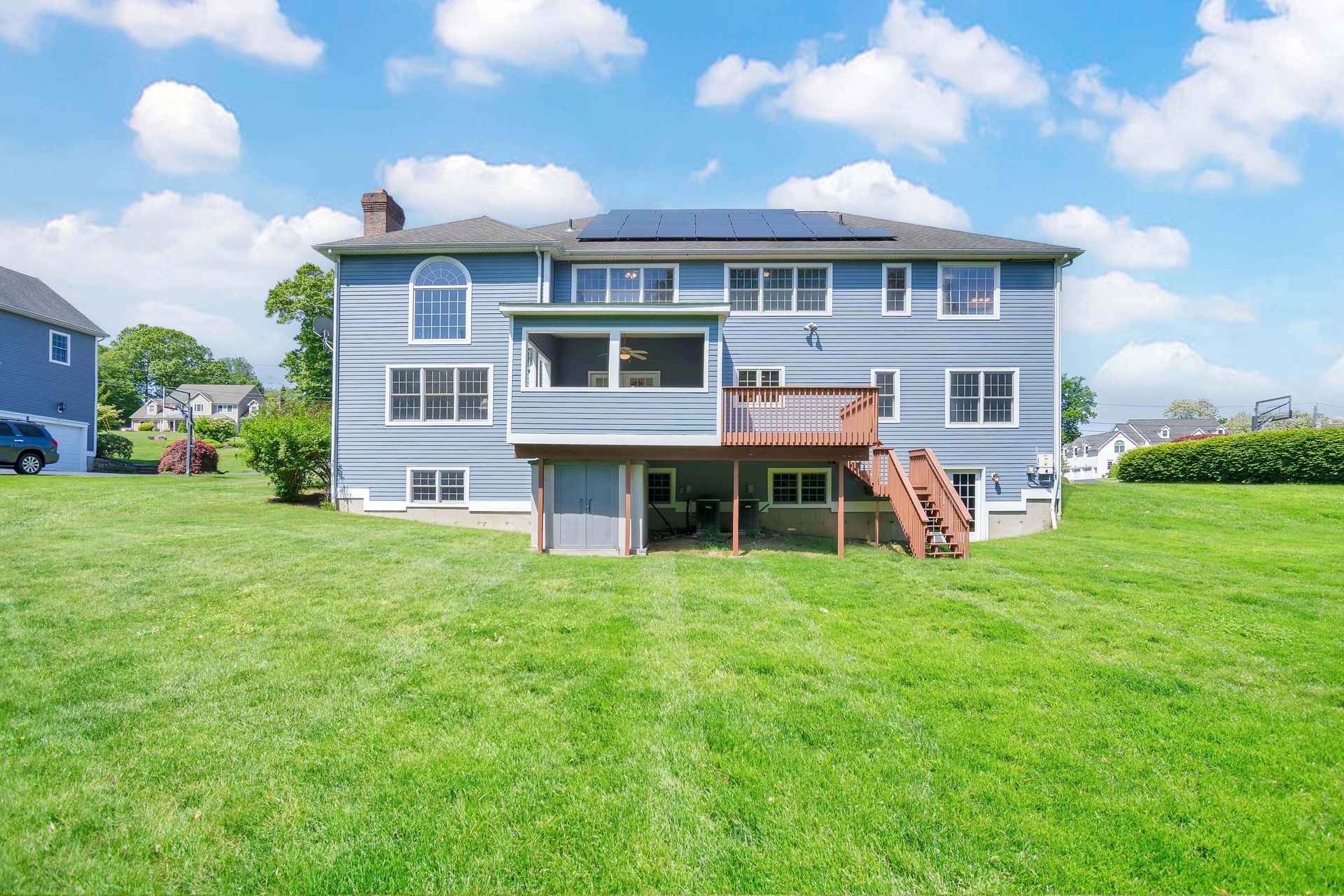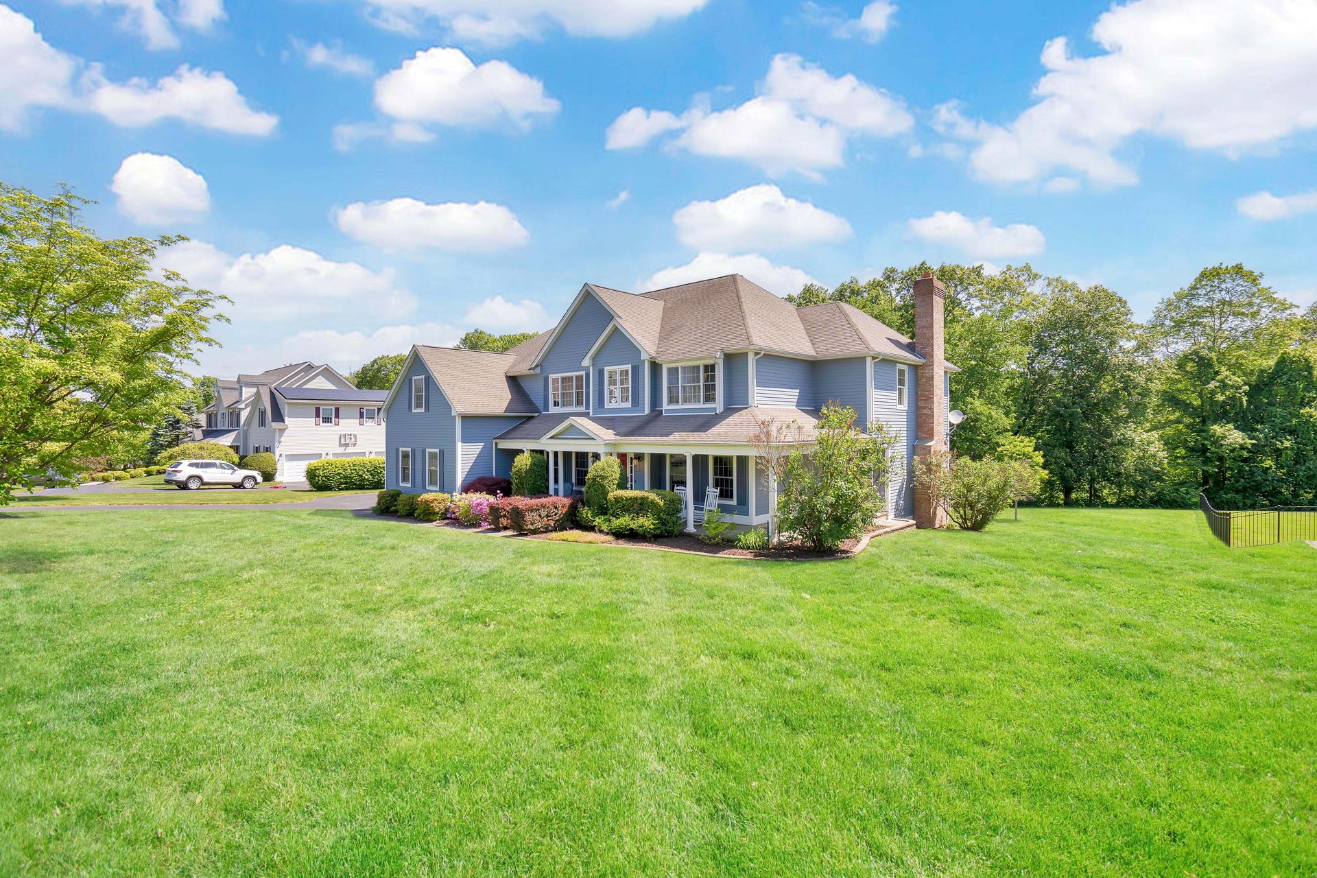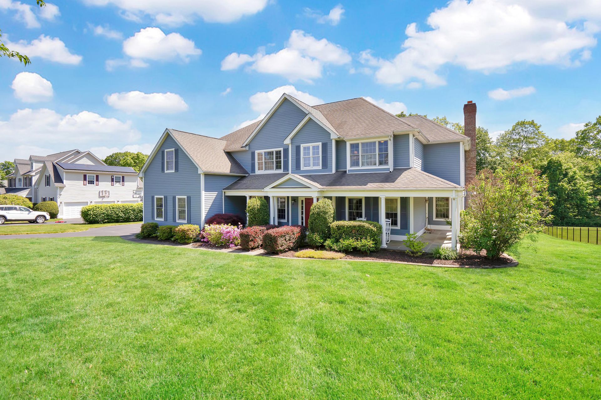 Call Fredda for a private showing of this lovely home - 203-521-0300. Showings start Friday, 06/30, and we will hold an open house on Saturday, 7/1, from 10:00 am - 12:00 pm. Come and see! You will be immediately impressed with this beautiful 2002 built almost 4,000 sf 5 br, 4.5 bath colonial featuring a delightful wrap-around front porch with natural stone floor, 3 car garage, and level .81-acre property in delightful Jenny Ridge Estates, a desirable newer community of exceptional homes. Move right into this elegant home, perfect for entertaining with a spacious kitchen with granite counters open to the delightful two-story family room with a fieldstone fireplace and a spacious covered deck. The lovely yard features many flowering plantings, an invisible fence, and irrigation providing year-round fun. The terrific ensuite main-level bedroom provides a wonderful guest or home office space. The vast lower level offers direct walk-out access to the terrific property and full-sized windows, providing many finishing options. The primary bedroom suite has a spacious sitting area, tray ceilings, a custom-built walk-in closet, and a large bathroom. Living is easy with three additional 2nd-floor bedrooms, one with an ensuite bathroom and the other two with a jack-and-jill bathroom. This sunny home features stunning architecture and space with 9-foot ceilings, a great library, and a formal dining room - all featuring many unique accents, moldings, and details. Freshly painted throughout, this lovely home features oversized windows, gleaming hardwood floors, and new carpeting. You will love the clean elegance of this unique home and all of the extras it provides. Special features include underground utilities, public sewers (without any assessment), clapboard siding, and energy-efficient solar panels. This award-winning Daniels Farm Elementary neighborhood home is near town pools, public golf, and walking/biking trails. It also enjoys easy access to shops and commuting, making this delightful home a winning option.