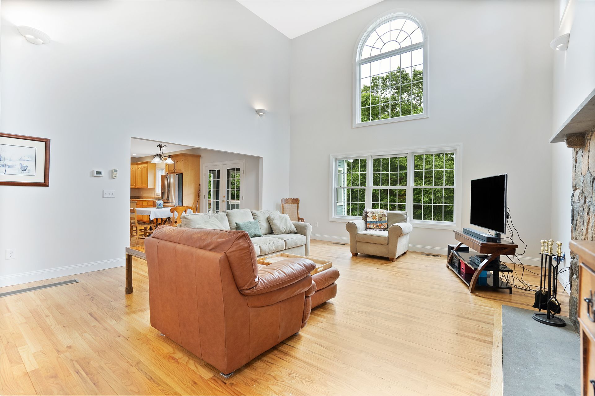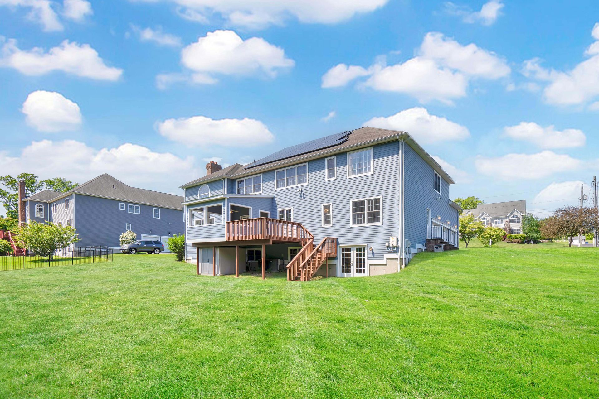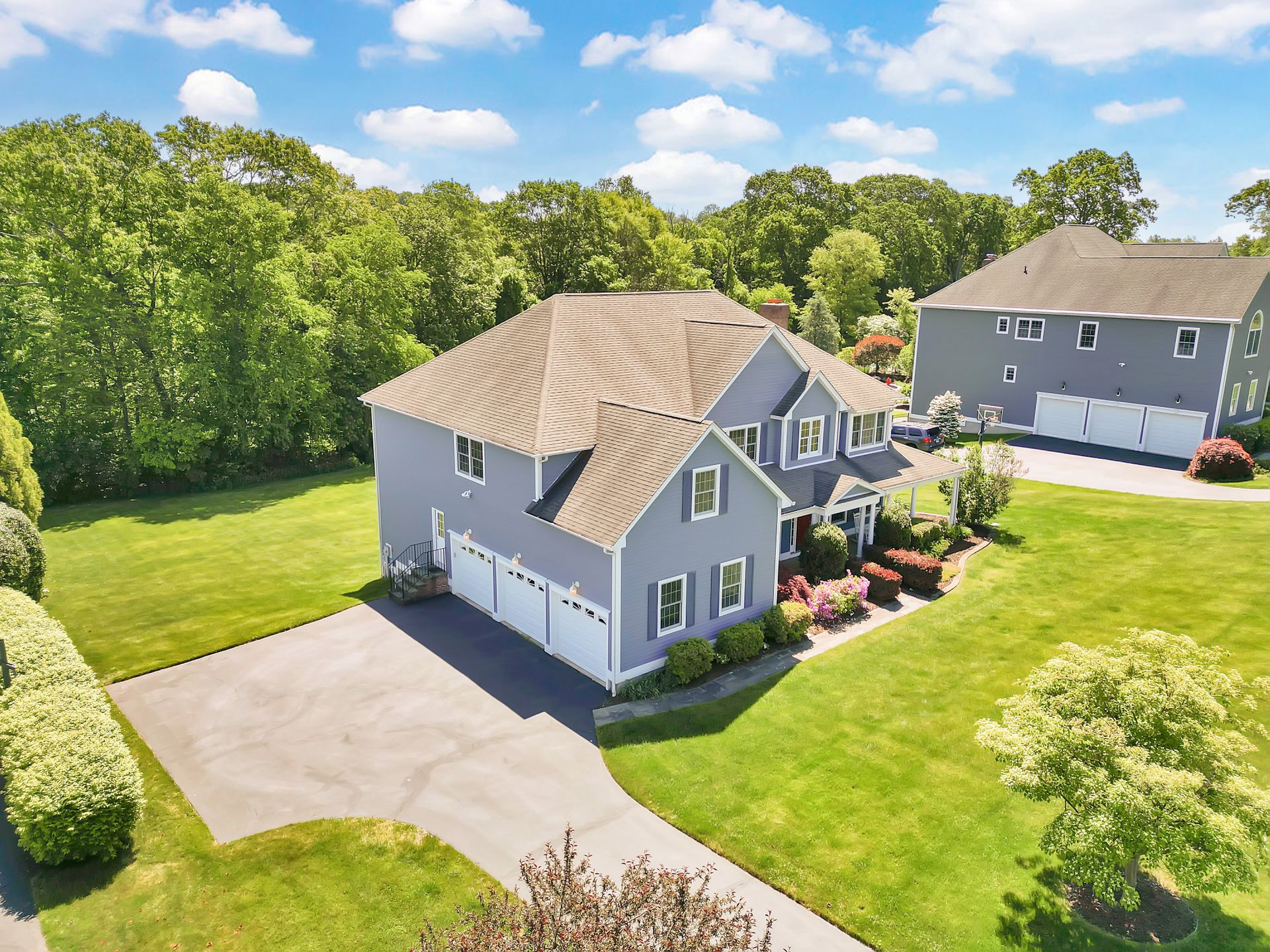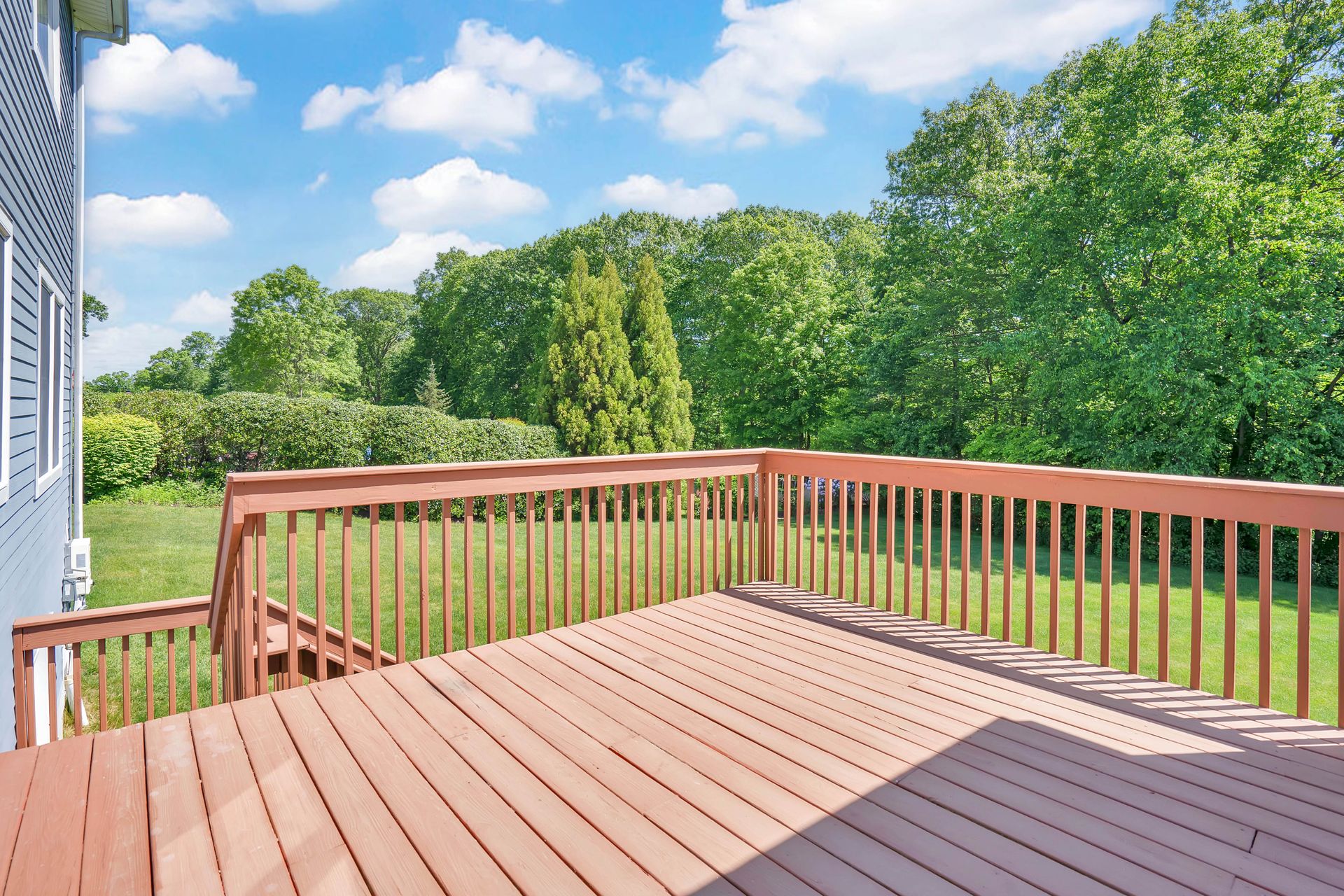 Call Fredda for a private showing of this lovely home - 203-521-0300. Showings start Friday, 06/30, and we will hold an open house on Saturday, 7/1, from 10:00 am - 12:00 pm. Come and see! You will be immediately impressed with this beautiful 2002 built almost 4,000 sf 5 br, 4.5 bath colonial featuring a delightful wrap-around front porch with natural stone floor, 3 car garage, and level .81-acre property in delightful Jenny Ridge Estates, a desirable newer community of exceptional homes. Move right into this elegant home, perfect for entertaining with a spacious kitchen with granite counters open to the delightful two-story family room with a fieldstone fireplace and a spacious covered deck. The lovely yard features many flowering plantings, an invisible fence, and irrigation providing year-round fun. The terrific ensuite main-level bedroom provides a wonderful guest or home office space. The vast lower level offers direct walk-out access to the terrific property and full-sized windows, providing many finishing options. The primary bedroom suite has a spacious sitting area, tray ceilings, a custom-built walk-in closet, and a large bathroom. Living is easy with three additional 2nd-floor bedrooms, one with an ensuite bathroom and the other two with a jack-and-jill bathroom. This sunny home features stunning architecture and space with 9-foot ceilings, a great library, and a formal dining room - all featuring many unique accents, moldings, and details. Freshly painted throughout, this lovely home features oversized windows, gleaming hardwood floors, and new carpeting. You will love the clean elegance of this unique home and all of the extras it provides. Special features include underground utilities, public sewers (without any assessment), clapboard siding, and energy-efficient solar panels. This award-winning Daniels Farm Elementary neighborhood home is near town pools, public golf, and walking/biking trails. It also enjoys easy access to shops and commuting, making this delightful home a winning option.