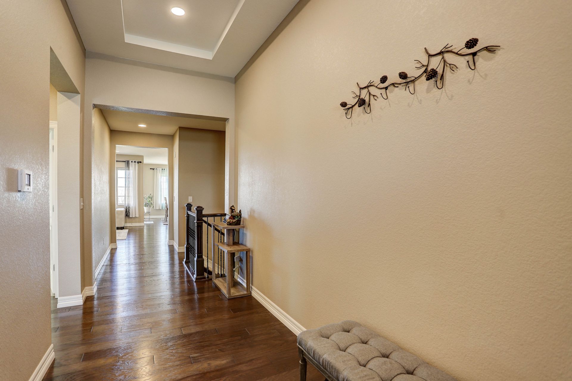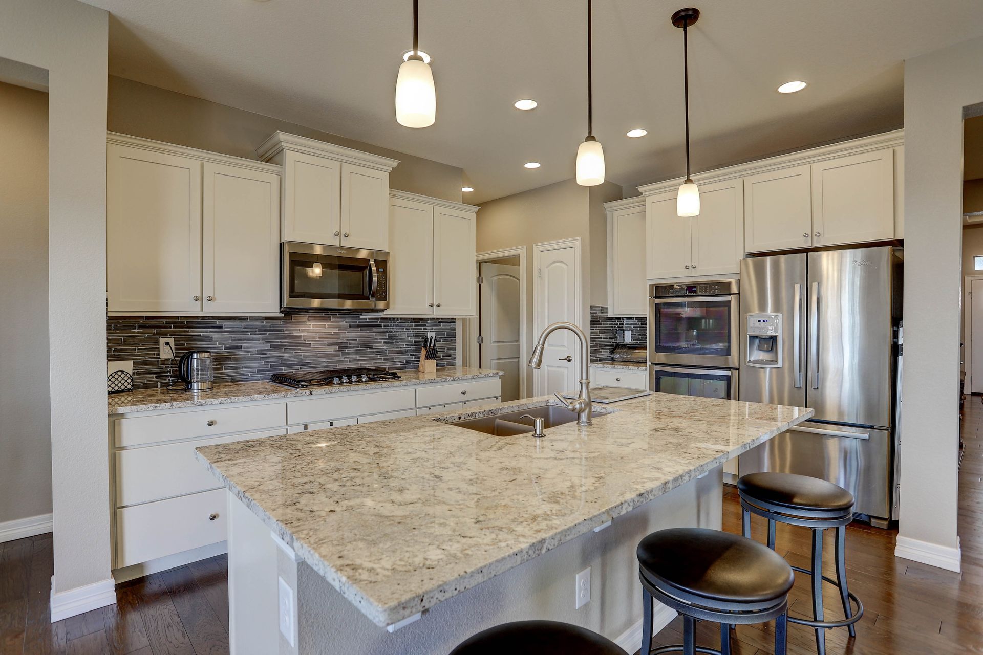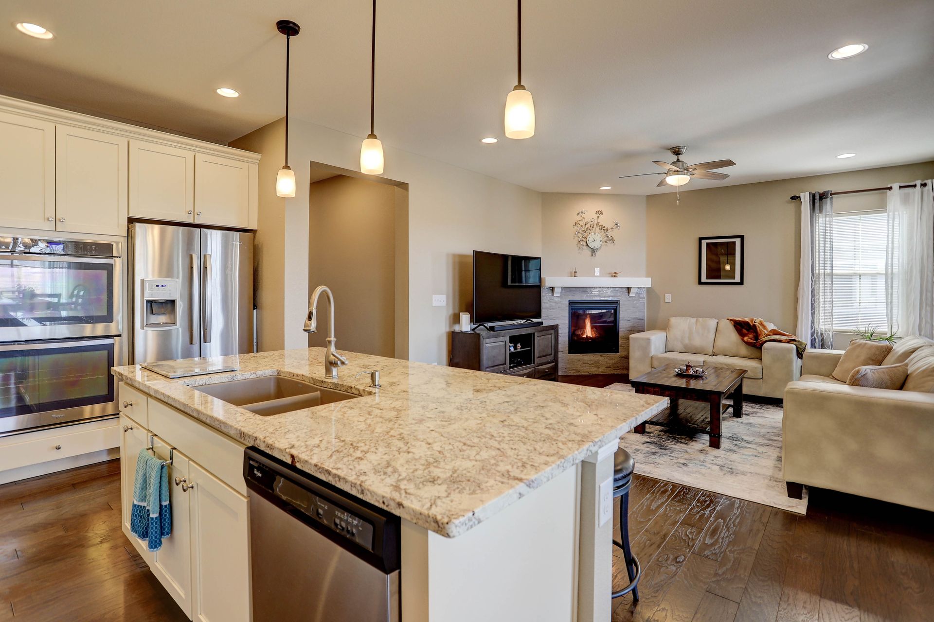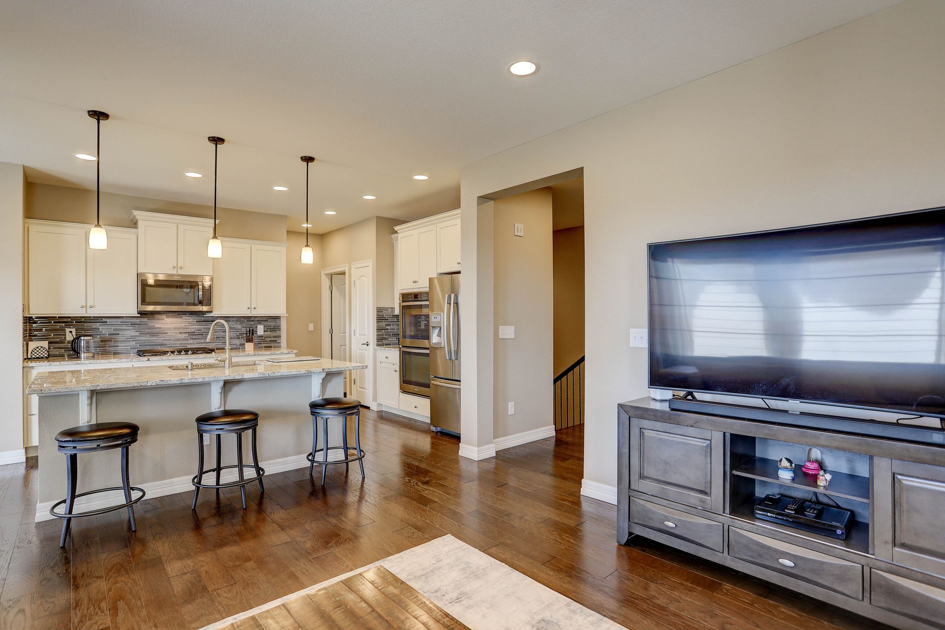 Beautifully finished ranch style home! The grand entry offers wood floors throughout, iron railings and an open floor plan. The stunning kitchen features a large island with granite counters, stainless steel appliances, a gas cooktop, custom backsplash and double ovens. The main floor primary suite boasts a luxurious oversized shower, a walk-in closet and access to the laundry area. The professionally finished large basement includes a huge recreation area, a large bedroom and a three-fourths bath. Conclude with a covered patio and fenced-in yard backing to open space. Welcome home!