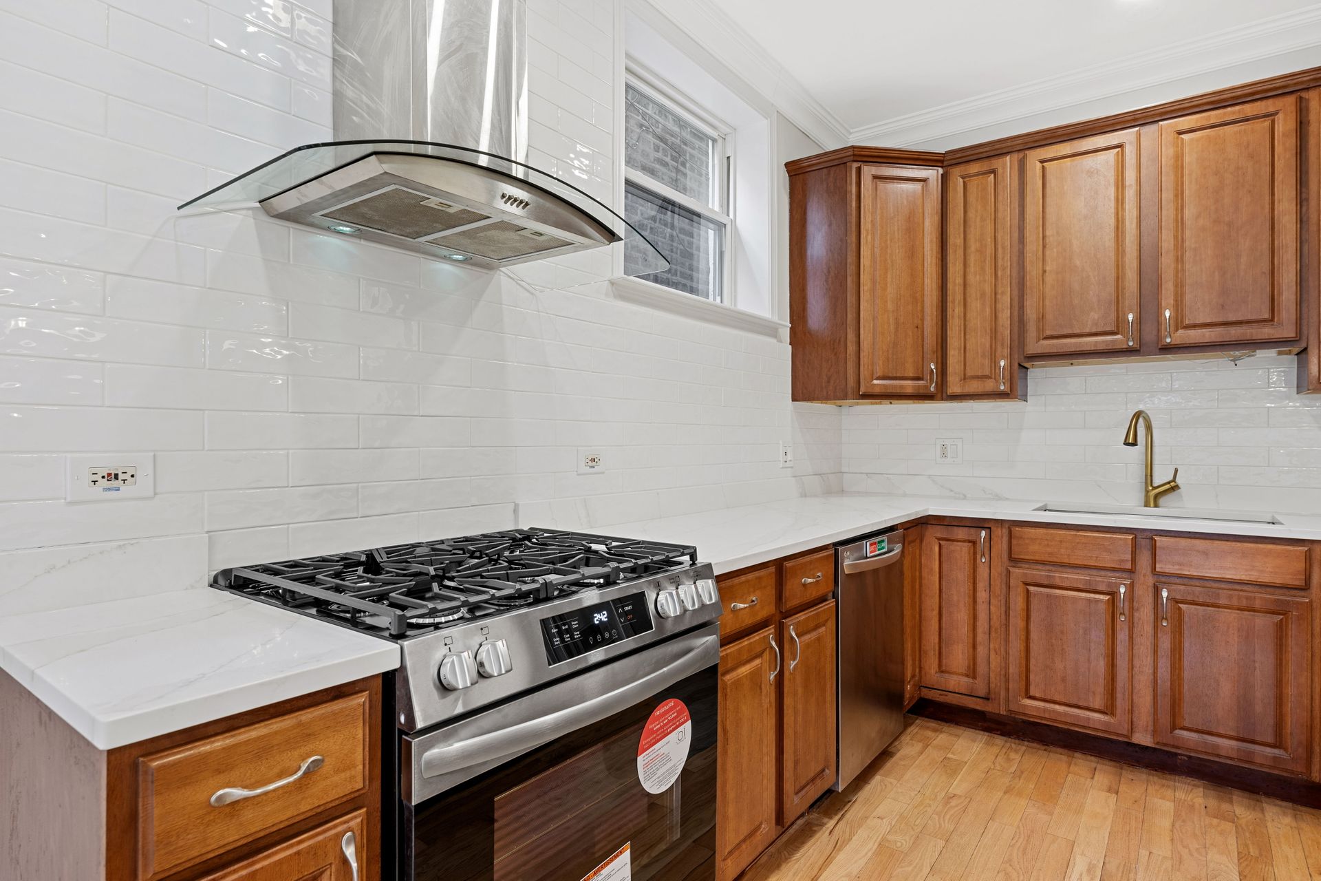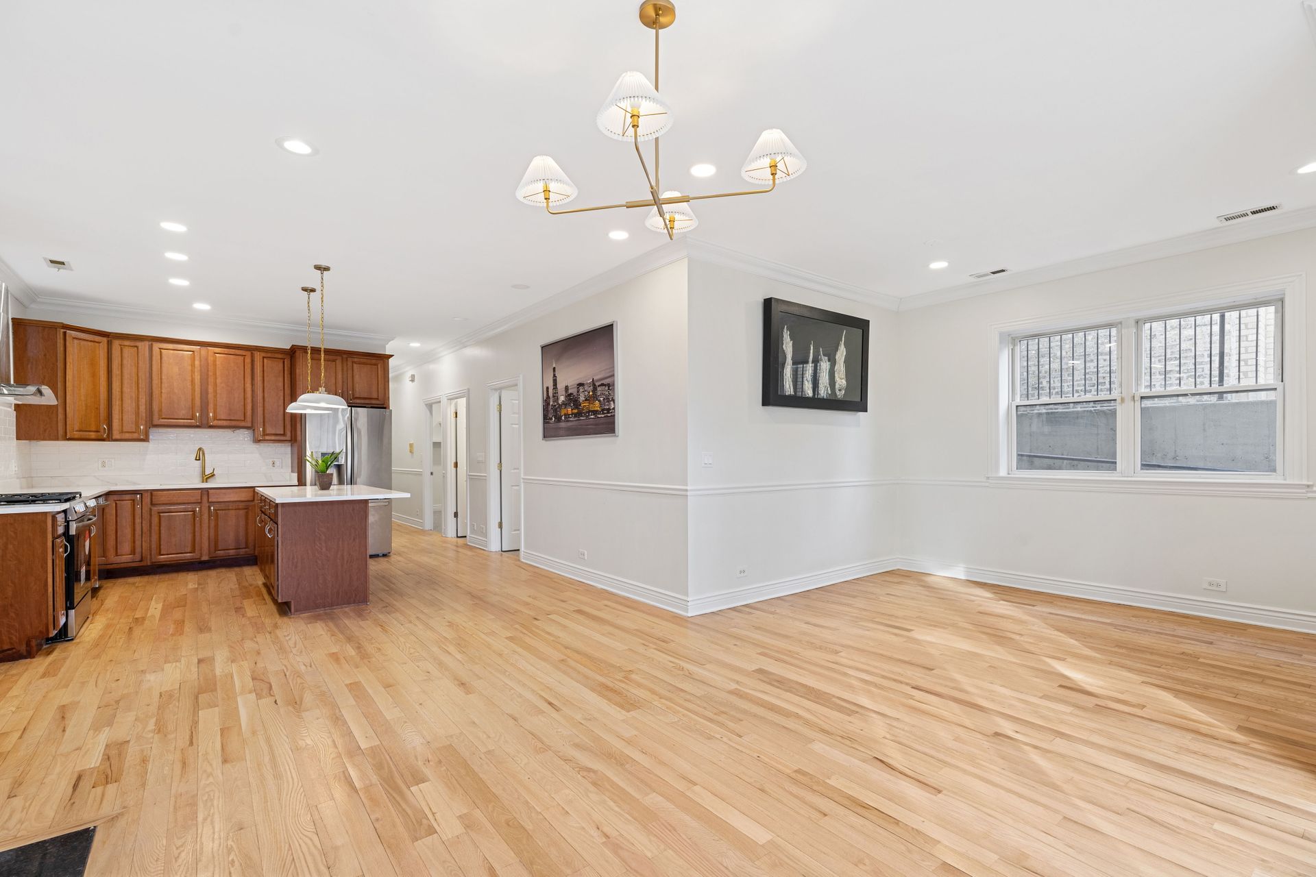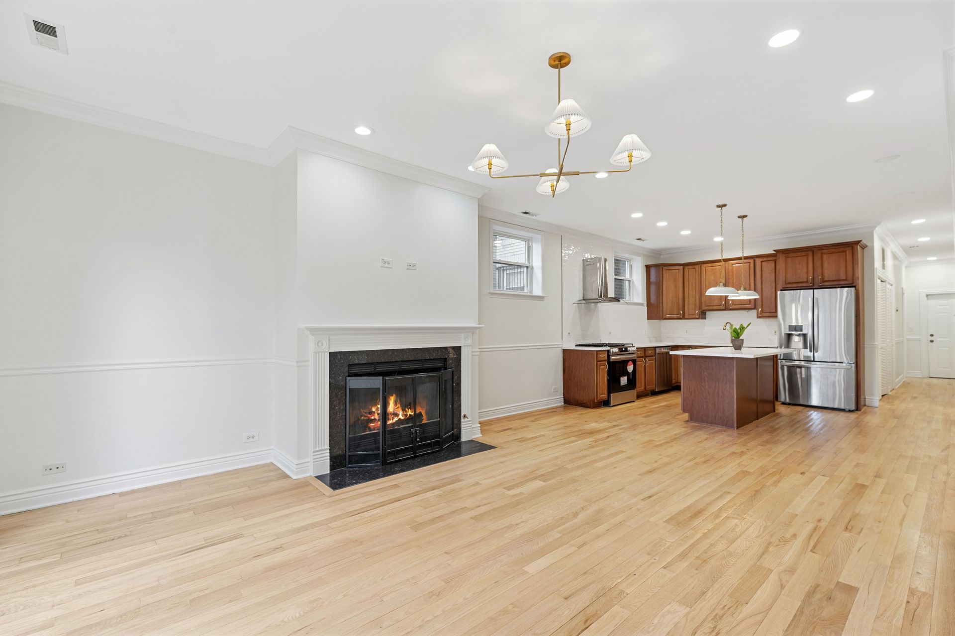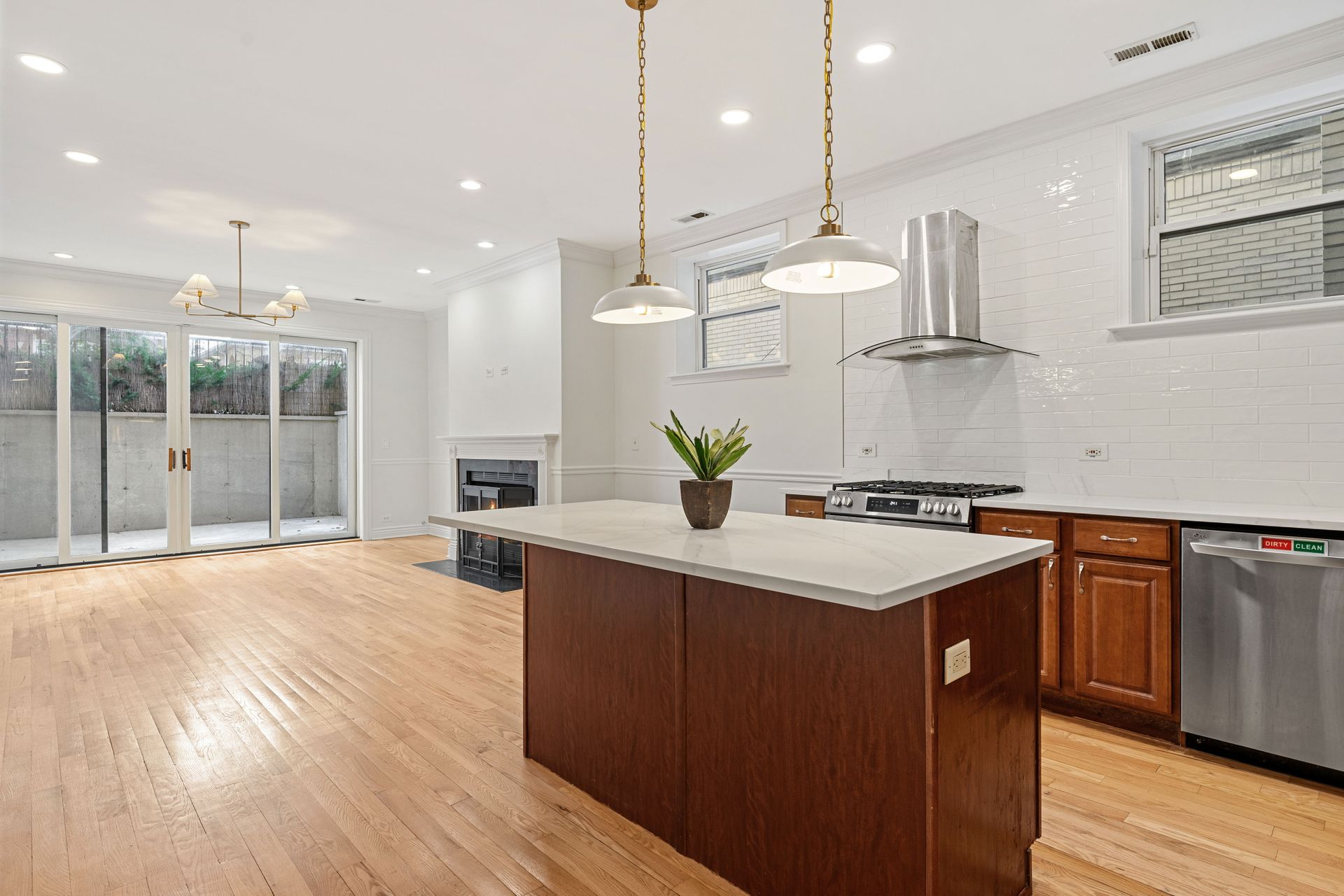 This freshly updated 3-bedroom, 2-bathroom home is truly turnkey, featuring an open floor plan across 1,600 sq ft. Hardwood floors flow throughout, leading to a modern kitchen with stainless steel appliances and a spacious island, perfect for casual meals or entertaining. The living room centers around a cozy gas fireplace, ideal for unwinding. Convenience is key with an in-unit washer and dryer. Outside, enjoy private front and back patios suited for grilling or relaxing, plus gated, secure parking for two cars. Situated in a great location near parks, grocery stores, and dining. Modern style meets ideal location - all that's missing is you!