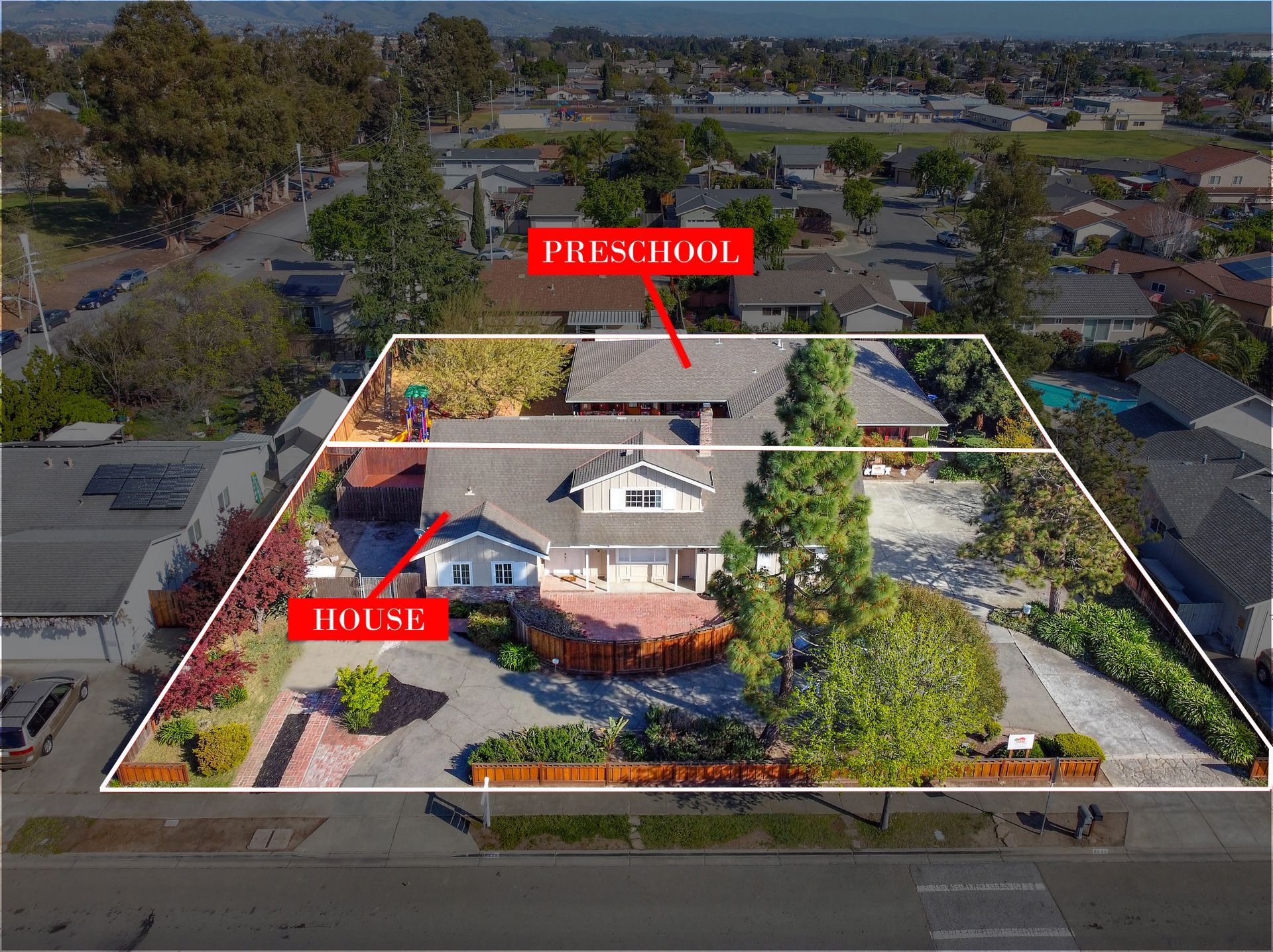 This is a unique opportunity to own a home and a separate school in the Bay Area! Located next to Newark’s Birch Grove Park, this property includes a single-family home of approximately 2,966 square feet on the front of the lot and a separate detached school building of approximately 2,700 square feet in the back, currently operating as a preschool. The two-story four bedroom, two and one-half bathroom home offers, on the first floor, two bedrooms, one and one-half bathrooms, a front living room with a fireplace, a family room, a large kitchen with a dining area and a spacious bonus room. On the second floor, there are two more bedrooms, one full bathroom and a large bonus room. The house has a large two-car garage and a yard with a lovely deck. The preschool in the back is currently leased for $4,000 per month with a rent increase currently due. The property is zoned for school but check with the city for other possible uses. All these are in a tranquil neighborhood close to shops, local eateries, parks, sports courts, Newpark Mall and schools. Newark is a vibrant city and one of the best commute locations in the East Bay, with easy access to 880, 84/Dumbarton Bridge and the BART station.