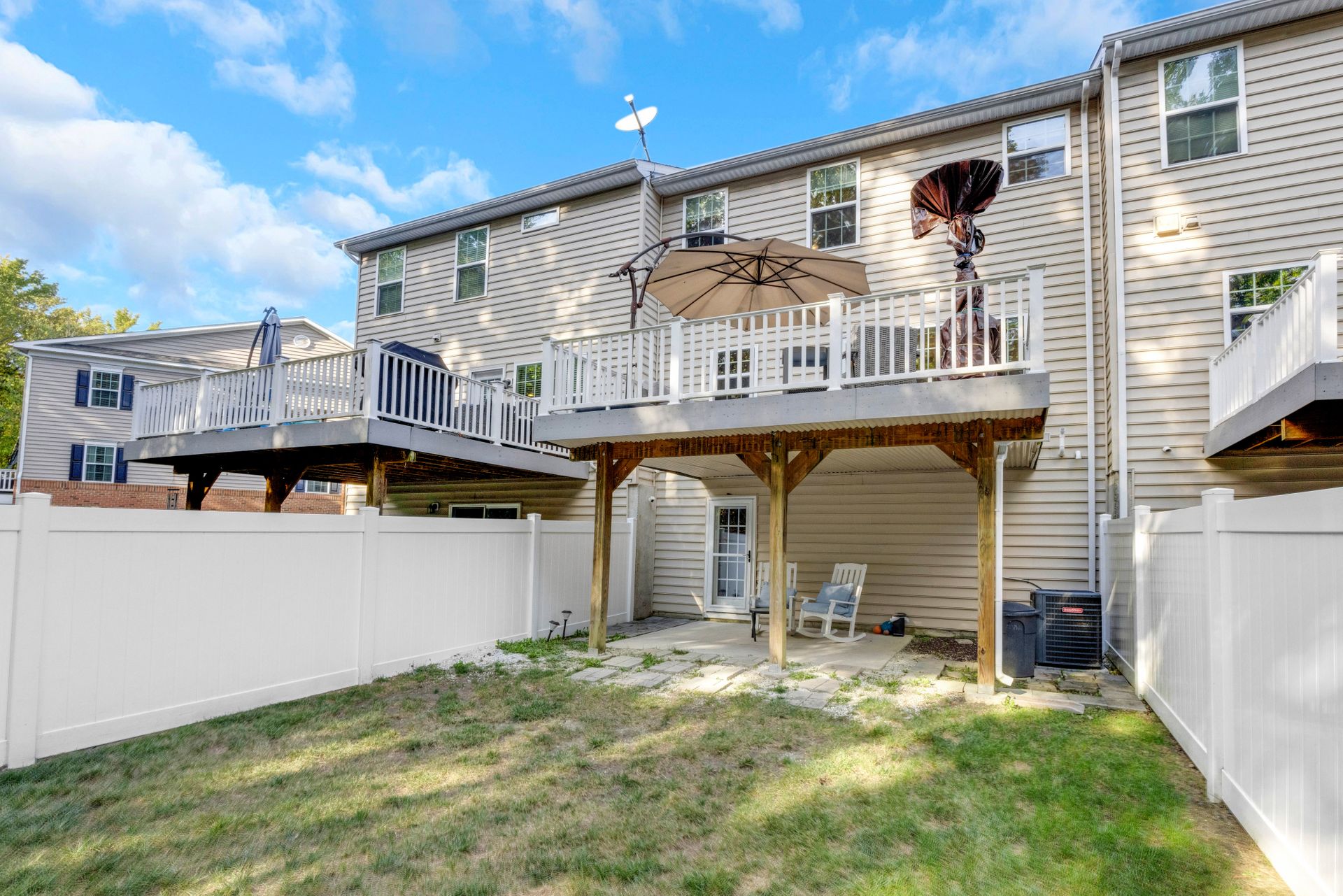 Welcome to this exceptional three-story townhome in the highly coveted Reserve at Marlton community! Bursting with high-end upgrades and thoughtful finishes, this home offers both elegance and comfort at every turn. Enter into an expanded, sun-drenched open concept living space. The gourmet kitchen is a chef's dream, boasting 42-inch cabinets, granite countertops, a large center island and a pantry - all complemented by stunning hardwood floors and stainless steel appliances. The gas range and luxurious finishes make cooking a delight, while the oversized deck, just off the kitchen, is perfect for morning coffees or hosting evening get-togethers. The living room exudes charm with its rich hardwood flooring, crown molding and a beautiful bay window that lets in ample natural light. The adjoining dining room is equally impressive, offering a bright open space for entertaining, along with a convenient half bath. Upstairs, the primary suite is nothing short of a sanctuary. Retreat to your spa-like bathroom featuring dual vanities, a soaking tub, a tiled shower and a spacious walk-in closet. Two additional bedrooms provide versatility, and the second full bath is beautifully appointed. The washer and dryer are conveniently located on the bedroom level, making laundry day a breeze. The lower level offers even more living space with a versatile bonus room that opens up to a covered patio and a private, fenced-in backyard that backs to serene, protected woods. Additional highlights include a two-car garage with an electric opener, a handy workbench and bonus storage under the stairs. Nestled in a beautiful neighborhood with tranquil ponds and fountains, the Reserve at Marlton offers peaceful living with all the conveniences nearby. Enjoy top-rated schools and easy access to major highways (Routes 70, 73, 296, NJ Turnpike), as well as shopping, dining and more. Don't miss your chance to own this stunning townhome!