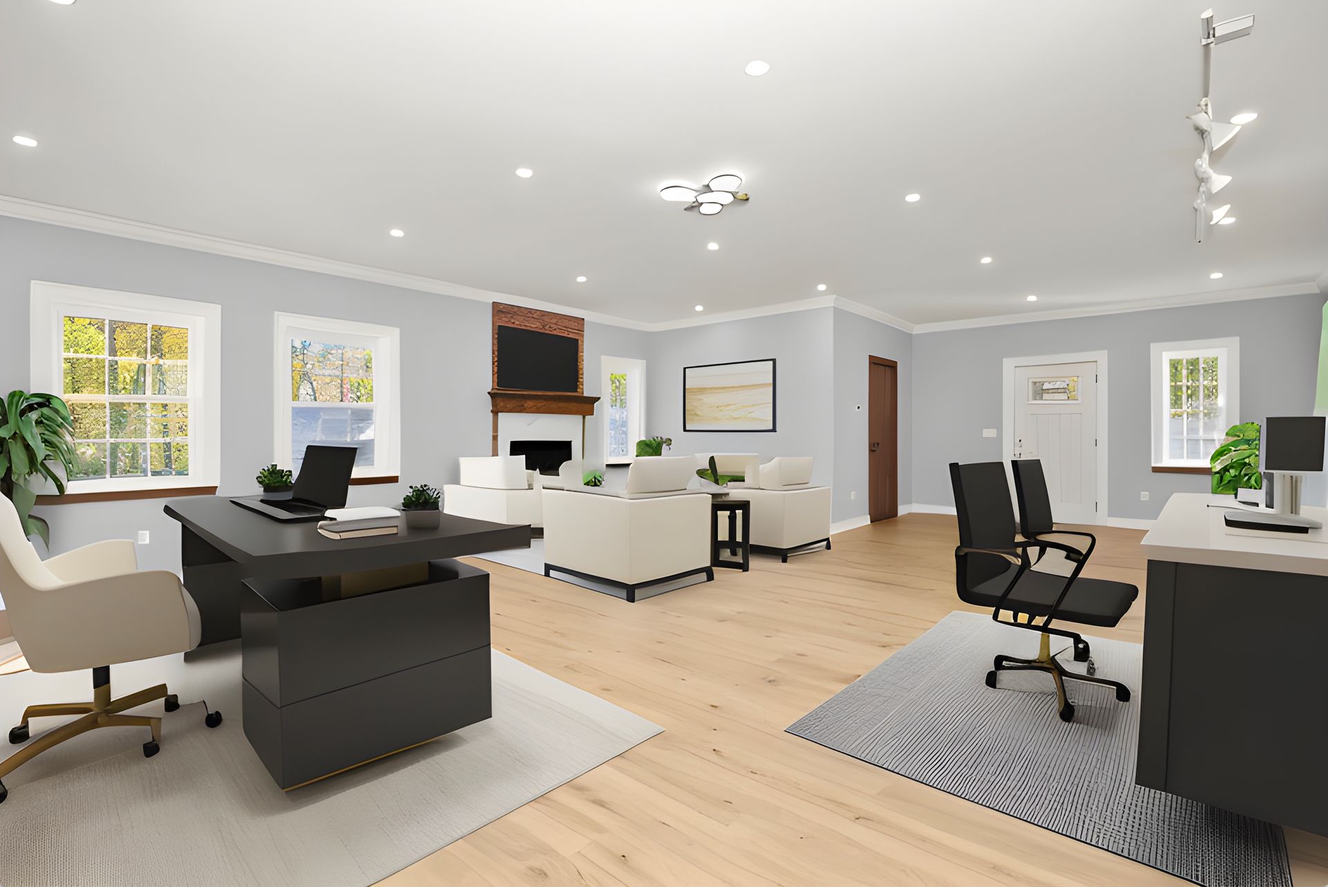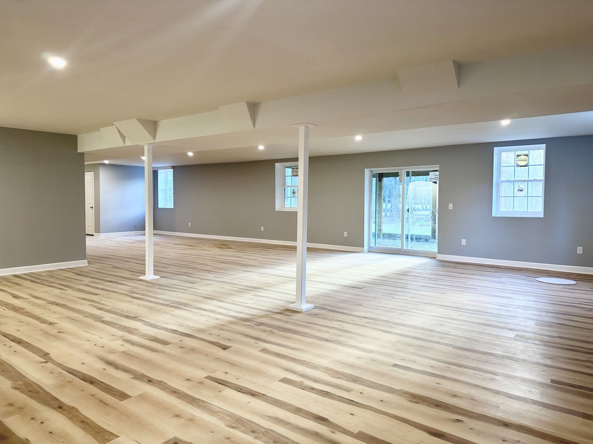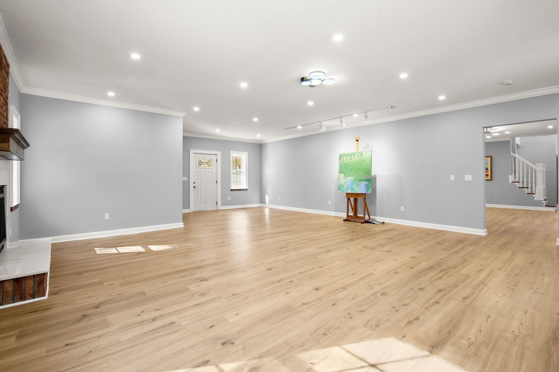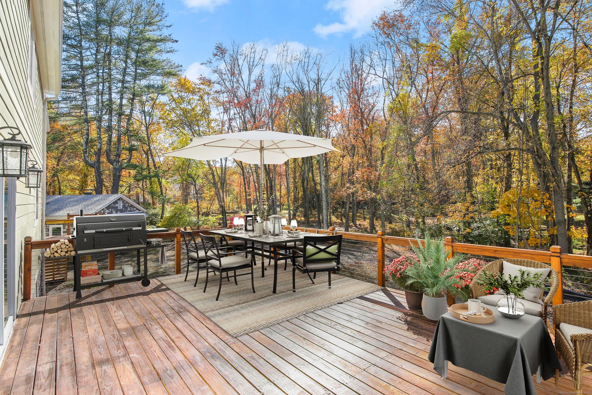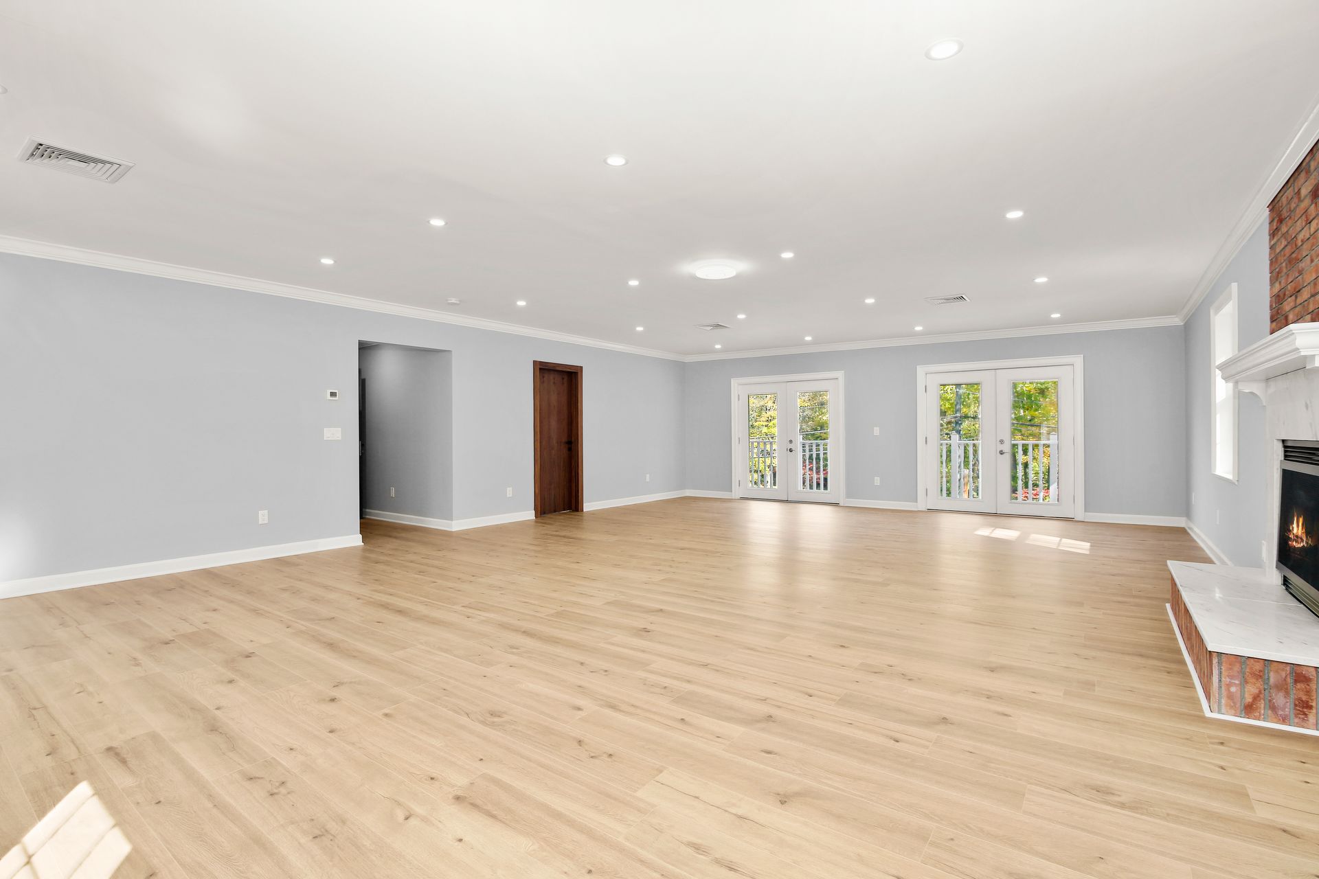 Upon arrival, the semi-circular driveway and bright 2-story foyer set the stage for the elegance within. The open living spaces are bathed in natural light, featuring European cabinetry, custom doors, and stunning built-ins. A grand great room with a fireplace, an elegant dining area, and a versatile flex room—perfect for a family room, artist studio, or home office—provide a range of possibilities. The flex room, complete with a separate entrance, fireplace, deck, and full bath, offers privacy and convenience for various lifestyle needs.