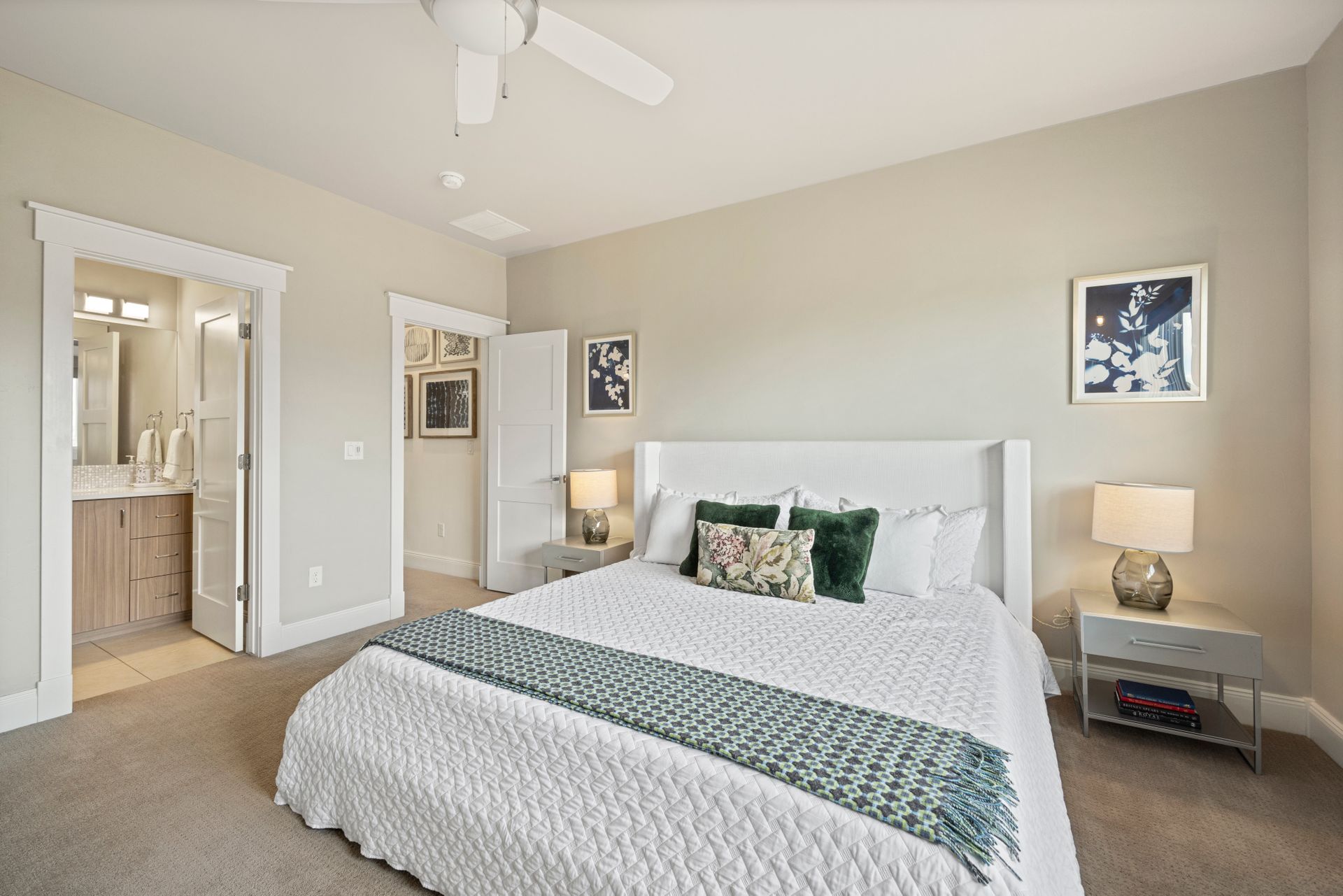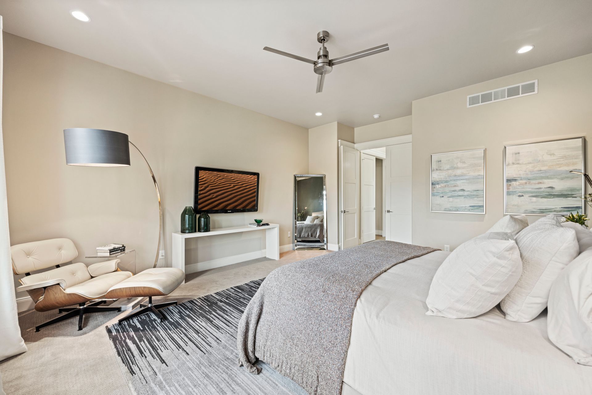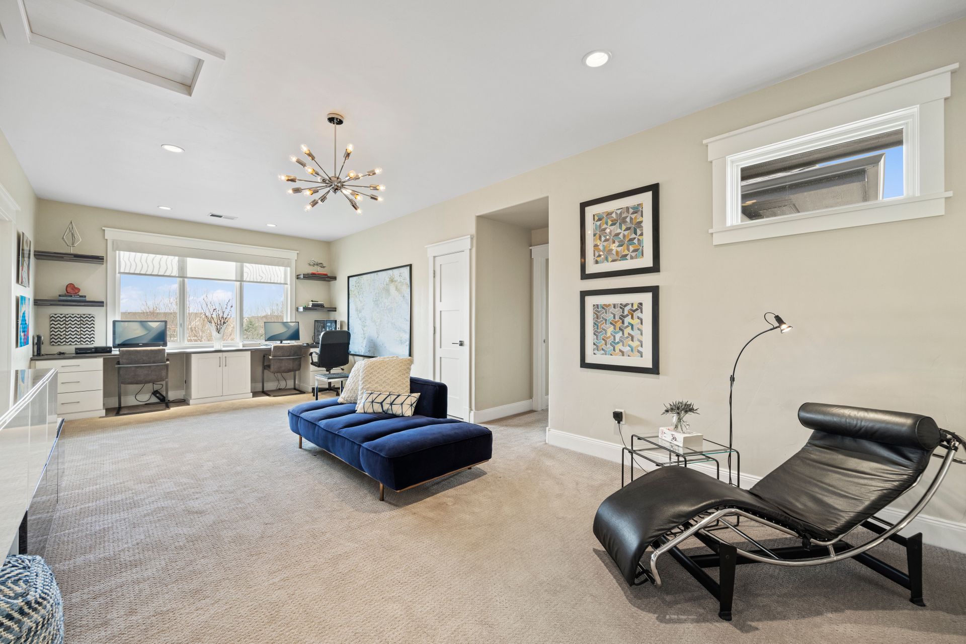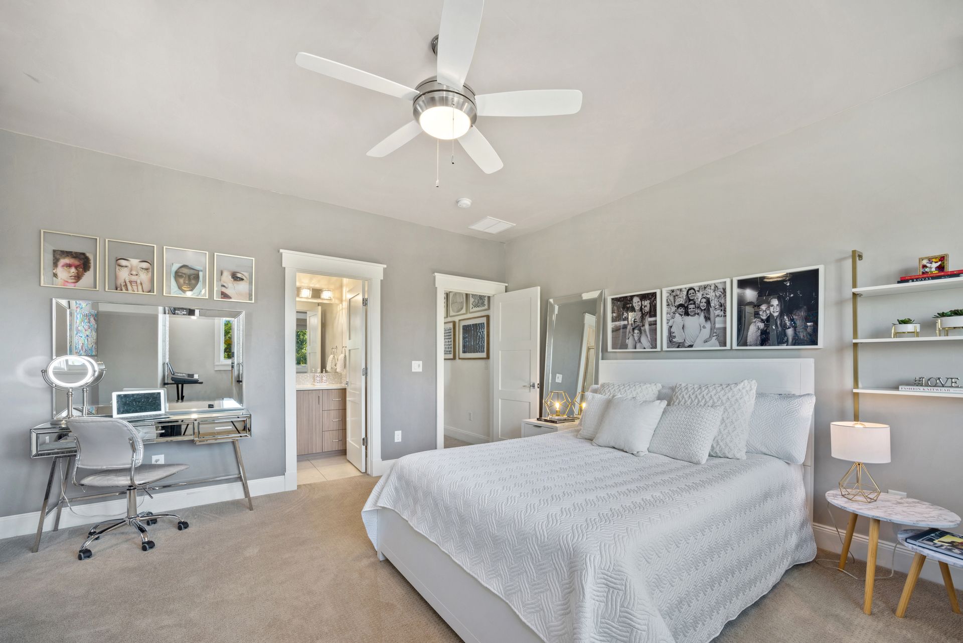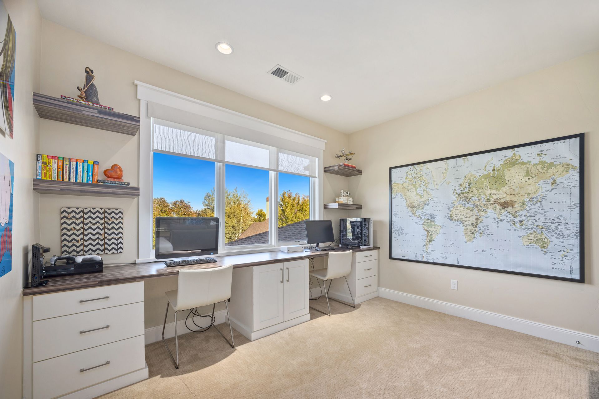 The luxurious primary suite features a spa-inspired en-suite bath and a custom walk-in closet with built-ins and a sitting area. Three additional en-suite bedrooms, each with its own bath and walk-in closet, ensure comfort and privacy for guests. A sophisticated executive office on the main level provides a refined workspace, while a loft area offers flexible living space.