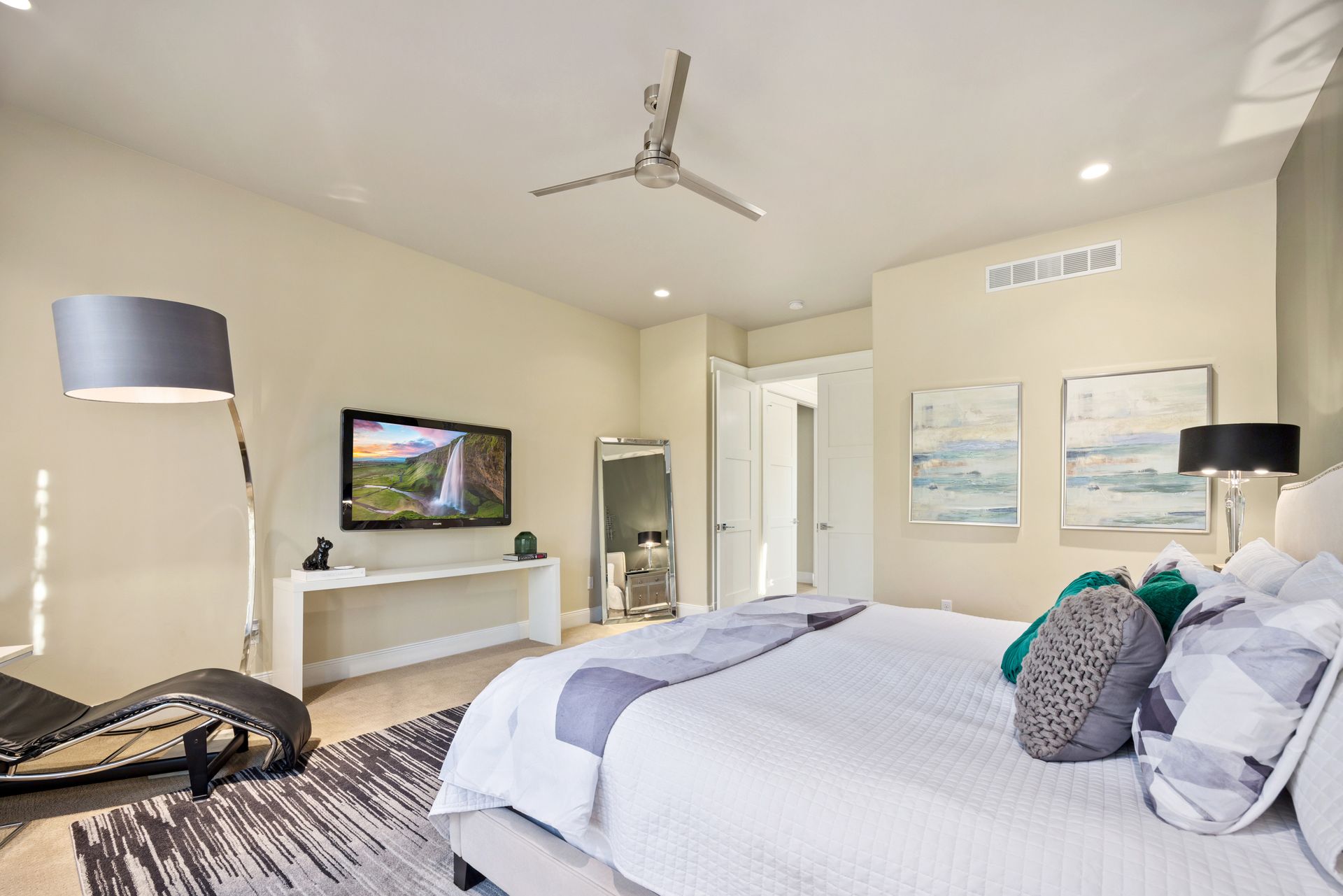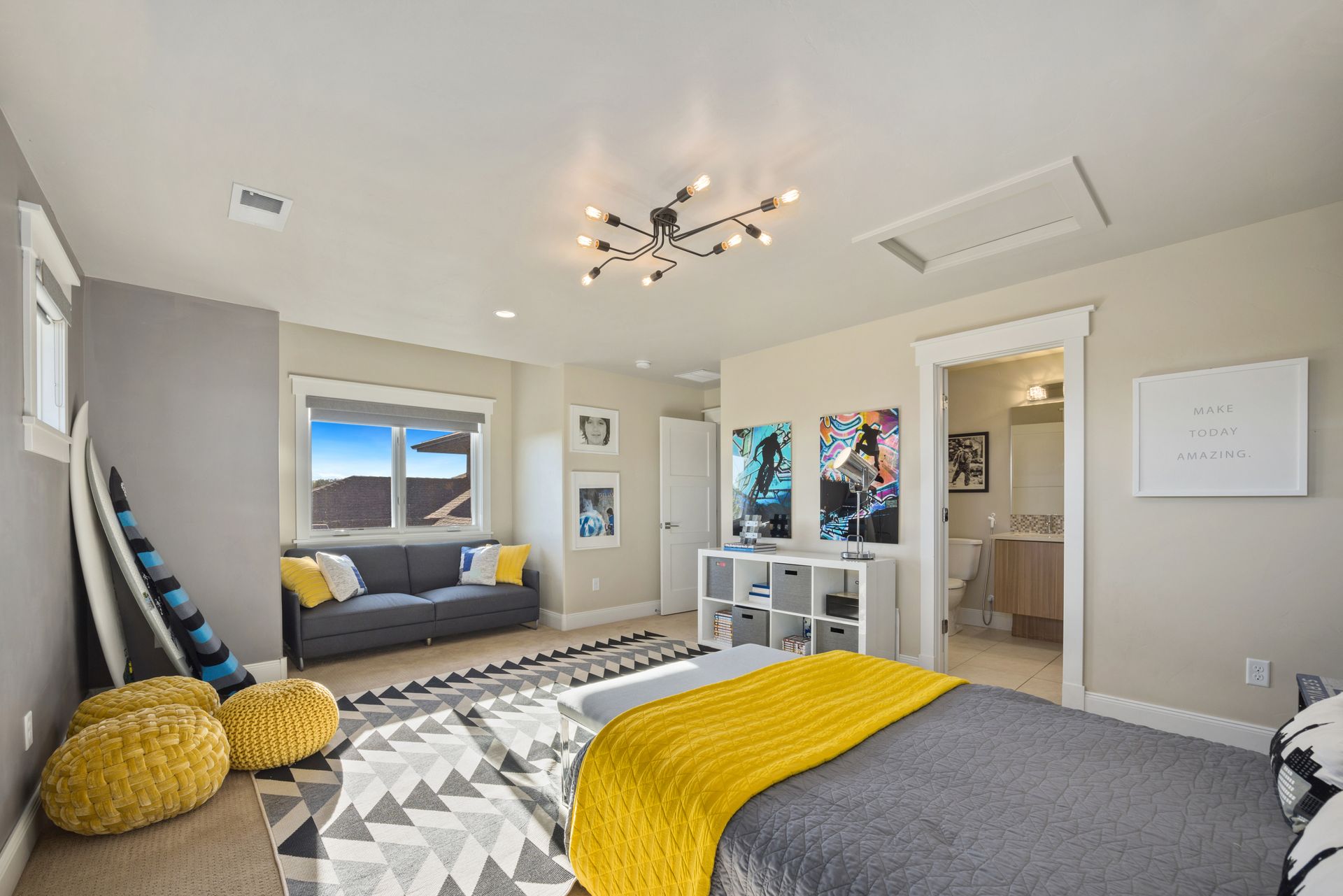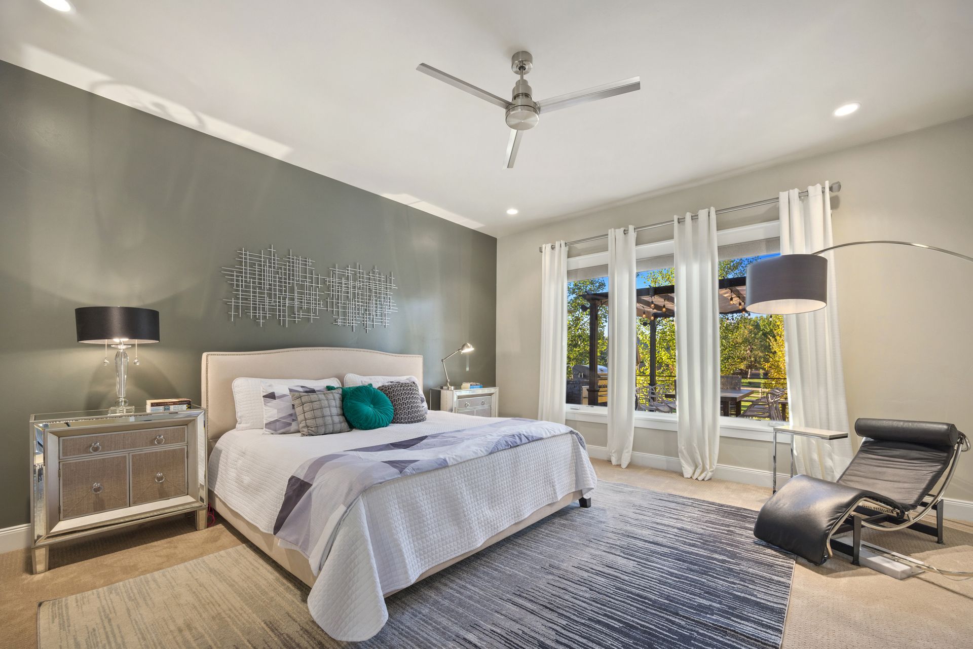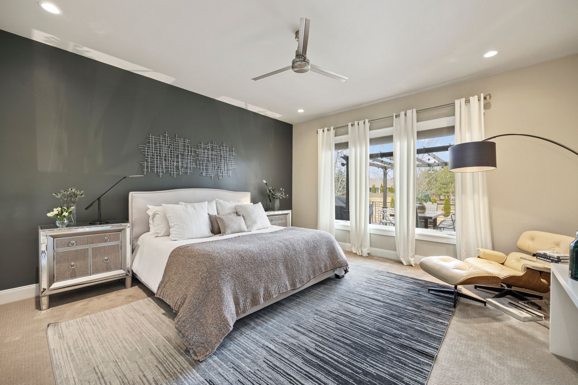 The luxurious primary suite features a spa-inspired en-suite bath and a custom walk-in closet with built-ins and a sitting area. Three additional en-suite bedrooms, each with its own bath and walk-in closet, ensure comfort and privacy for guests. A sophisticated executive office on the main level provides a refined workspace, while a loft area offers flexible living space.