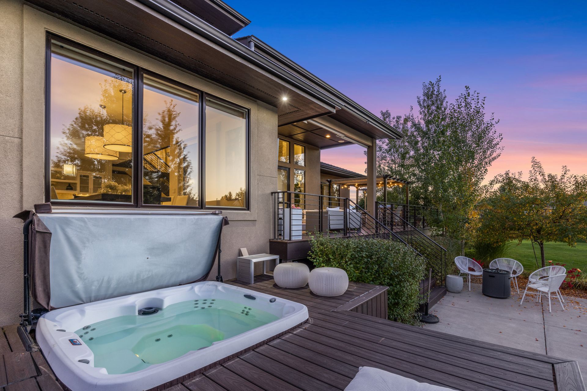 Exit outside into your private outdoor sanctuary, set on a full acre of pristine land. This rare estate-sized lot offers endless possibilities for outdoor living, featuring a dining area, cozy lounge, outdoor kitchen, and hot tub—all designed for seamless indoor-outdoor living. With space for a future pool, sport court, or other custom amenities, this property offers a true retreat.