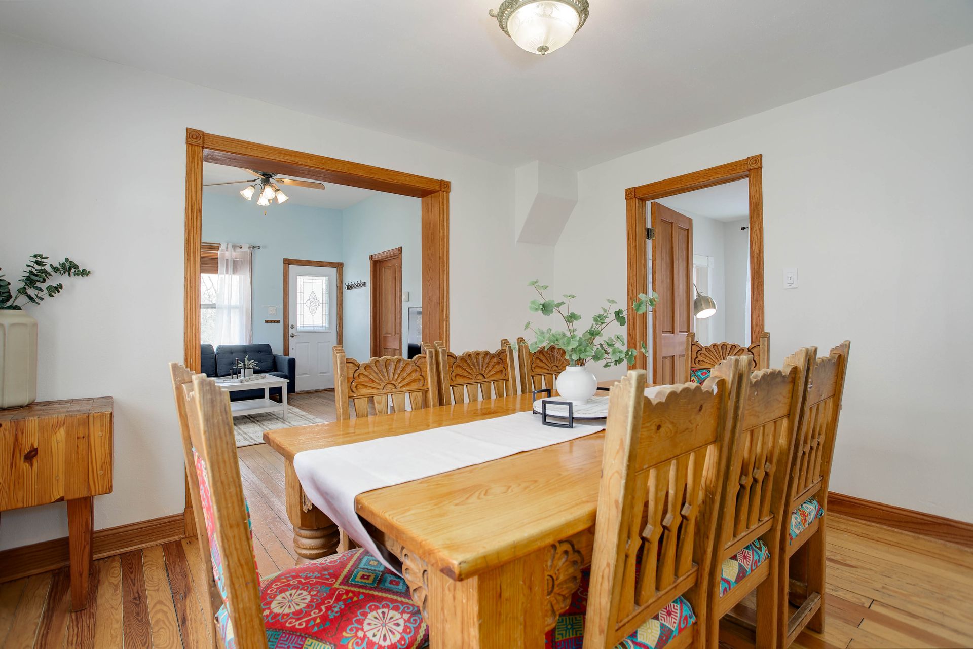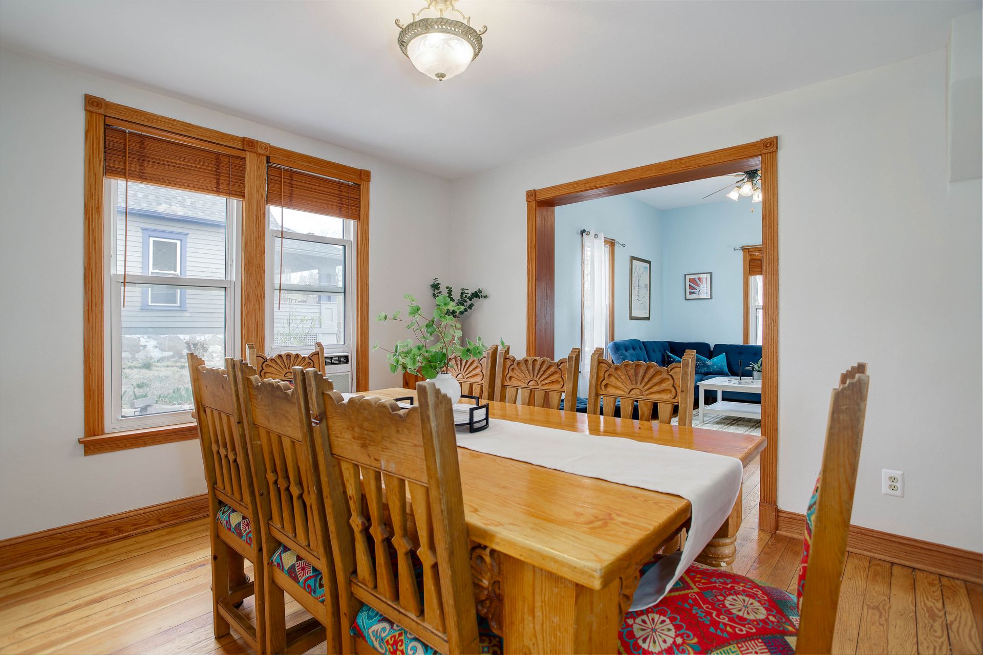 This three-bedroom downtown bungalow offers a unique blend of historic charm and modern convenience. Enjoy original hardwood floors, high ceilings and crown molding. The open floor plan boasts a large living area, dining space and kitchen with plenty of counter space. Relax in the primary bedroom with a cozy reading nook. The recently remodeled bathroom keeps the period feel with modern functionality. Key updates include: Recent roof (2013)~Updated furnace (2009)~Modern 150 AMP electrical panel and lighting (2018)~Updated kitchen flooring ~New deck, flagstone patio and concrete pad in the low-maintenance backyard. This walkable location (Walk Score 81, Bike Score 97) puts you near Shooks Park, Patty Jewett Golf Course, Colorado College and all the shops, restaurants and entertainment that downtown offers. Don't miss your chance to own a piece of history with this captivating home! Sellers are now offering a $2500.00 flooring allowance!