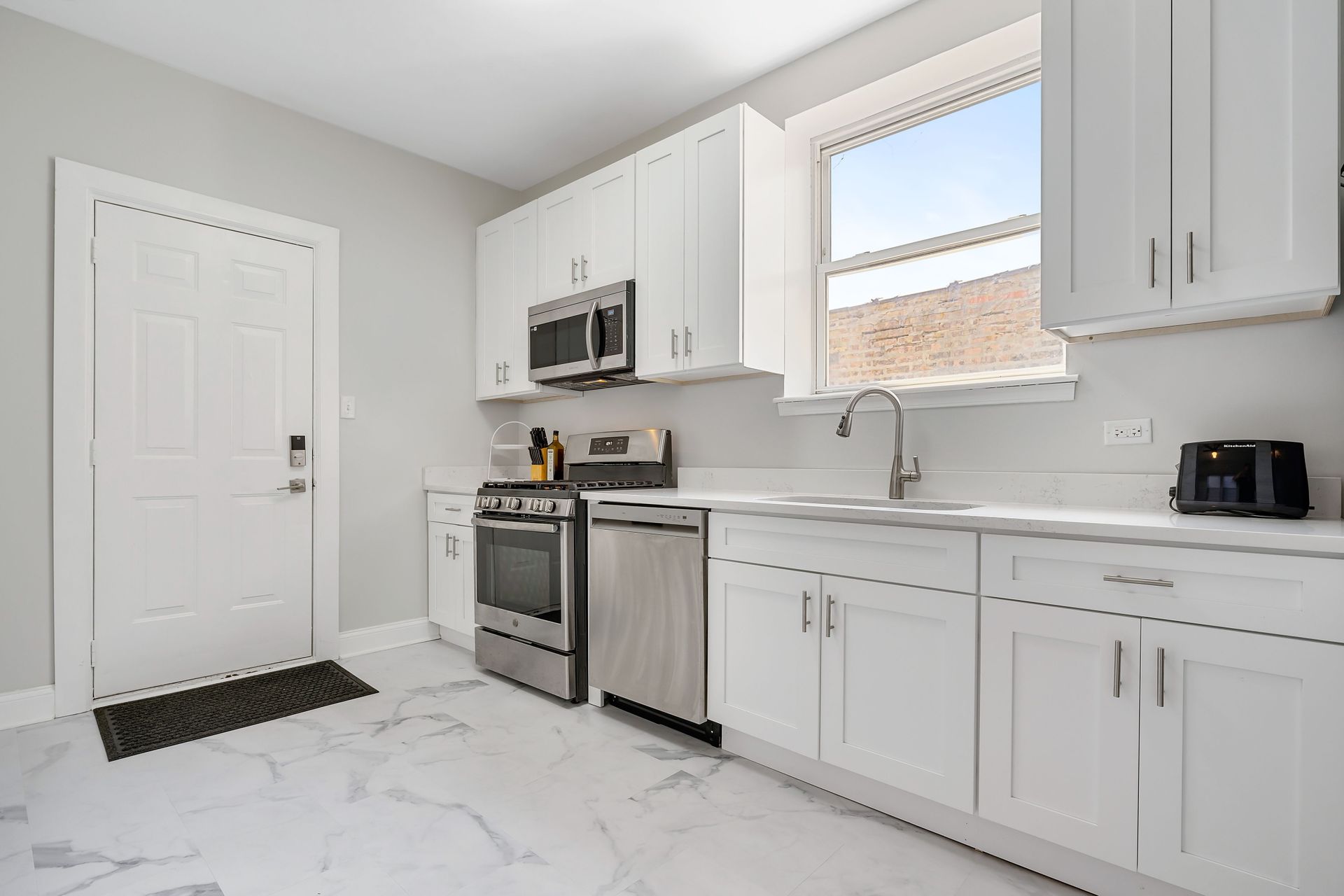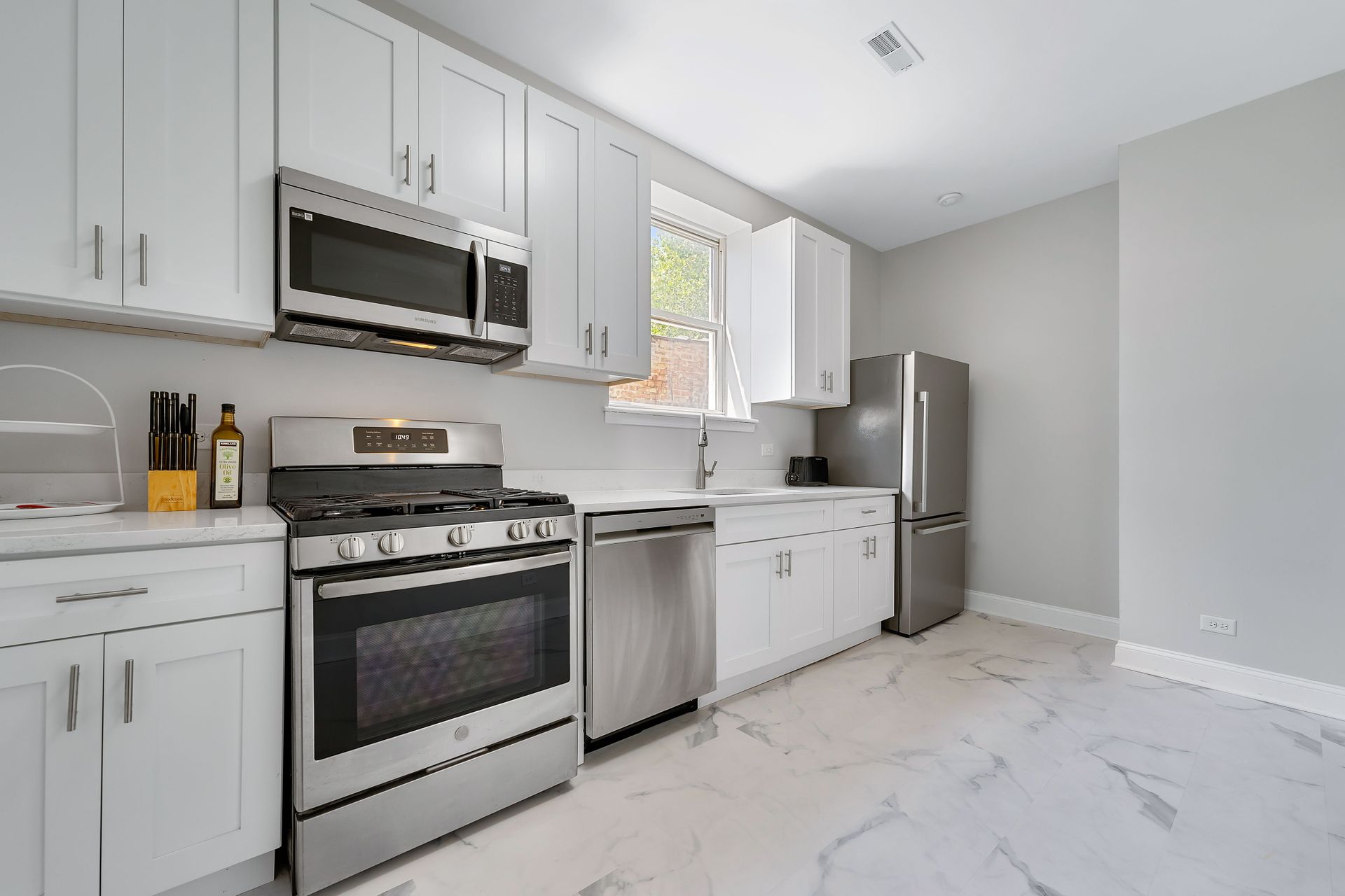 Discover this exceptional 4-unit property located in the up-and-coming Woodlawn neighborhood. This building boasts two fully rehabbed units and two spacious units in need of rehab, providing a fantastic opportunity for investors or homebuyers looking to personalize their space and make additional income. Each unit features ample living space, with the potential to convert three of the units into 3-bedroom apartments, maximizing rental income. The units offer generously sized bedrooms, a sunroom off the living room, and a back deck off the kitchen, perfect for entertaining guests. Additionally, the property includes a 2.5 car garage, enhancing its appeal to a homebuyer looking for a primary residence. Whether you're an investor seeking a high-potential rental property or a homeowner aiming to live in one unit and rent out the others, this building caters to diverse needs. There's even the potential to generate additional income through Airbnb, with potential earnings ranging from $2,000 to $3,000 per month. After completing the rehab of the remaining two units, the after-repair value (ARV) of this property is estimated to be $820,000.Situated just steps from the University of Chicago Law School, Jewel-Osco, the upcoming Obama Presidential Center, and the vibrant lakefront, this property is ideally positioned to enjoy.
