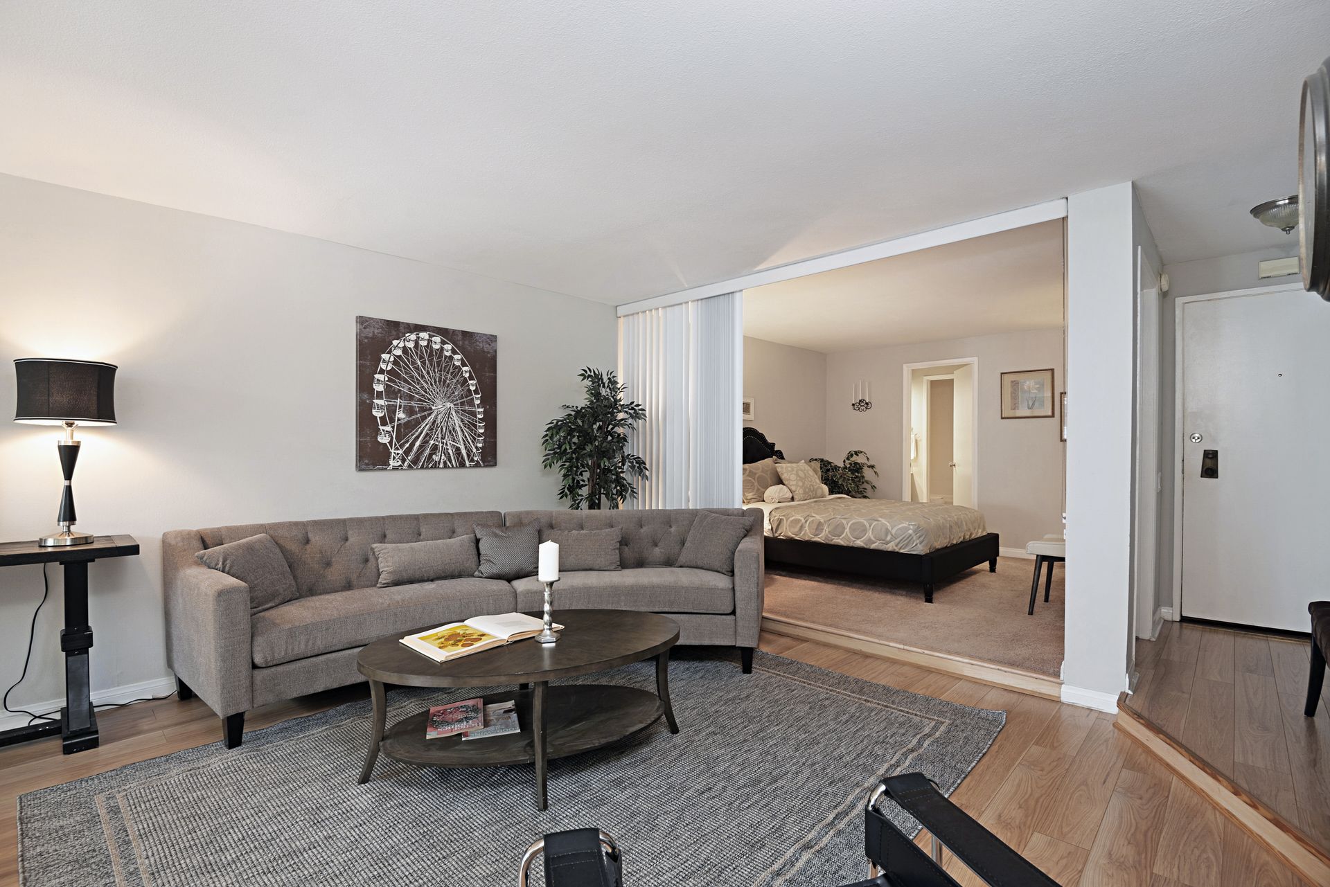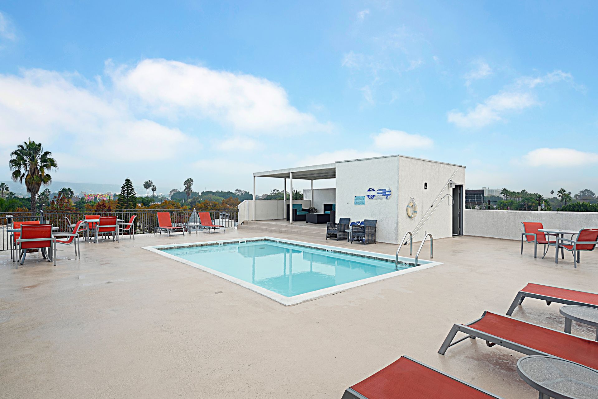 You must see this front-facing one bedroom, one bath condominium for yourself! This bright and airy unit offers an open floorplan with a step-down living room with a fireplace, a dining area and a private balcony. Find a very large walk-in closet within the bedroom. A laundry room can be found on each floor of the complex for your convenience. Enjoy incredible, expansive views from the rooftop pool and sundeck. There is one designated parking space for you within the gated garage. Just moments away from LACMA, the Grove, Farmer's Market, Cedars Sinai and public transportation, including the Purple Line. Centrally located between downtown and Beverly Hills/the Westside.
