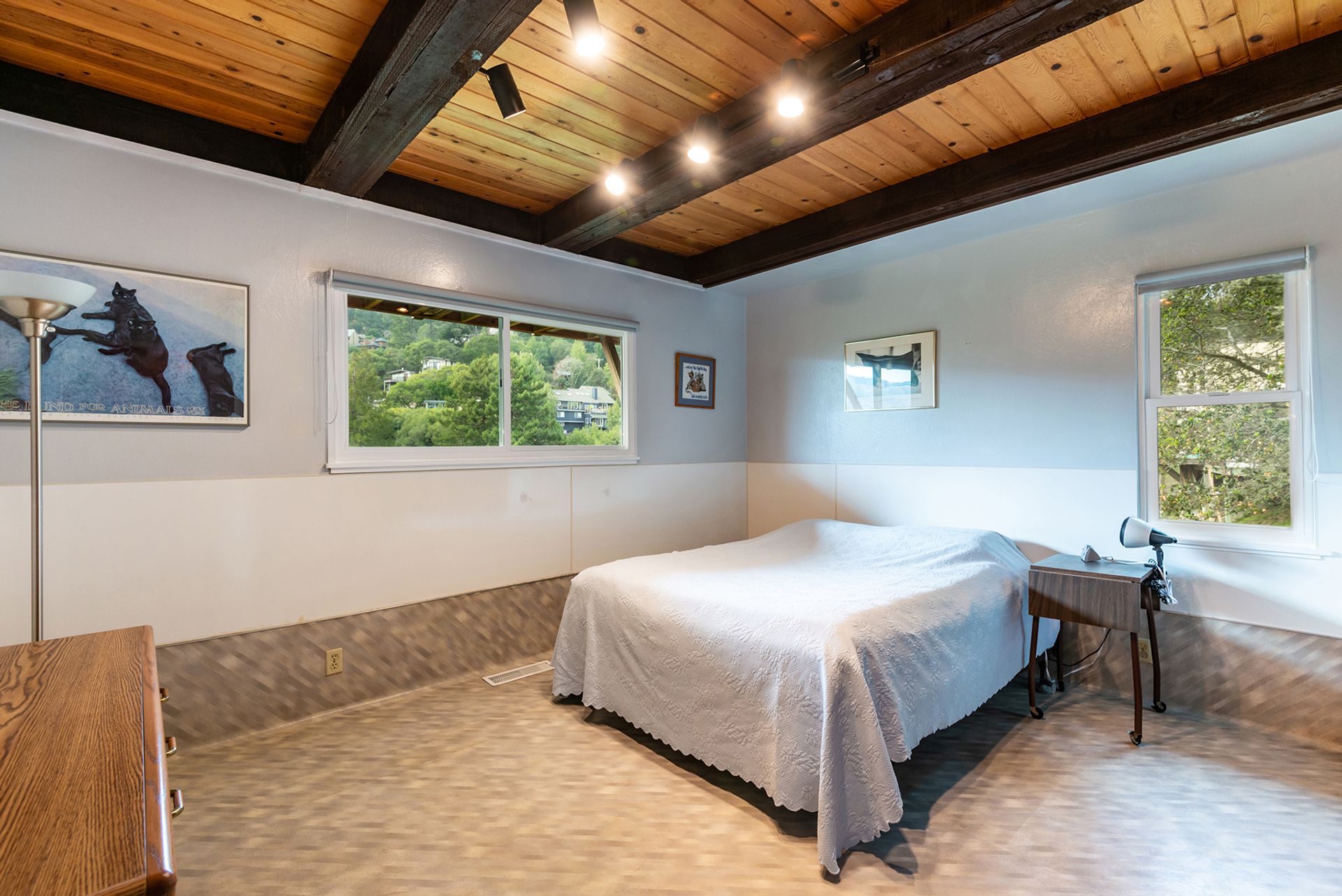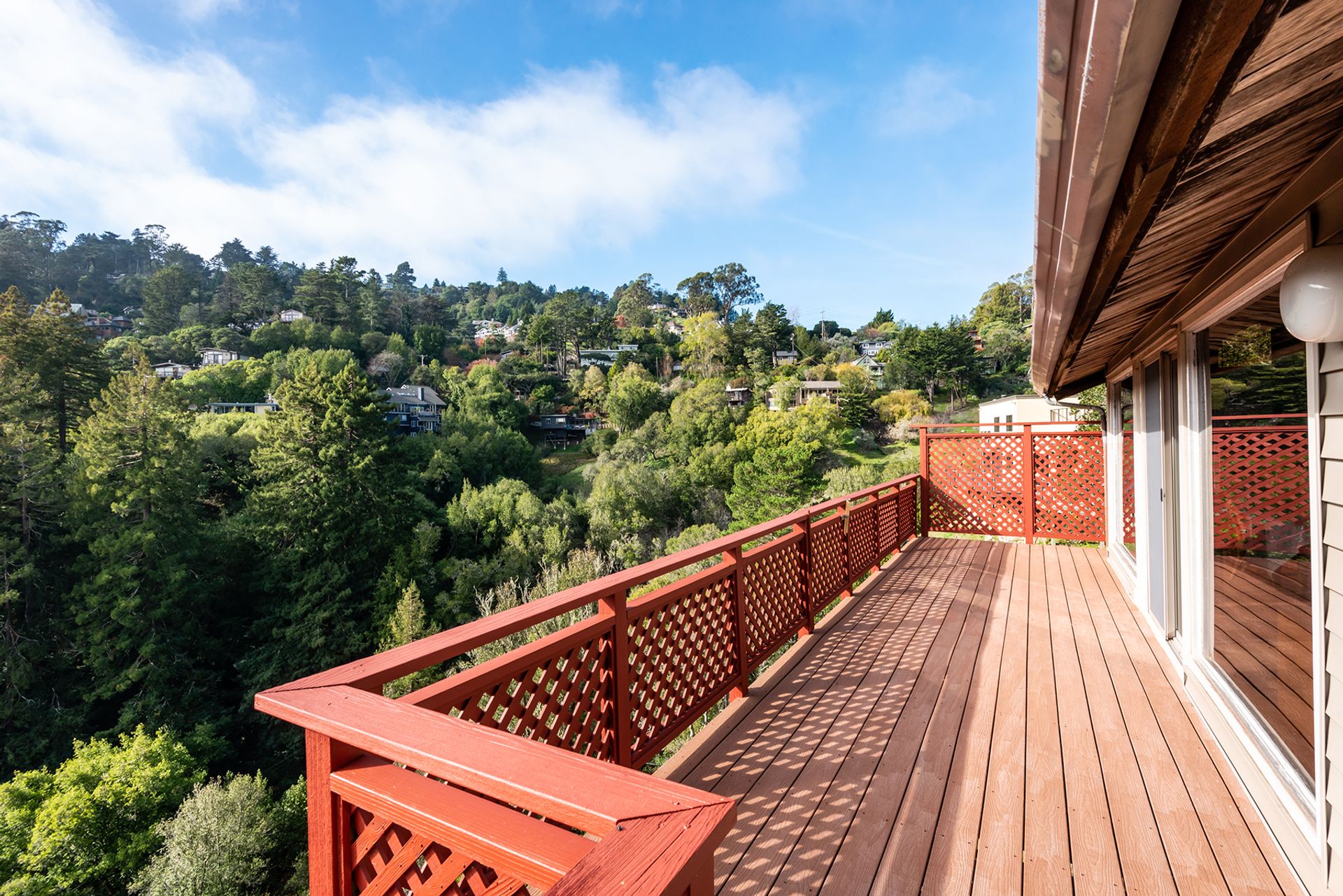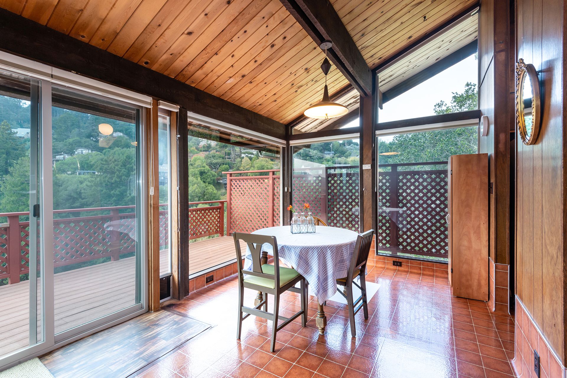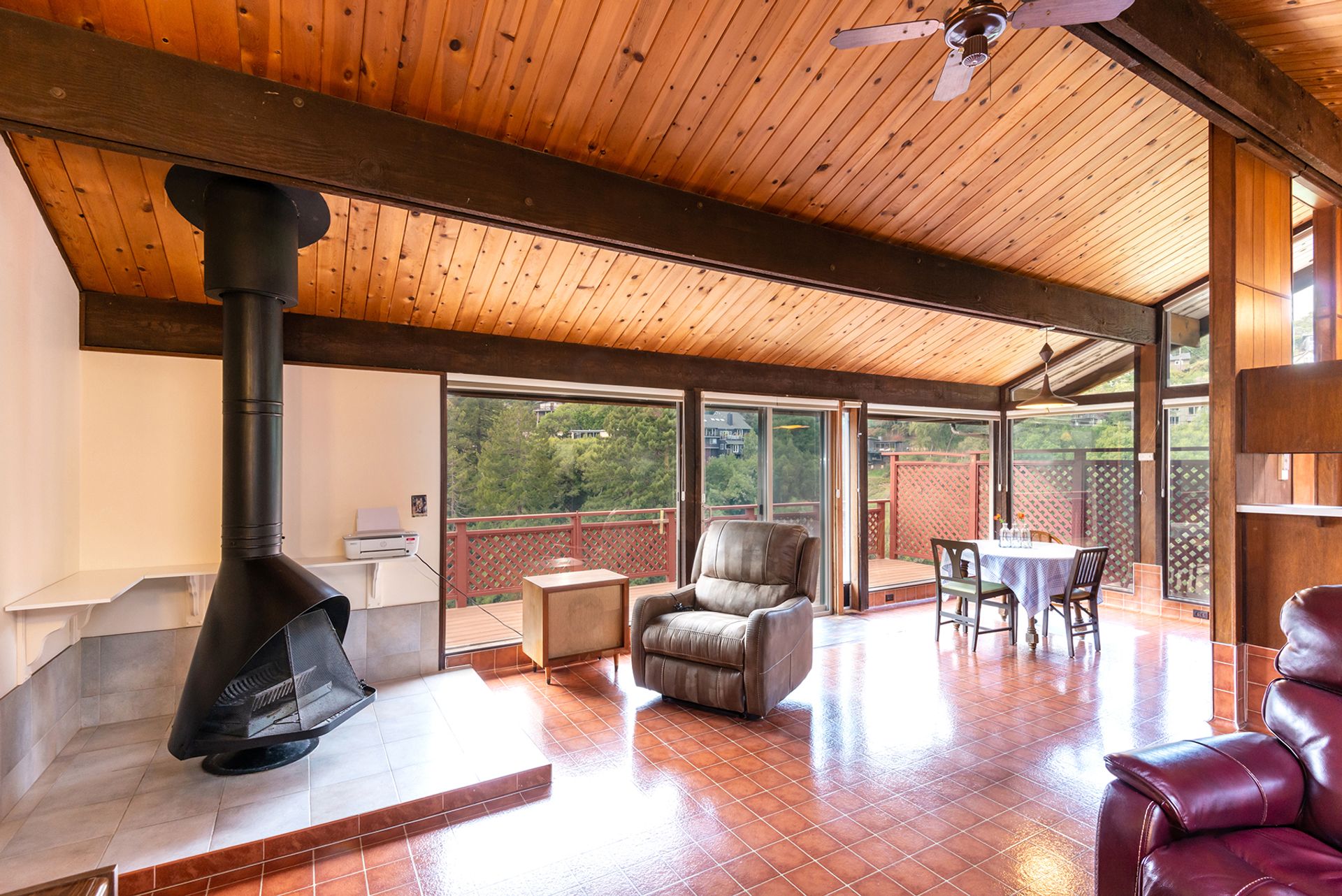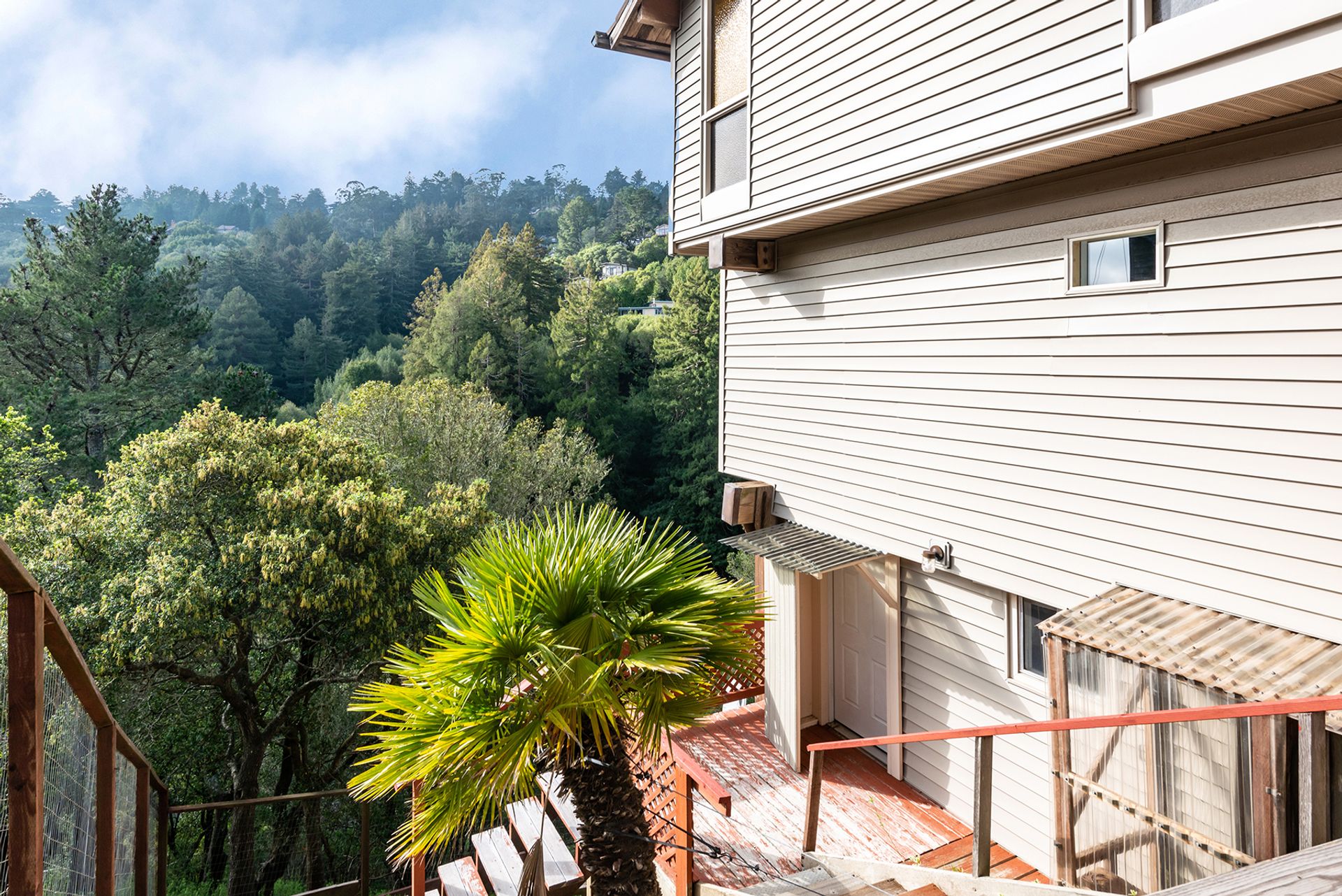 This 3b/2.5ba home, that also features an unwarranted living space w/ full bathroom below(own separate entrance) offers a tranquil retreat w/expansive southwestern views! Open floorplan with mid century feel - vaulted wood beam ceilings, skylights & floor to ceiling windows, bring in natural light and beauty! Recent upgrades include, newer windows on lower level, furnace and A/C! Deck with expansive peaceful wooded views. There are tons of extra spaces to discover, including a home office with it's own separate entrance and also a large storage room. Awesome location near Mt. Tam, Muir Woods Hiking trails. A quick 20 mins from SF, 25 min to Stinson Beach and 5 mins to downtown Mill Valley!